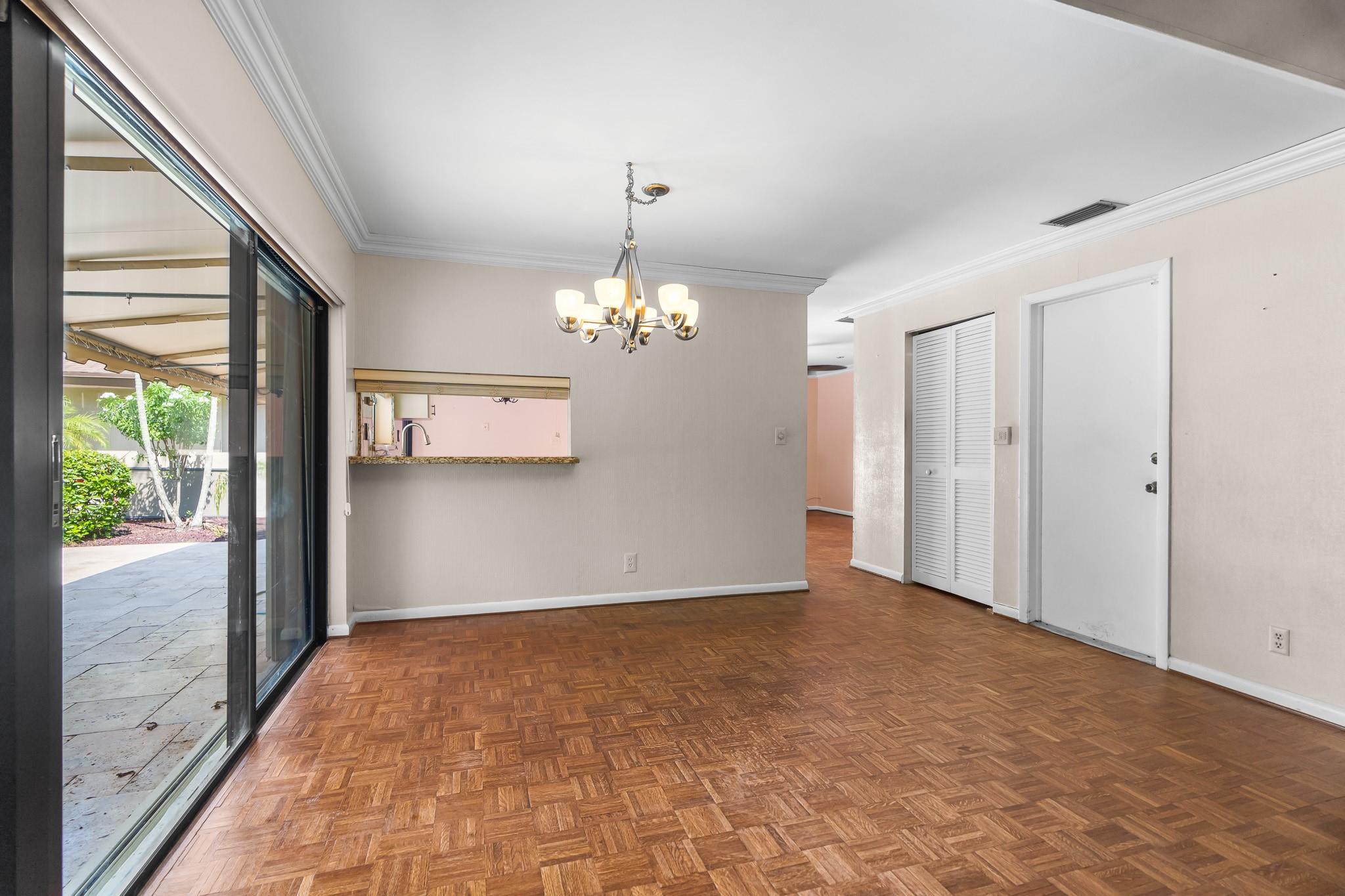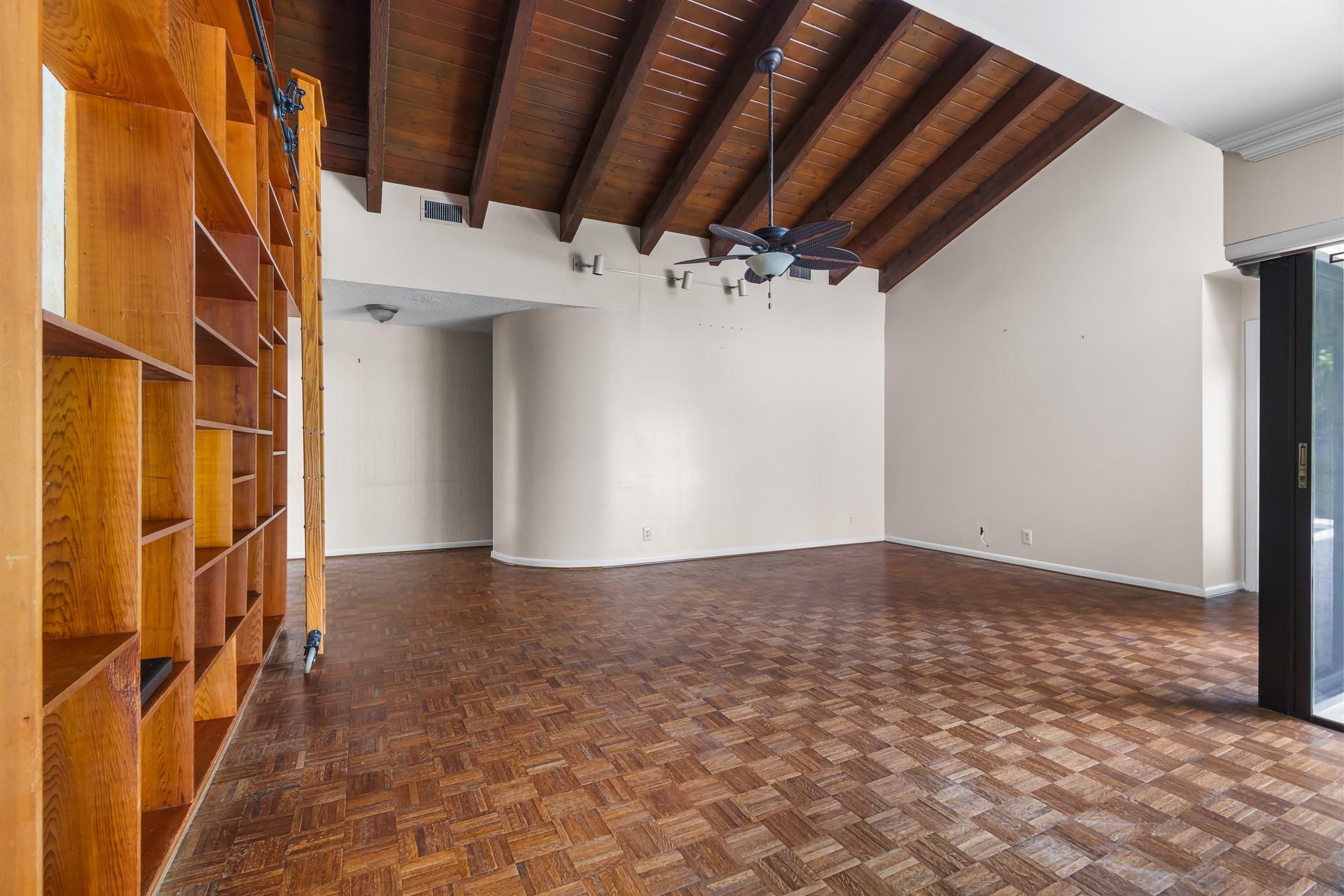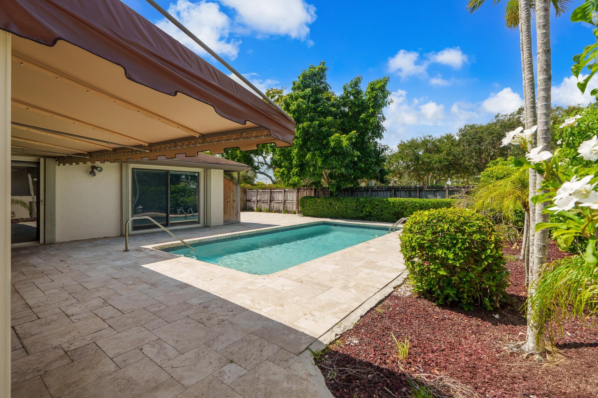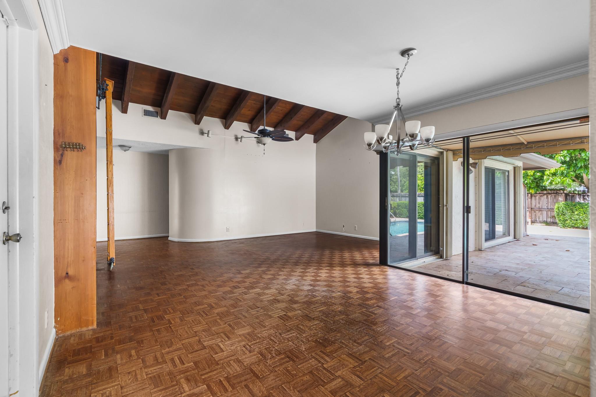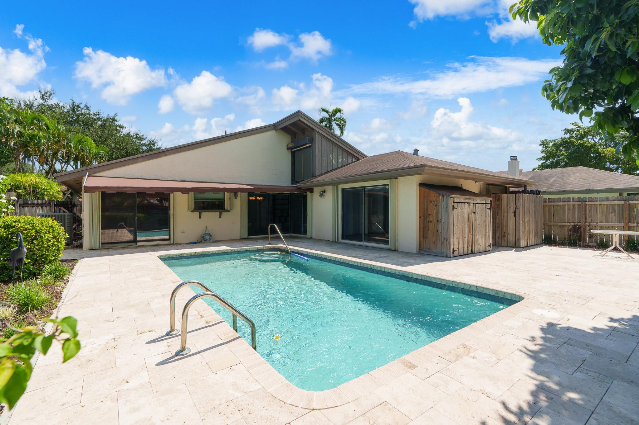 Rarely available 3 bed/2.5 bath home located in sought after Woods of Emerald Hills. This home features an oversized 2 car garage w/ potential to convert part of it into an additional bedroom while maintaining storage space. The fenced backyard offers privacy w/ a pool on an oversized lot, complete with storage shed. Tons of natural light from windows & 5 sets of sliding doors all protected by accordion storm shutters. Kitchen features white cabinets & granite countertops. The living room showcases custom built-in shelves w/ a sliding ladder & vaulted exposed wood beam ceilings. Ample storage including linens, pantry, numerous closets w/ built-ins & a primary suite w/ reach-in & walk-in closets. A/C (2021). Conveniently located near houses of worship, restaurants, highways and shopping.