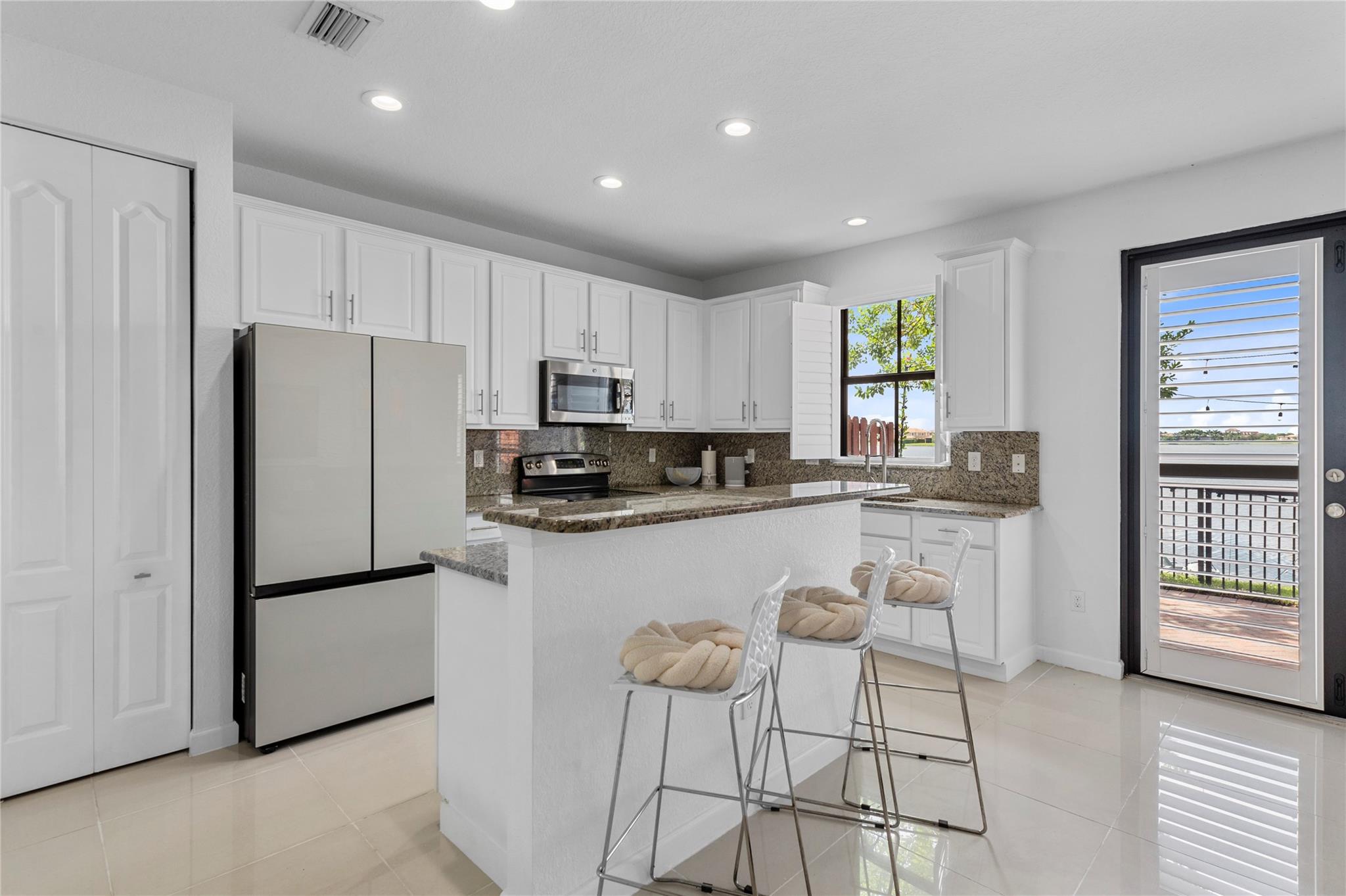 Longest and widest lake views! Beautiful four bedroom, 3.5 bath townhouse in Miralago’s Town Parc, Parkland. This home stuns with a bright white, light and airy feel that is complimented by the longest lake view in Town Parc. Fully fenced in back yard. Plantation shutters on all windows, high impact. Dining room wall has been opened to create full open concept living. New kitchen appliances and under the stairs space recently added that offers tons of additional storage space or a place to hang out! Bedrooms and washer/dryer upstairs. Tile and waterproof wood-look vinyl floors, no carpet! Additional overhead storage in the garage. Access to both Cascada and Miralago amenities that include state of the art gym facilities, indoor basketball court and resort like pools.