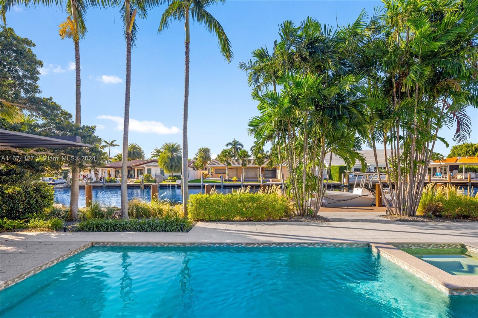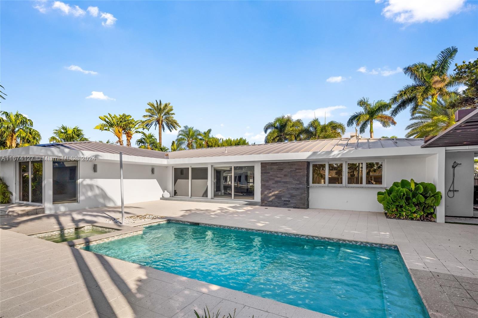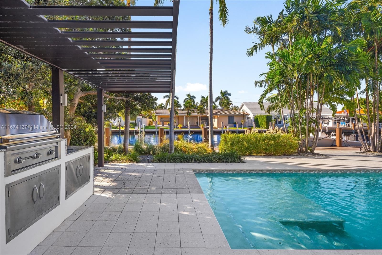 Welcome to a beautifully crafted modern home that features 3 bedrooms and a versatile den/office, offering an impressive 2,580 sqft. of living space. Located in the esteemed Landings community, this residence is just moments away from shopping, vibrant nightlife, and a variety of dining experiences. With 90 feet of stunning waterfront, this exceptional property provides direct access to the ocean without any fixed bridges. The kitchen is equipped with premium Jenn Air appliances, while energy-efficient LED lighting throughout enhances the home’s contemporary and inviting feel. Step outside to your personal retreat, complete with a heated saltwater pool and spa, perfect for relaxation and entertaining. Embrace the lively coastal lifestyle and make this sanctuary of modern elegance your own.