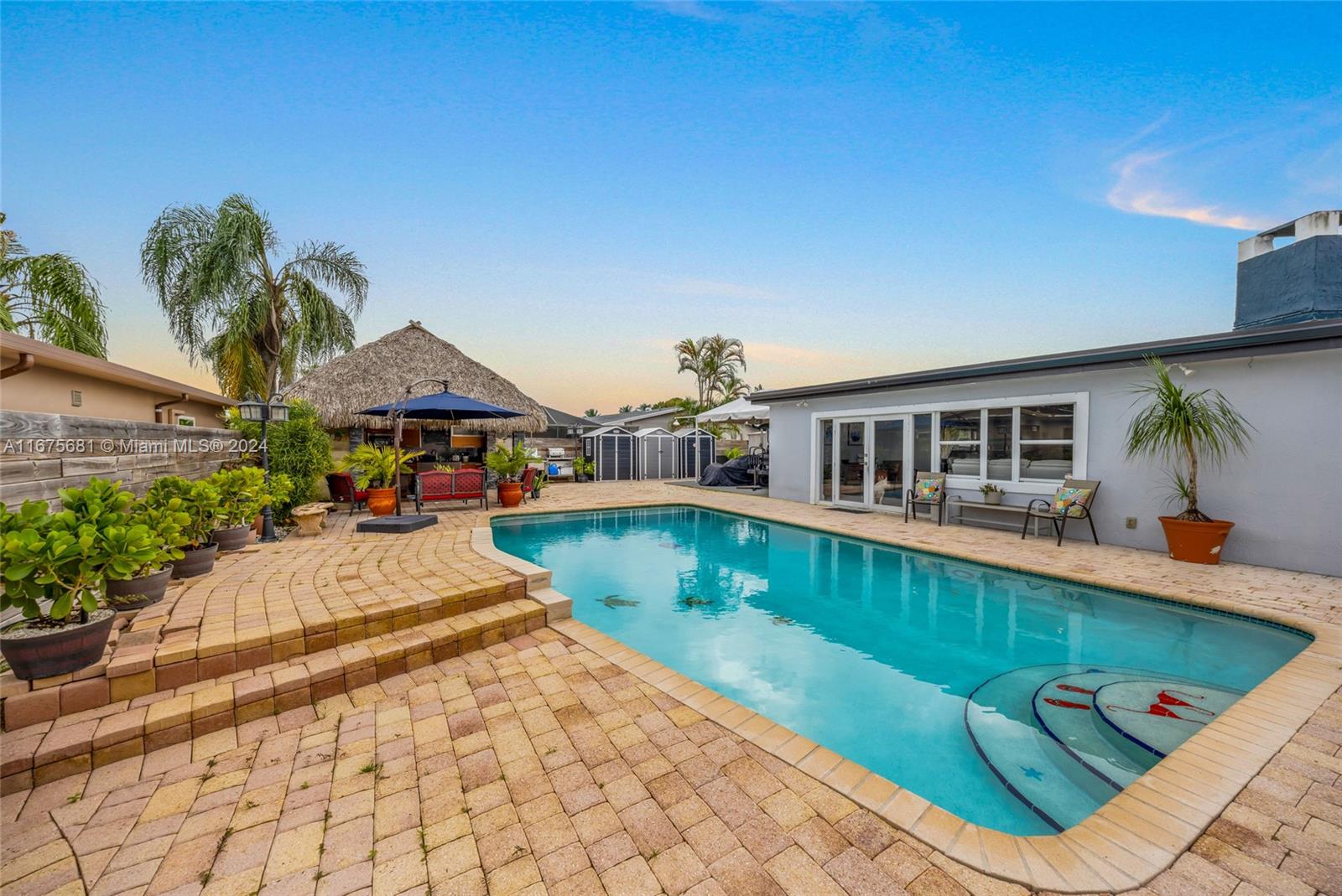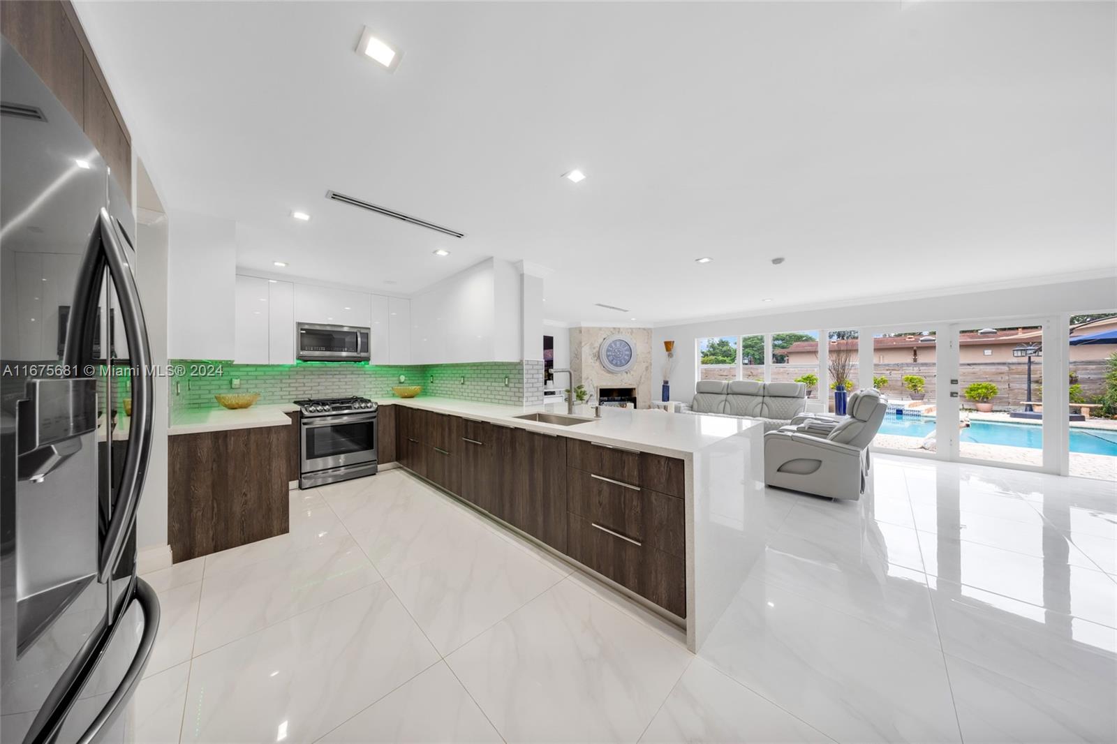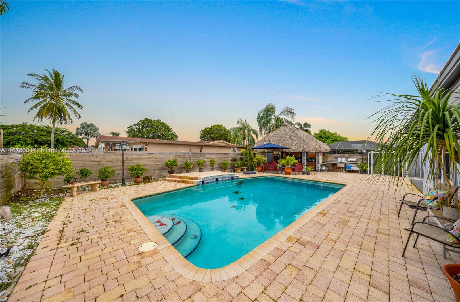 Welcome to your dream home! This stunning fully renovated single-family house features 3 bedrooms and 2 bathrooms. Enjoy peace of mind with a recently replaced roof and a brand new AC condenser. Step outside to your own private oasis, complete with a stunning pool with lighting and an outdoor kitchen-ideal for entertaining friends and family. With fence all around for complete privacy. Inside, you'll be greeted by gorgeous large tile floors that enhance the homes elegant design. A kitchen that has never been used awaits you. Fully functional sprinkler system. Cozy up by the real fireplace in a friendly, quiet neighborhood. With impact doors and windows, plus ample outdoor space, this home is perfect for families. Close to schools and shopping. Don't miss the opportunity to make it yours!