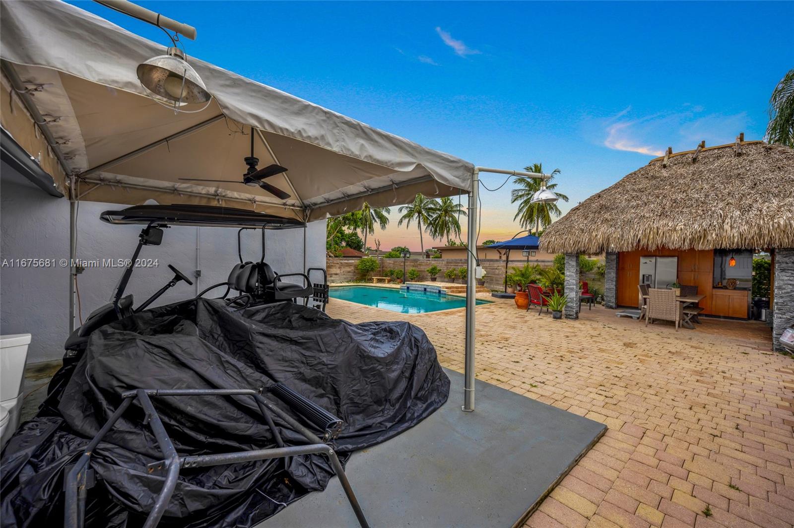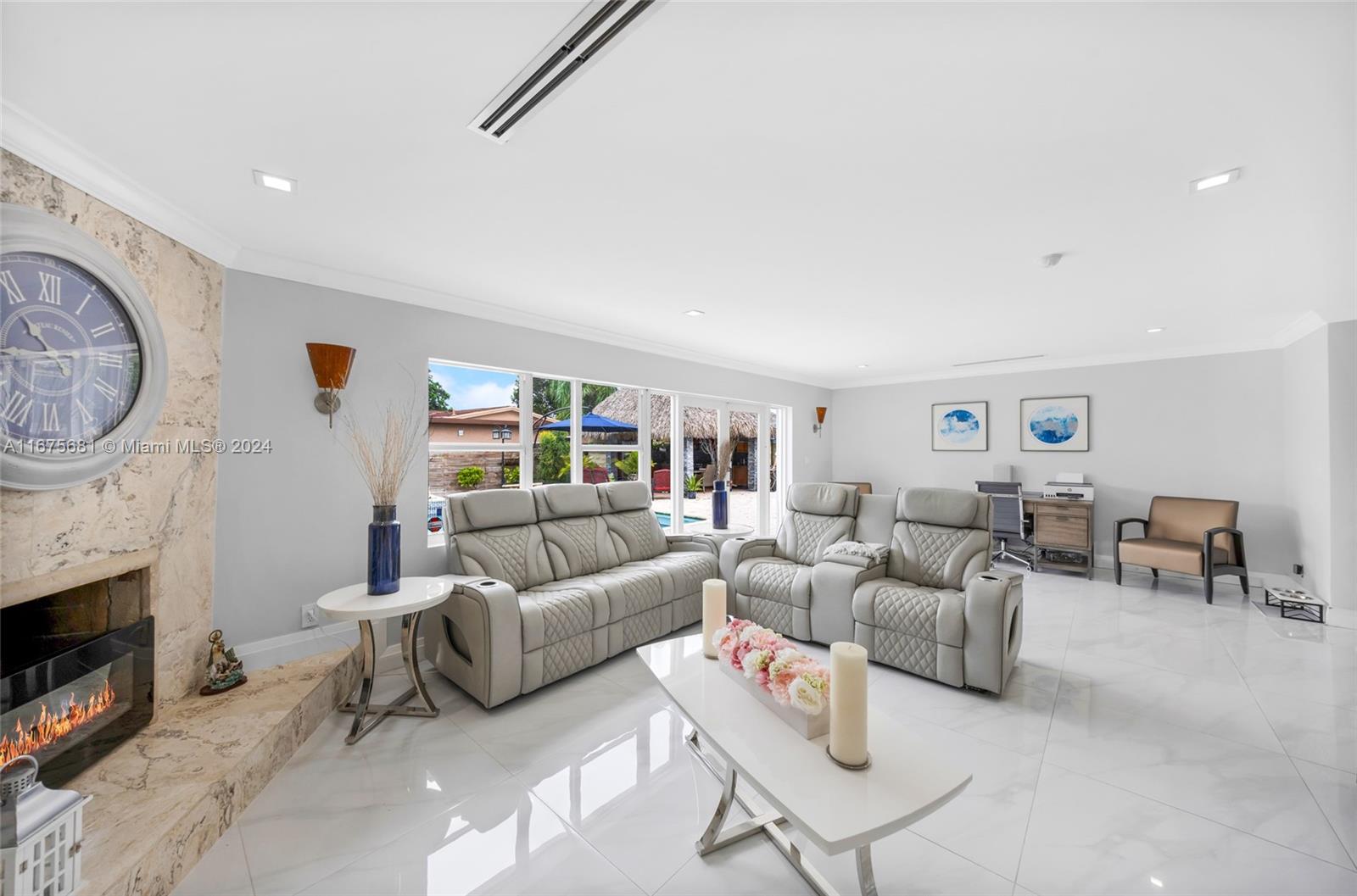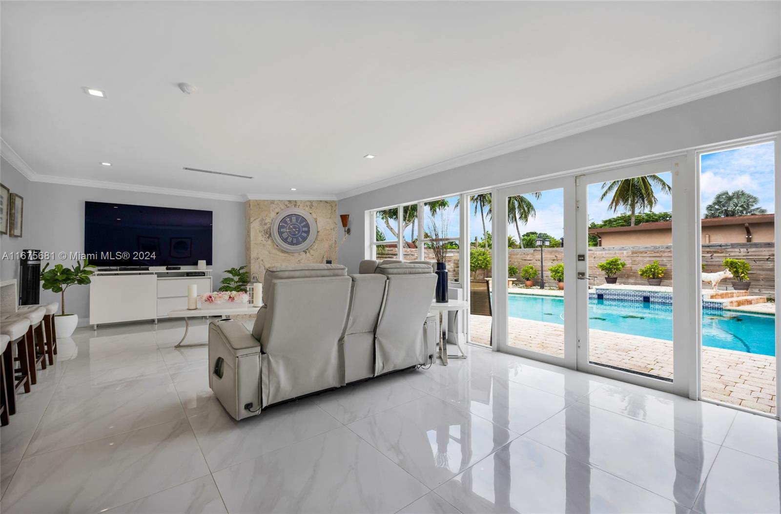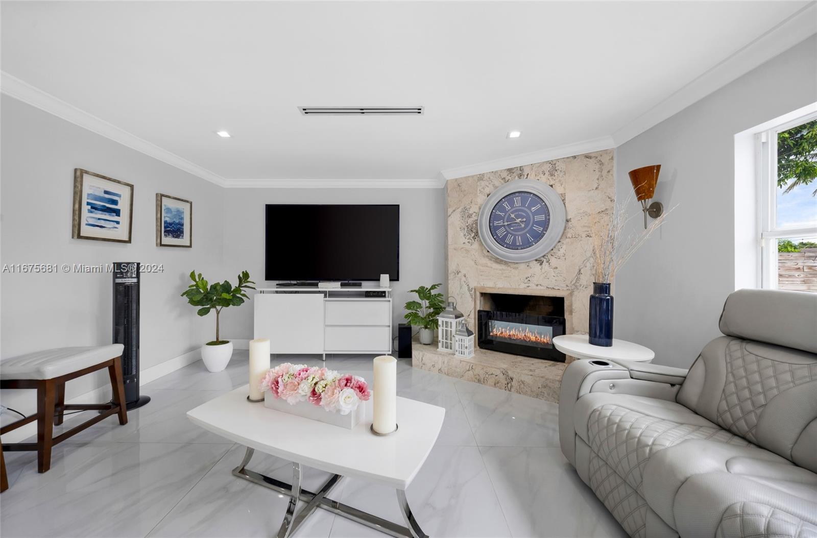 Welcome to your dream home! This stunning fully renovated single-family house features 3 bedrooms and 2 bathrooms. Enjoy peace of mind with a recently replaced roof and a brand new AC condenser. Step outside to your own private oasis, complete with a stunning pool with lighting and an outdoor kitchen-ideal for entertaining friends and family. With fence all around for complete privacy. Inside, you'll be greeted by gorgeous large tile floors that enhance the homes elegant design. A kitchen that has never been used awaits you. Fully functional sprinkler system. Cozy up by the real fireplace in a friendly, quiet neighborhood. With impact doors and windows, plus ample outdoor space, this home is perfect for families. Close to schools and shopping. Don't miss the opportunity to make it yours!