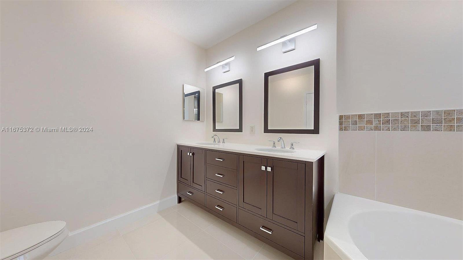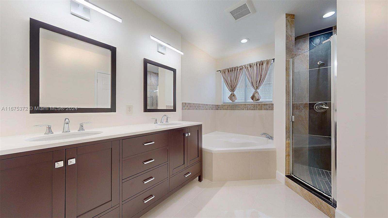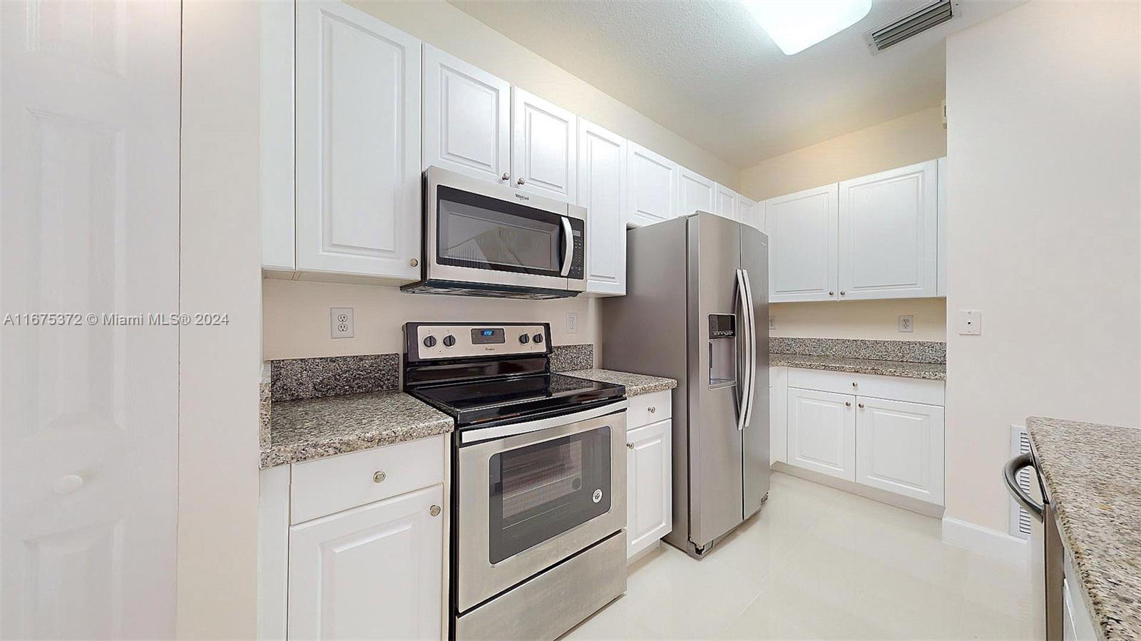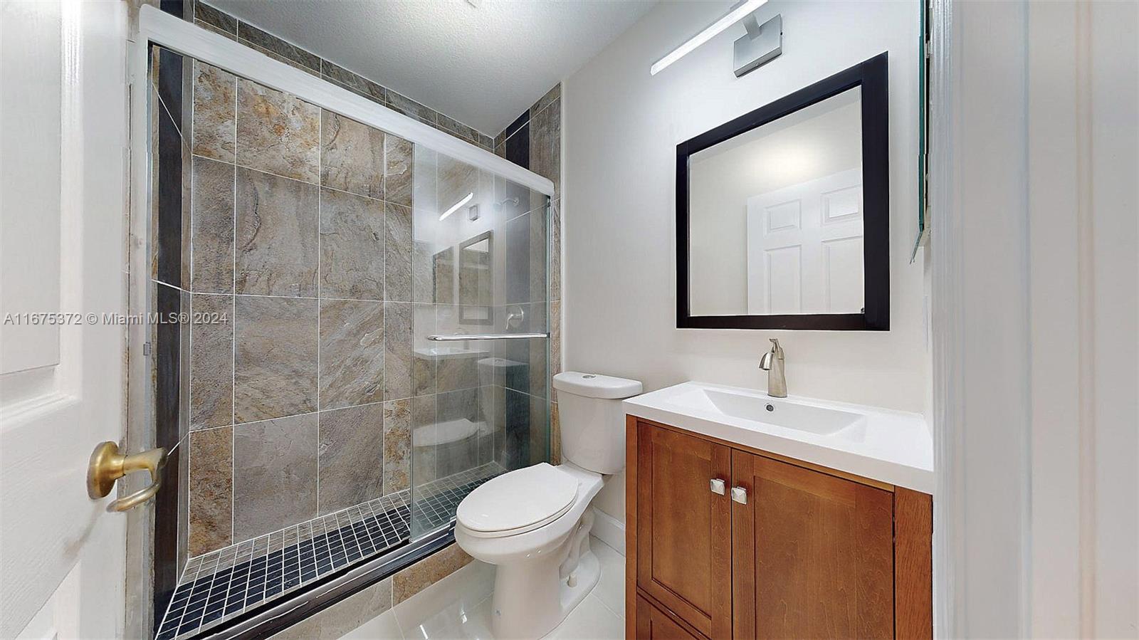 Welcome to the gated community of Sonoma at Doral! Beautifully remodeled corner townhome features 3 bed,2.5 baths, washer & dryer, accordion shutters, and 1-car garage. Living room features a beautiful stone wall, adding a touch of elegance to the living area. Family room and open kitchen are filled with abundant natural light, the kitchen is equipped with stainless steel appliances, new refrigerator & granite countertops. Recently installed ceramic flooring downstairs. Upstairs, you will find elegant Brazilian Cherry flooring, a spacious primary bedroom with a tray ceiling and a walk-in closet, and two additional bedrooms with ample closet space. The upstairs bathrooms have been recently remodeled to include stunning walk-in showers, with the primary bathroom featuring a dual sink vanity.