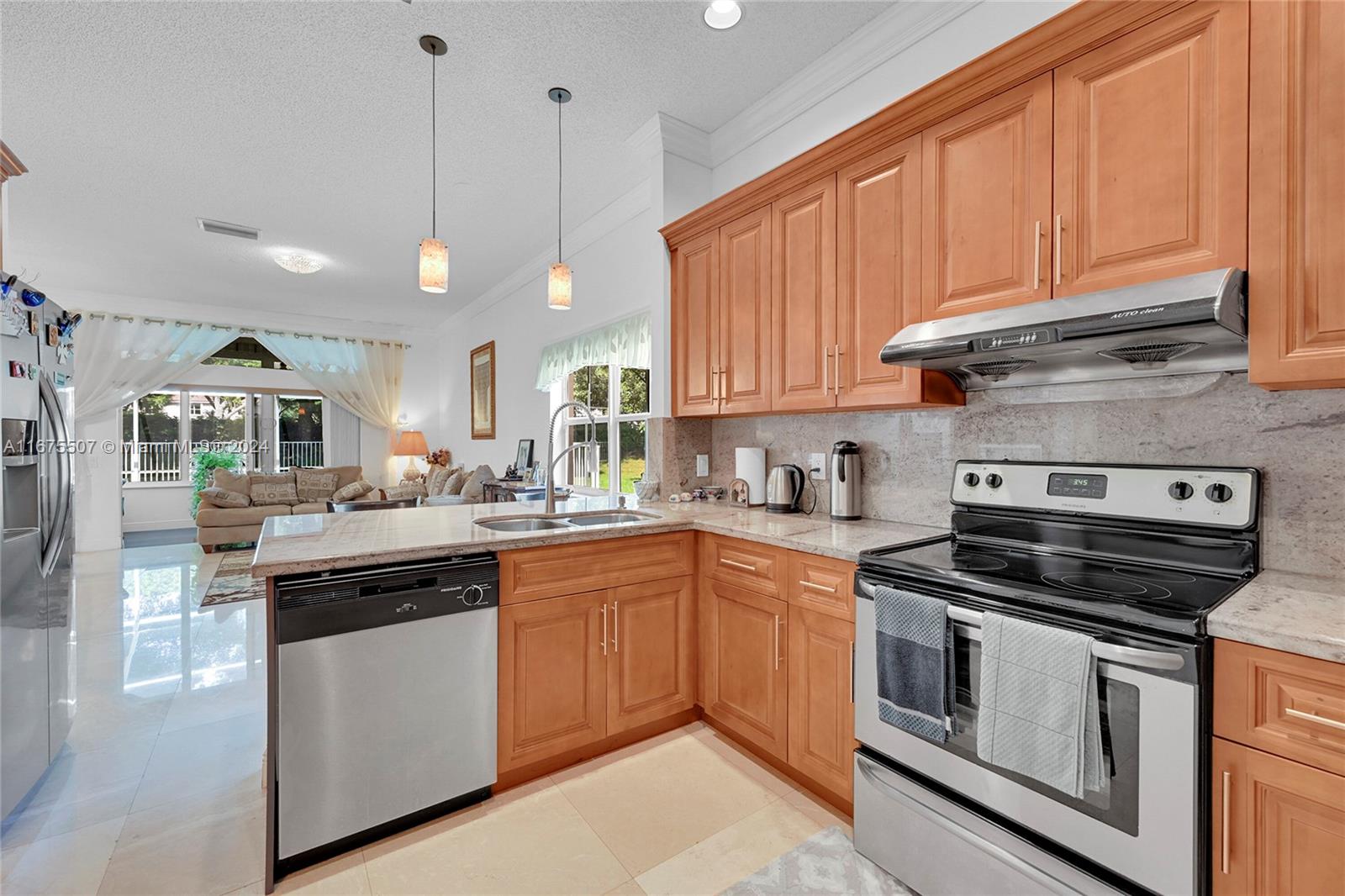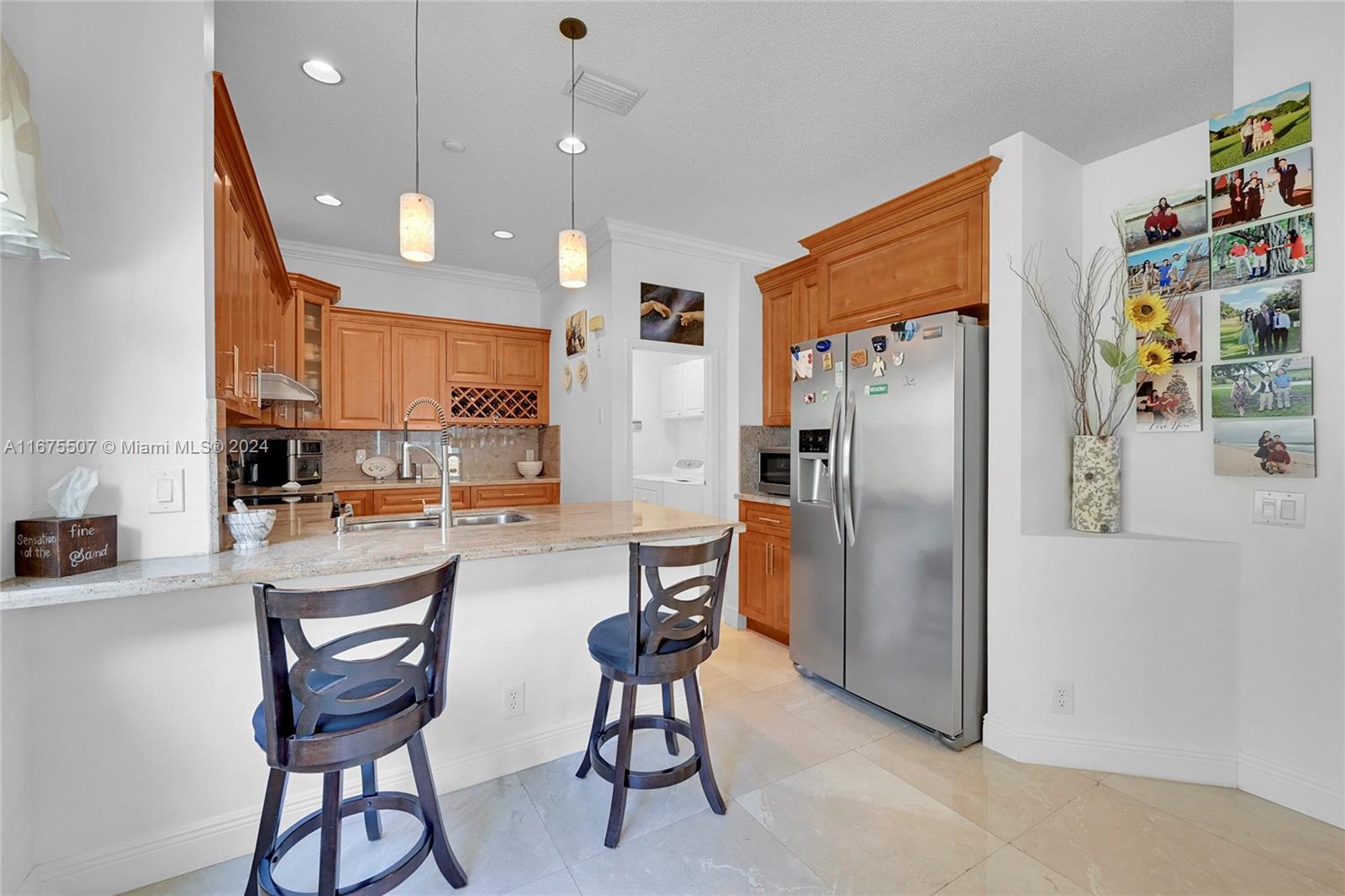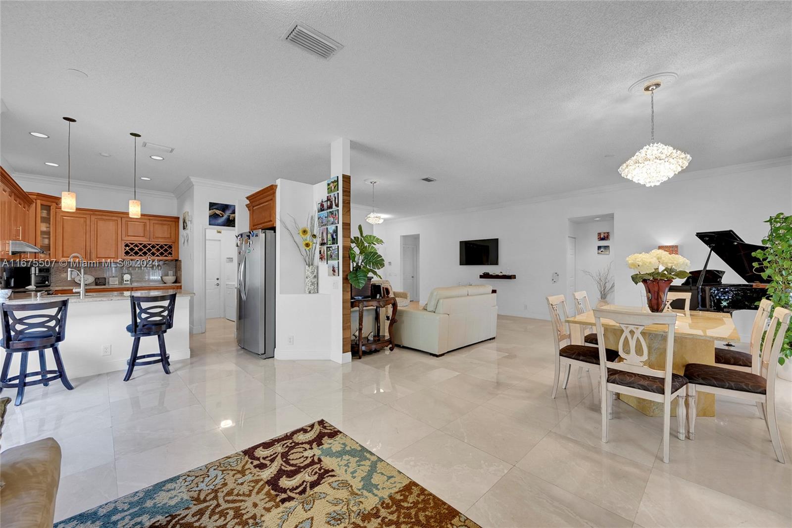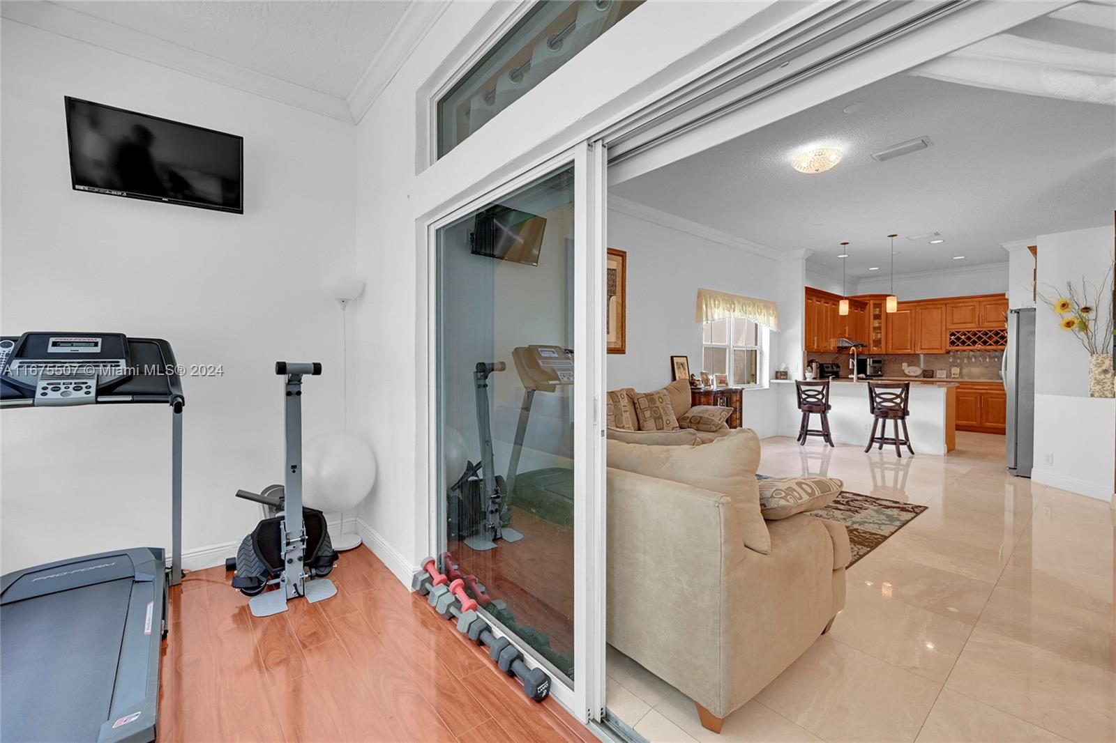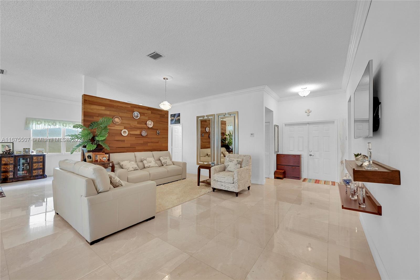 Beautifully renovated(2013) immaculate home in the prestigious gated community of The Ridges. Enjoy this spacious 3/2.5 one-story home on private berm with lush landscaping and a bonus Florida Room for office(with impact window). Rarely available modified "Arlington" with open floor plan. High impact front door. Marble floor throughout all living areas, and granite countertops. Relax in the 30x10 tiled & screened patio with room for pool. The Ridges is rated the safest area in Weston and best schools. It has a renovated clubhouse with playground, pool, pickleball, basketball, tennis court, and valley ball. Low HOA fees. A+ schools. Near Sawgrass Mills Mall, Cleveland Clinic, and more. DON'T MISS OUT!! Asking price includes a brand new tiled roof to be installed.