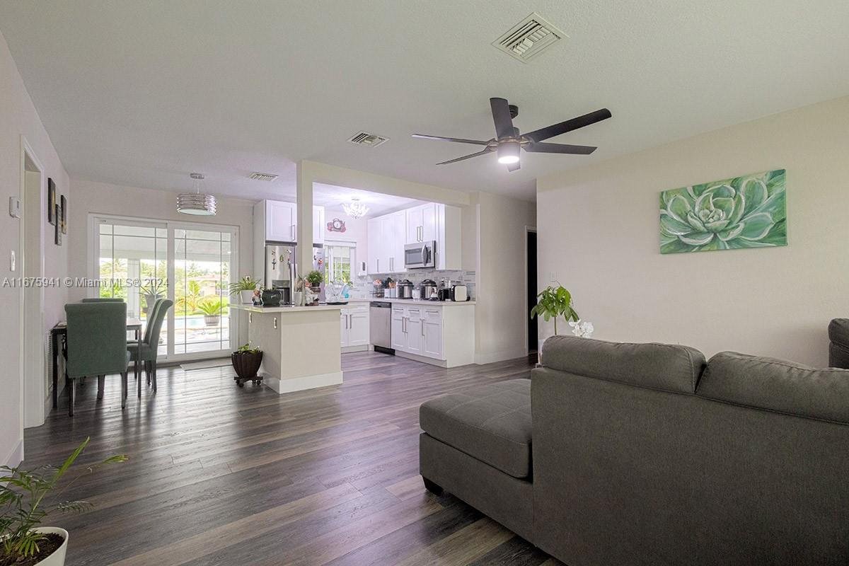 Beautifully remodeled canal-front home in Miramar, featuring 3 bedrooms, 2 bathrooms, a large pool, and a spacious backyard. Upgrades include roof, air conditioner, waterproof vinyl flooring, and kitchen cabinets with quartz countertops all from 2019. Don’t miss out on this gem!