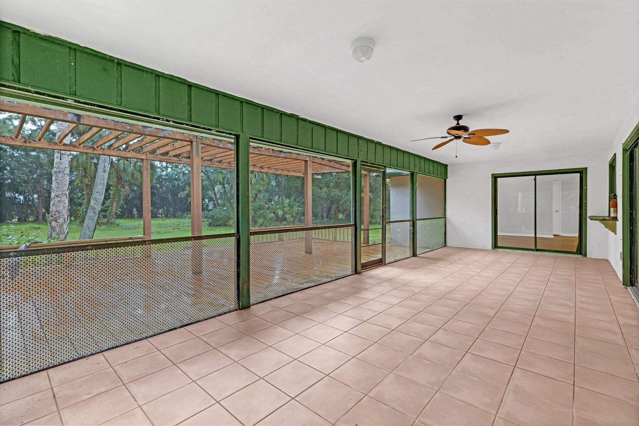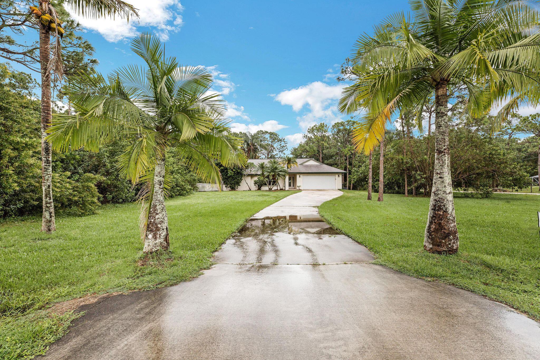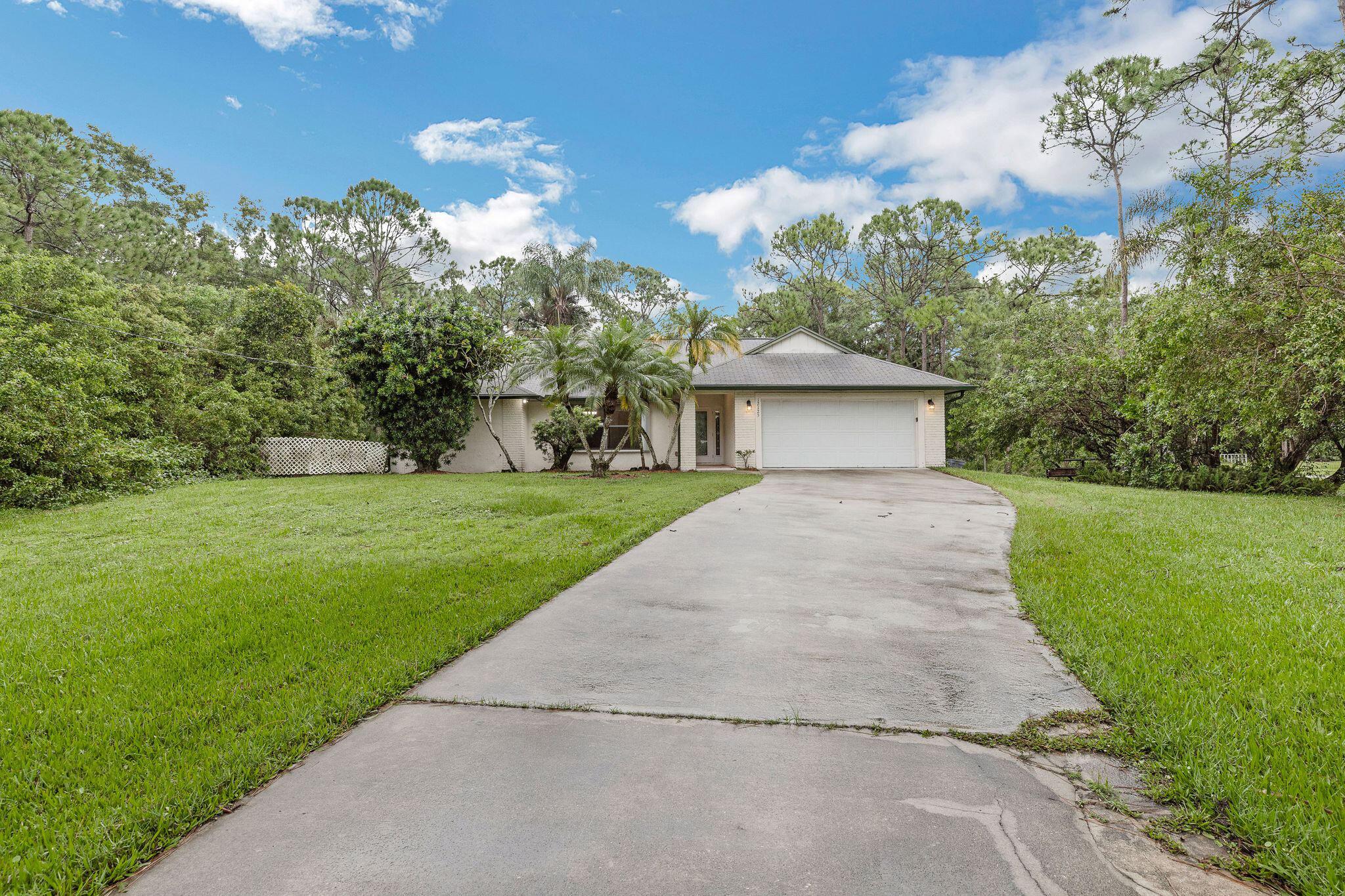 Welcome to your dream home in the heart of Jupiter Farms! New Roof! This charming 3-bedroom, 2-bathroom residence boasts 1,675 sq. ft. of living space and sits on a sprawling 49,497 sq. ft. lot. Built in 1989, the split floor plan features a spacious primary bedroom with a walk-in closet, en-suite bathroom with dual sinks, separate bathtub, and shower. Enjoy cozy evenings by the wood-burning fireplace or relax in the screened-in patio. With paved roads for easy access, this home offers both comfort and convenience on over an acre of lush land. Don't miss out on this fantastic opportunity! Brand New Roof installed May 2025.