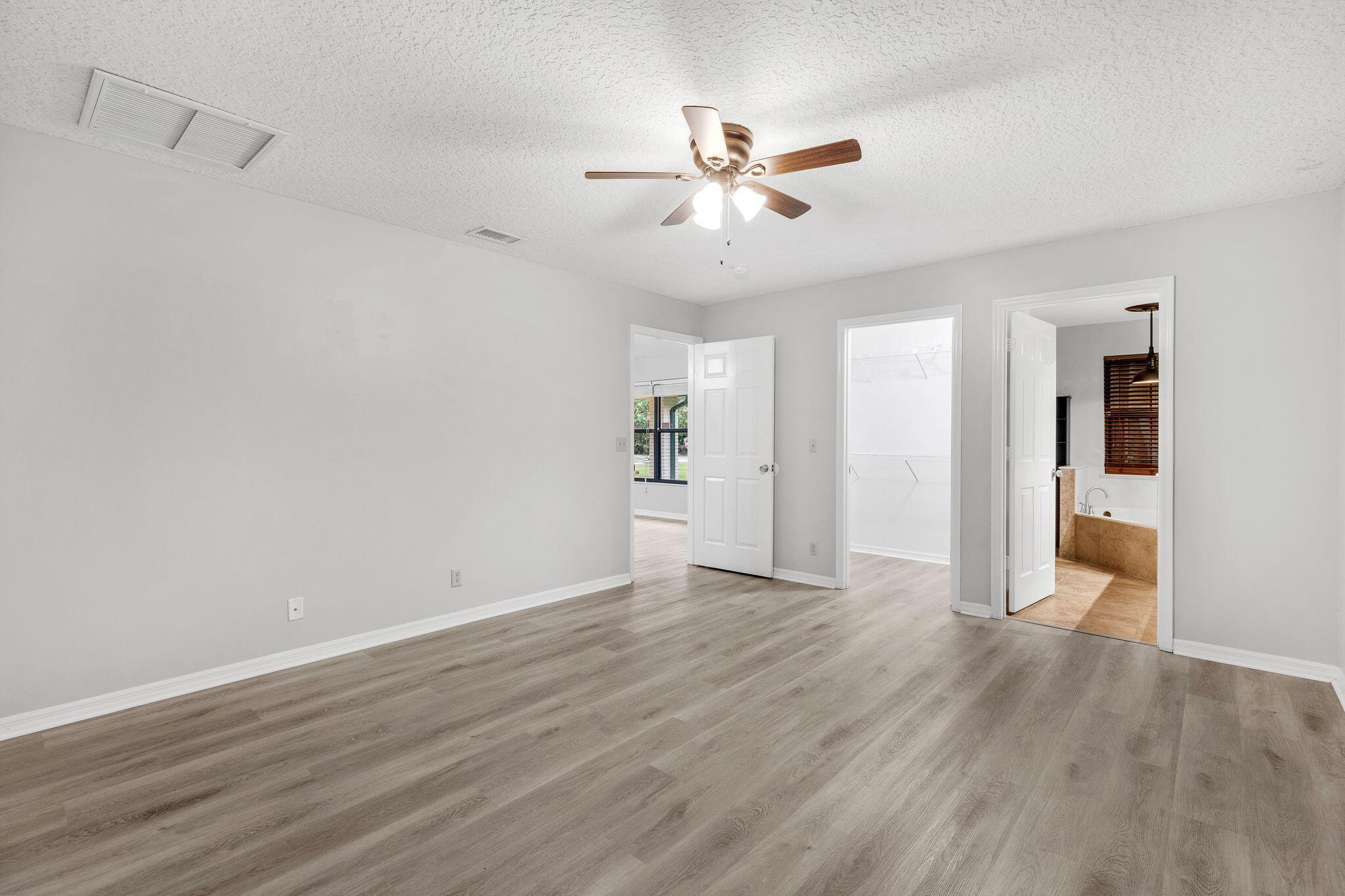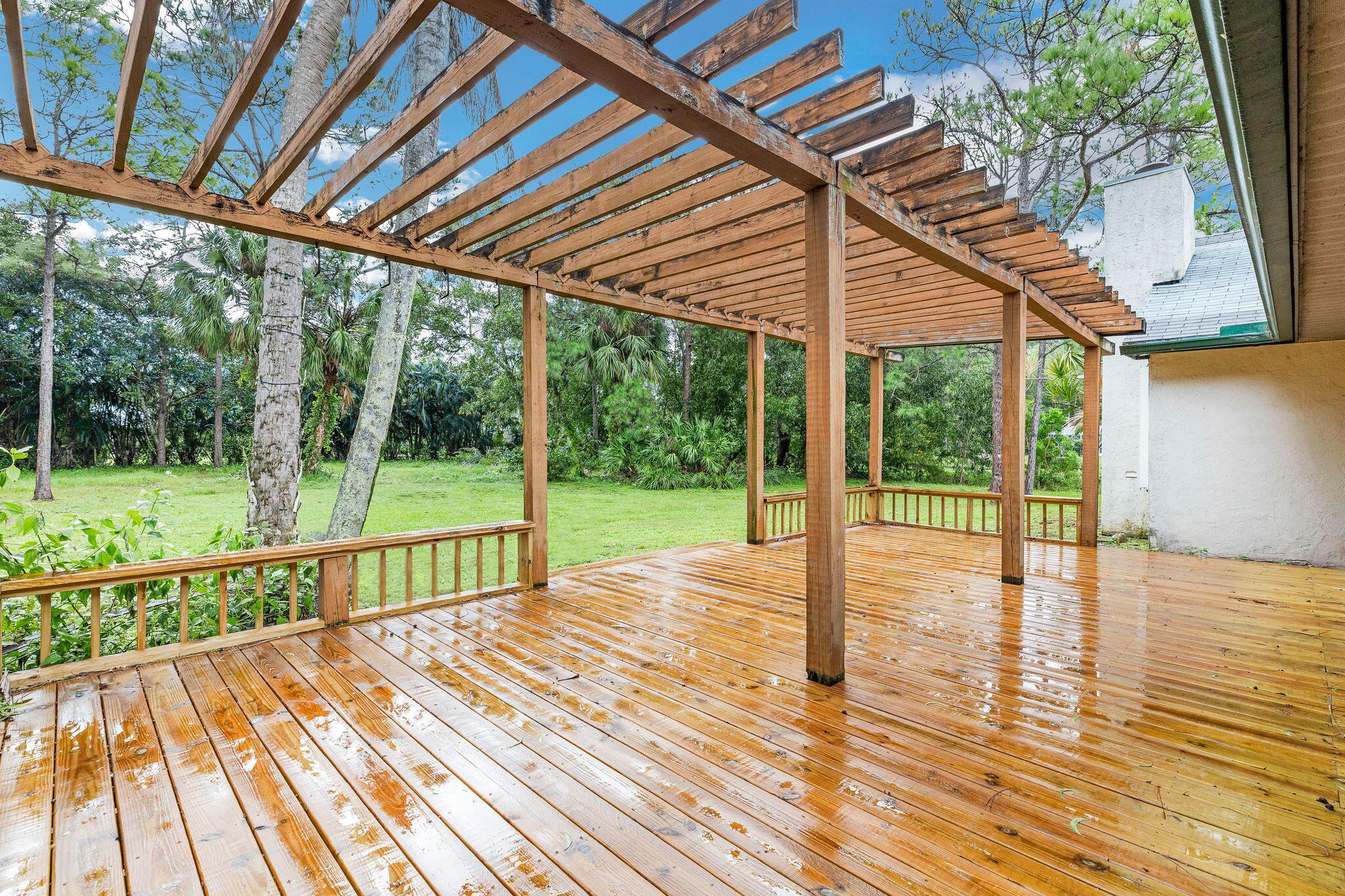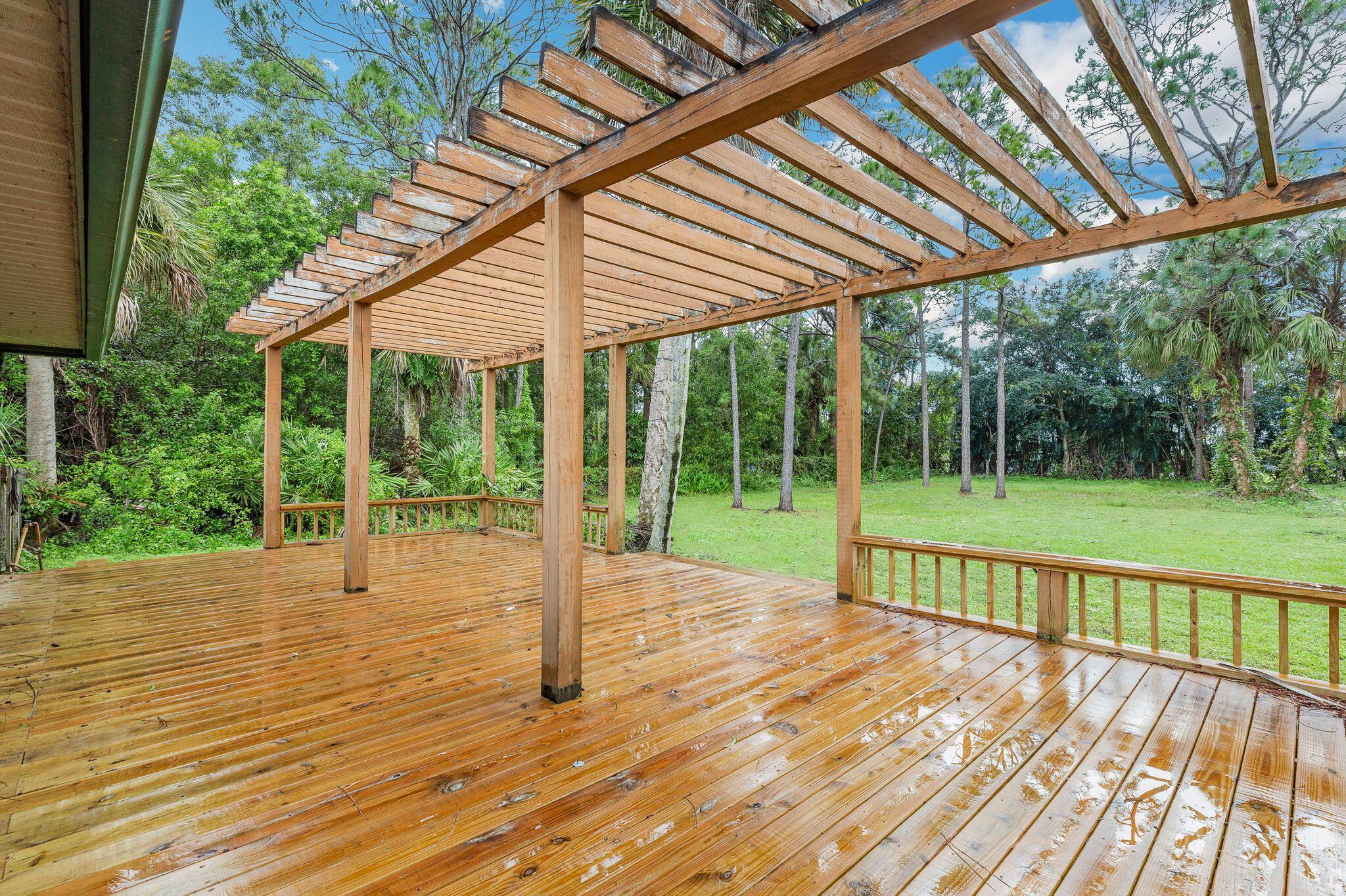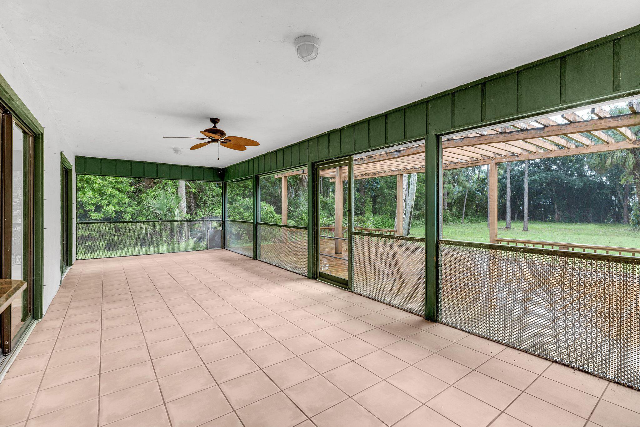 Welcome to your dream home in the heart of Jupiter Farms! New Roof! This charming 3-bedroom, 2-bathroom residence boasts 1,675 sq. ft. of living space and sits on a sprawling 49,497 sq. ft. lot. Built in 1989, the split floor plan features a spacious primary bedroom with a walk-in closet, en-suite bathroom with dual sinks, separate bathtub, and shower. Enjoy cozy evenings by the wood-burning fireplace or relax in the screened-in patio. With paved roads for easy access, this home offers both comfort and convenience on over an acre of lush land. Don't miss out on this fantastic opportunity! Brand New Roof installed May 2025.