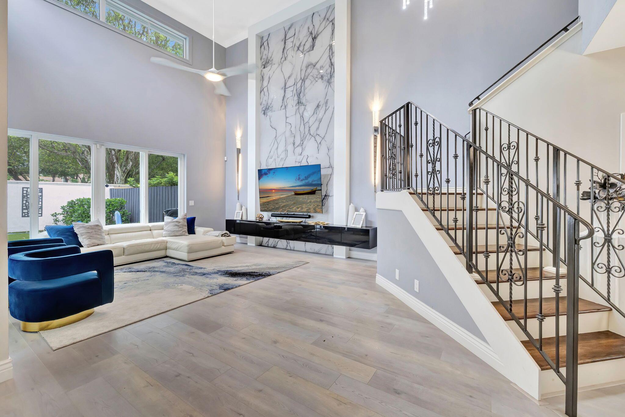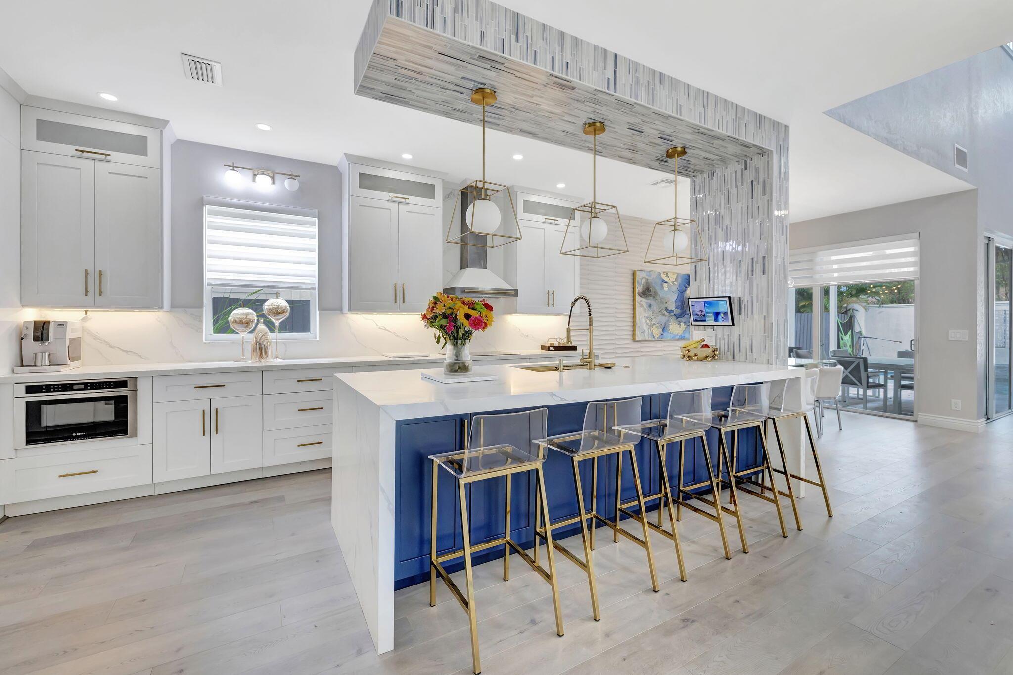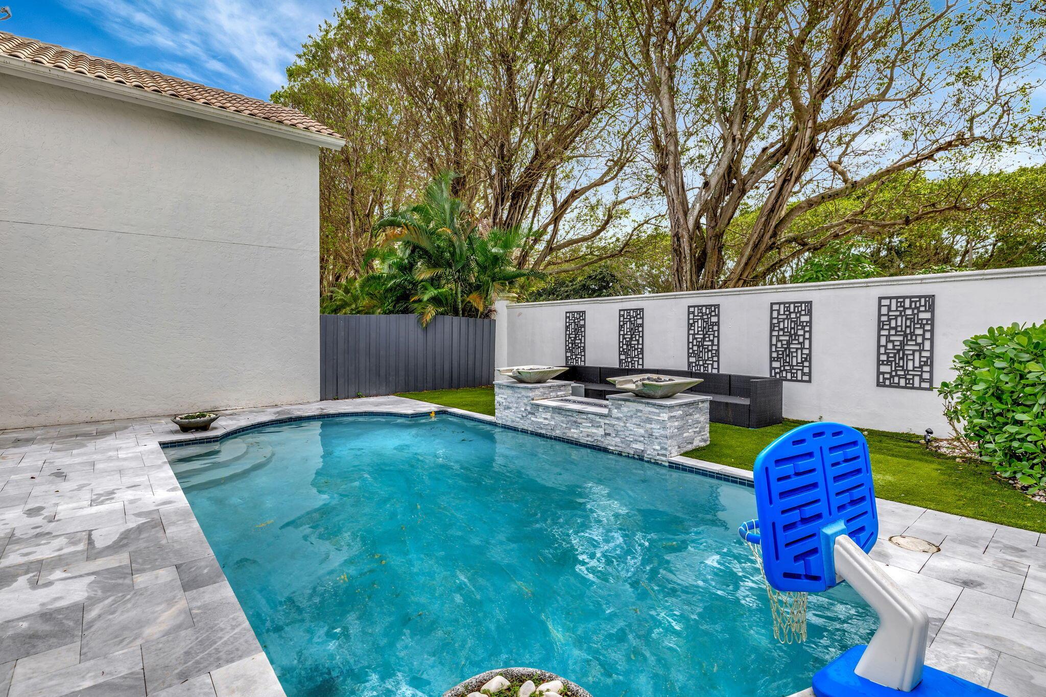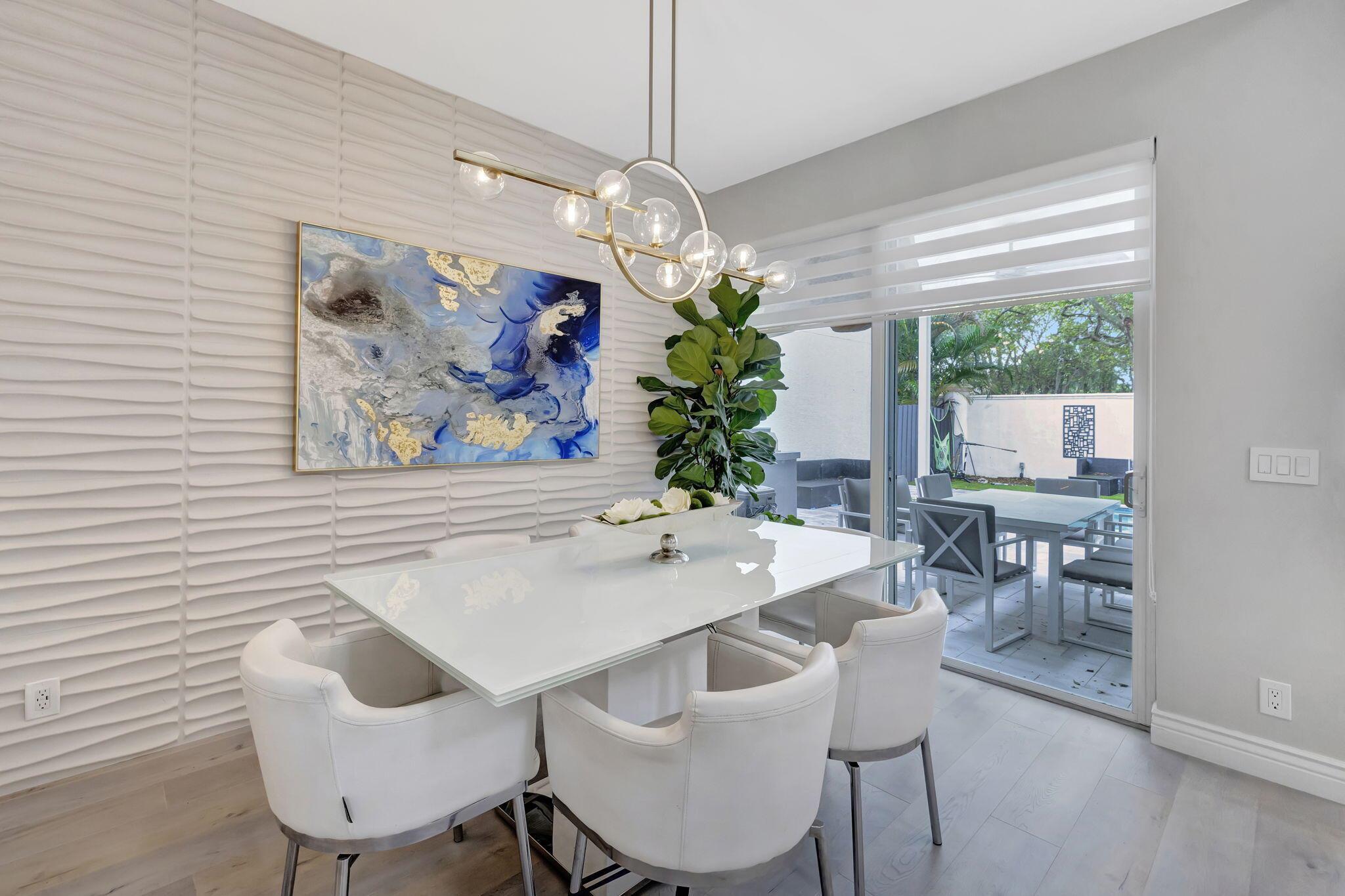Experience a 5-star resort lifestyle in the exclusive Banyans at Broken Sound. This highly sought-after community located in the heart of Boca Raton with offers top-rated schools. This private community offers an unparalleled array of amenities, two beautiful championship golf courses, 23 Har-Tru tennis courts, and 8 pickleball courts. Step into this stunning renovated home through a brand-new front door and be greeted by an open floor plan with luxury vinyl flooring, volume ceilings, and a striking feature wall of tile. The expansive windows bathe the home in natural light, seamlessly blending the living spaces. The gourmet kitchen, embellished with designer appliances, quartz countertops, and a remarkable oversized island, is perfect for entertaining.