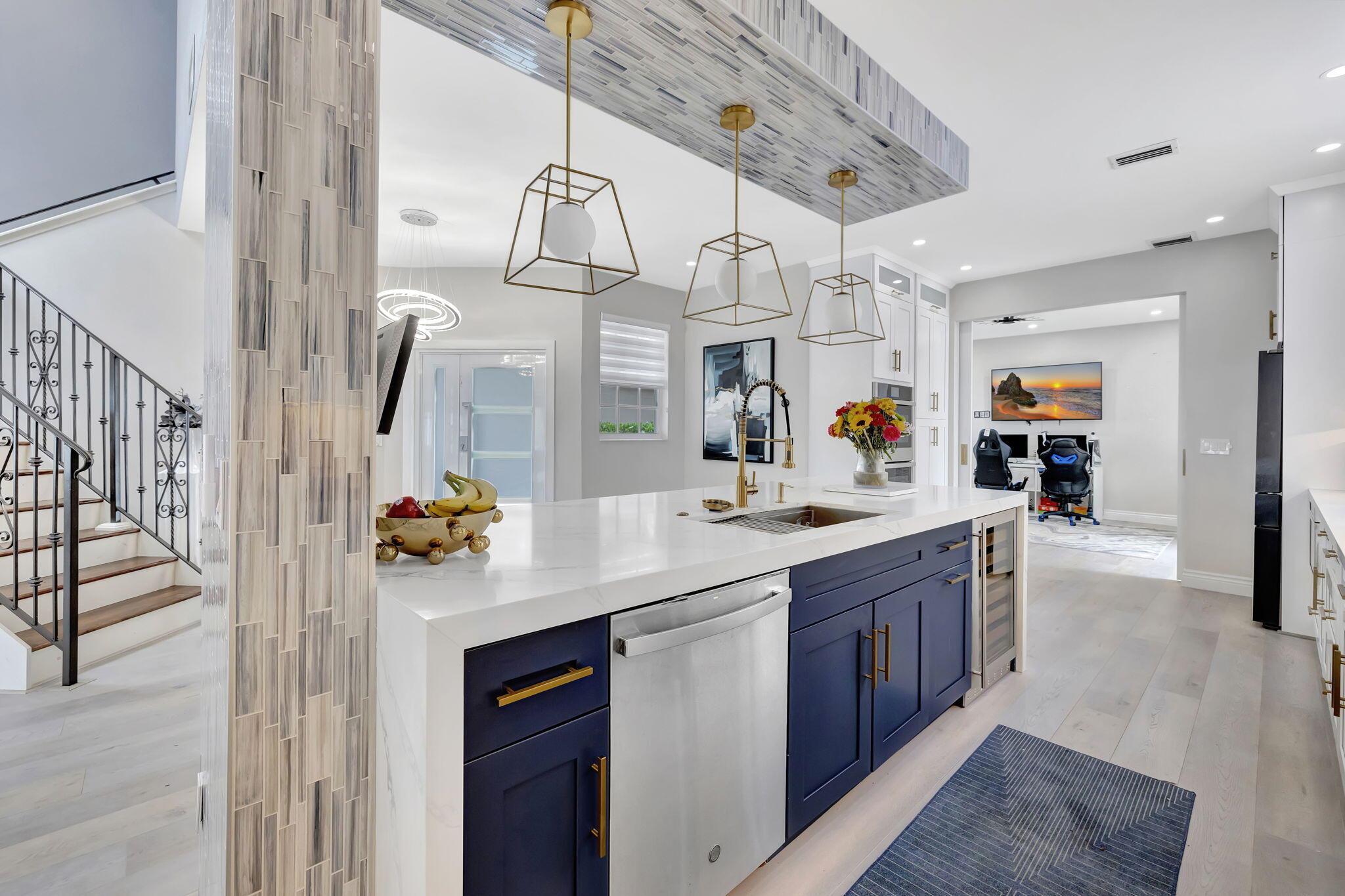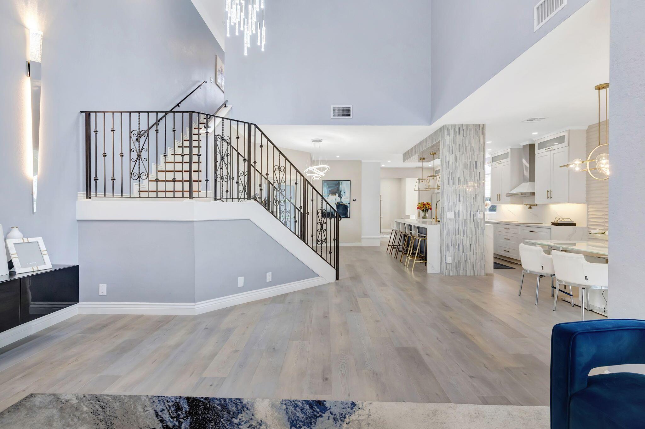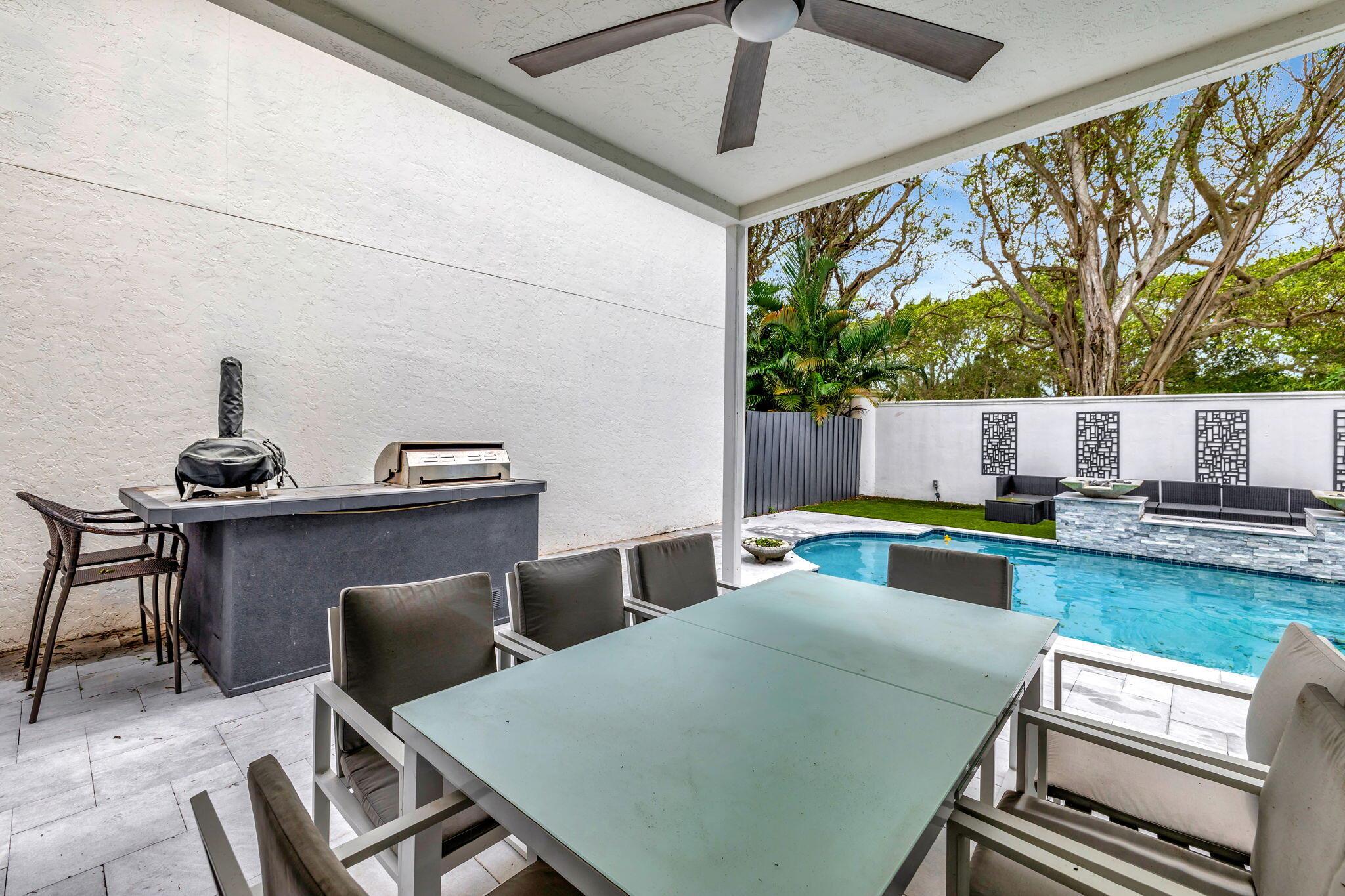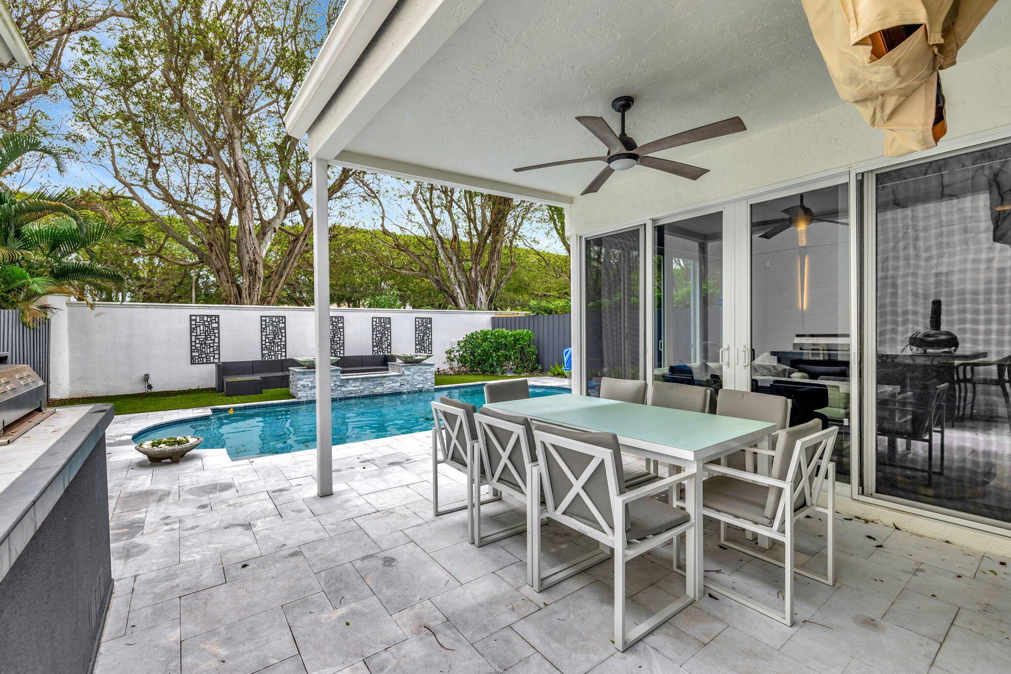 Experience a 5-star resort lifestyle in the exclusive Banyans at Broken Sound. This highly sought-after community located in the heart of Boca Raton with offers top-rated schools. This private community offers an unparalleled array of amenities, two beautiful championship golf courses, 23 Har-Tru tennis courts, and 8 pickleball courts. Step into this stunning renovated home through a brand-new front door and be greeted by an open floor plan with luxury vinyl flooring, volume ceilings, and a striking feature wall of tile. The expansive windows bathe the home in natural light, seamlessly blending the living spaces. The gourmet kitchen, embellished with designer appliances, quartz countertops, and a remarkable oversized island, is perfect for entertaining.