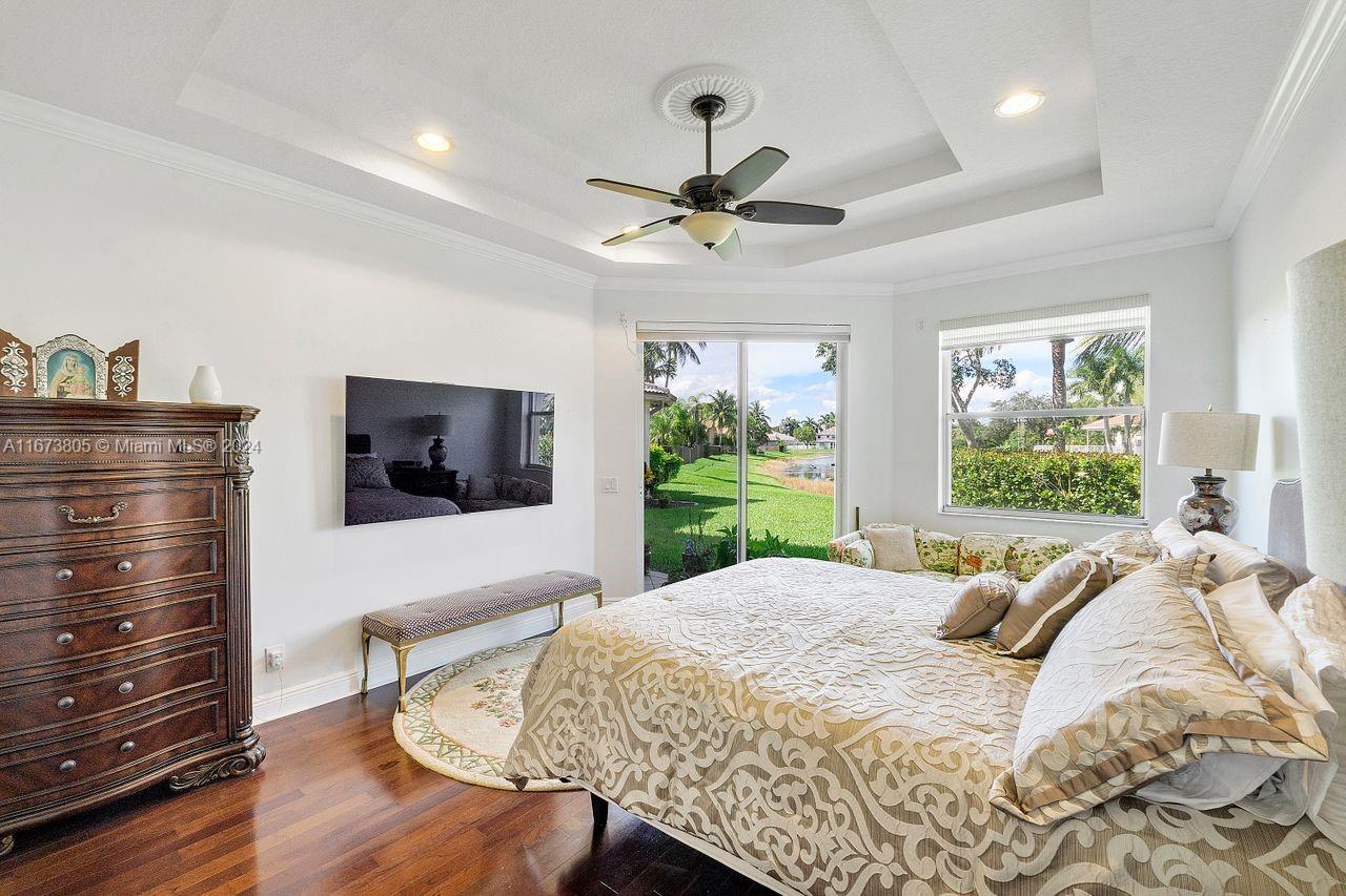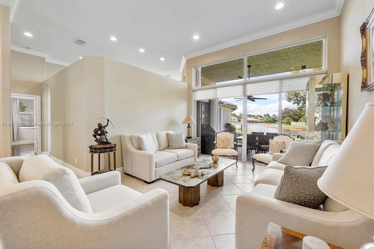 NEW PRICE!!!...EXCELLENT OPPORTUNITY...SINGLE STORY LAKEFRONT HOME IN WESTON HILLS!!!...split floor plan with high ceilings and abundant natural light. Beautiful water view from most of the home! This home has 3 Bedrooms and 1 Office/Library with built-ins. 3 Full updated bathrooms. Updated Kitchen, granite counter-tops and stainless steel appliances. Pull-out shelves in kitchen cabinets and pantry for optimal storage. Very spacious Family Room with Breakfast Nook. Master Bedroom with a view and walk-in closets. Ceramic and engineered wood floors throughout. 3 Car Garage. Partial impact windows and partial accordion shutters. LARGE BEAUTIFUL LOT with an open water view. Two A/C units (2018/2022) - Water Heater (2022) - Central Vacuum (2022) - Sprinkler System Motor (2020)