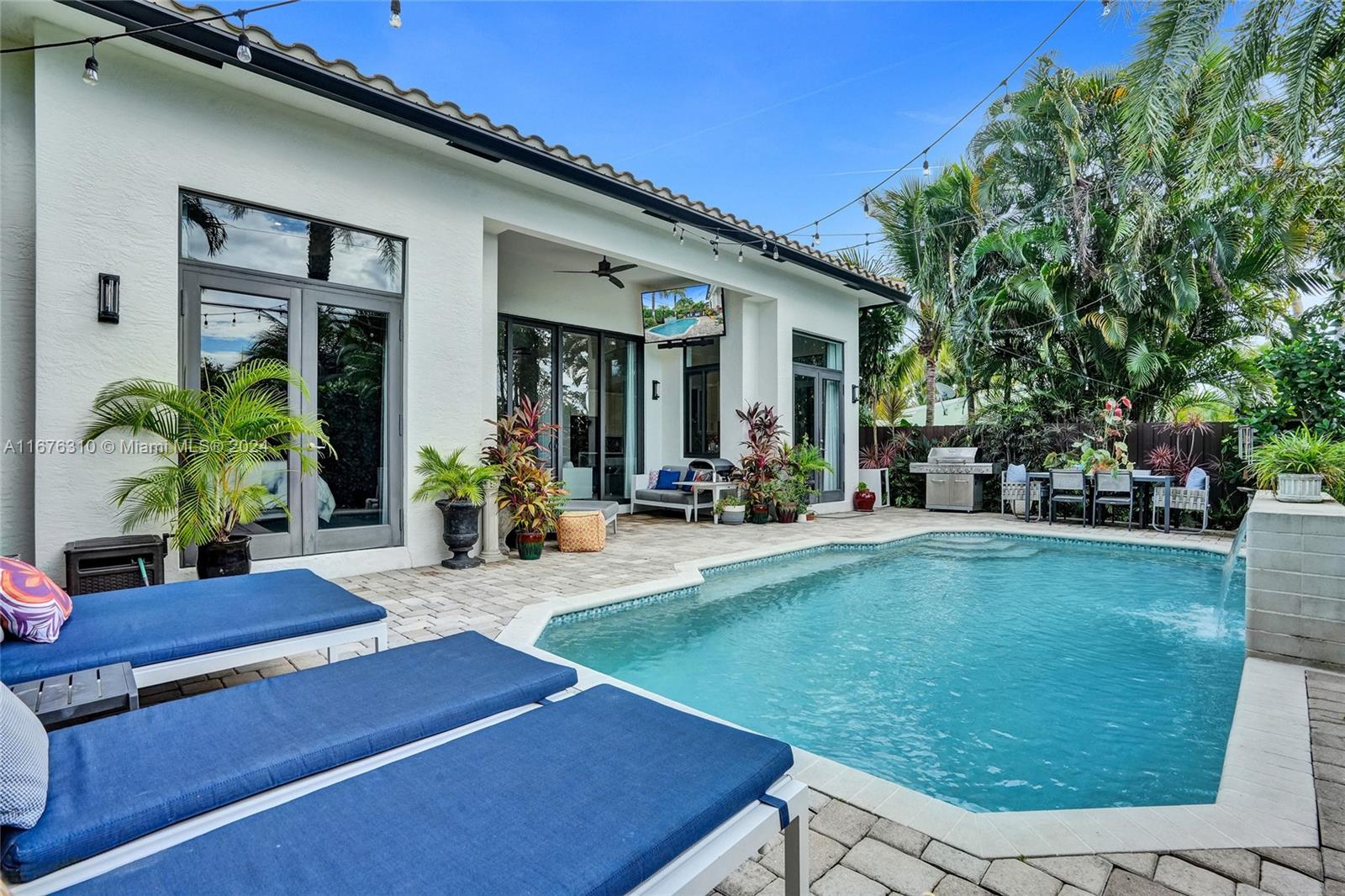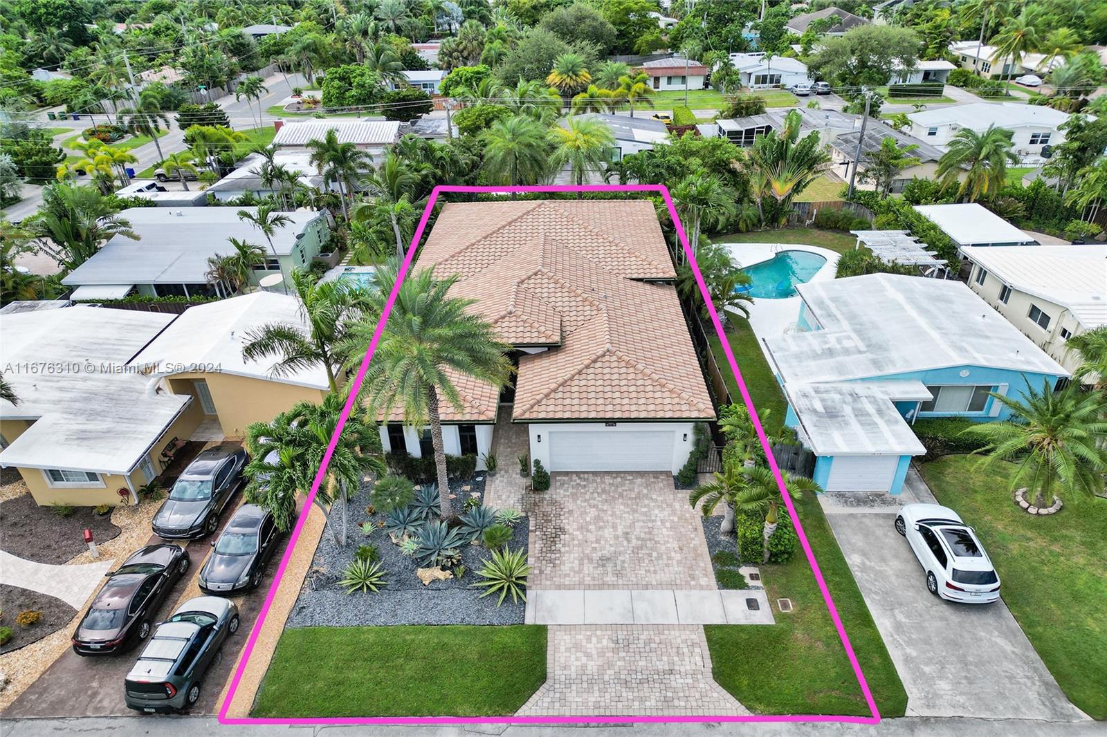 Sensational turnkey newer build magnificent one story single family residence with high end finishes beautifully appointed on one of the nicest streets in Poinsettia Heights!! Over $250K in renovations & over 3100 total SFT! Free-flowing floor plan with soaring 13 to 16 foot ceilings, impact windows, gourmet kitchen, quartz countertops, large luxurious bathrooms. Huge primary suite, just off the swimming pool, patio area with meticulously manicured gardens. Salt water heated pool, plenty of space for entertaining, open covered porch to relax & soak in the luscious sunsets Large 2-car garage & guest parking. Minutes away from Trader Joe’s, Whole Foods, Wilton Manors, Holiday Park, Downtown Las Olas, Galleria Mall, & beaches.