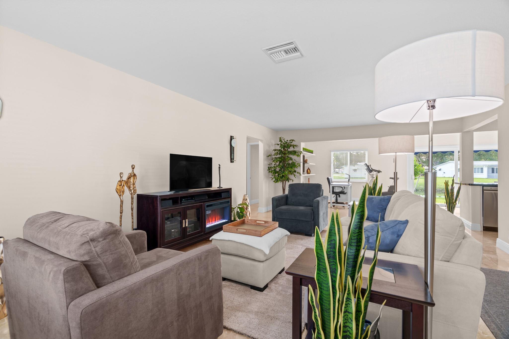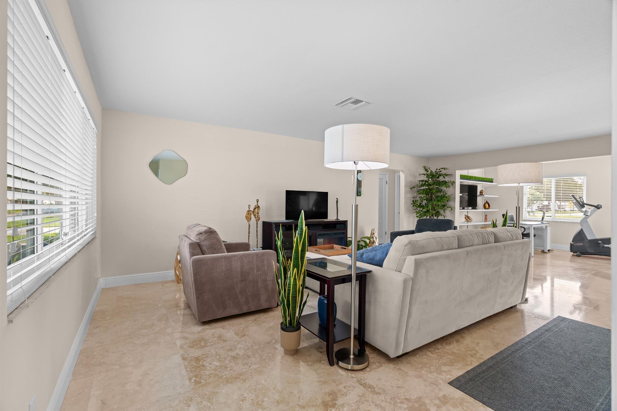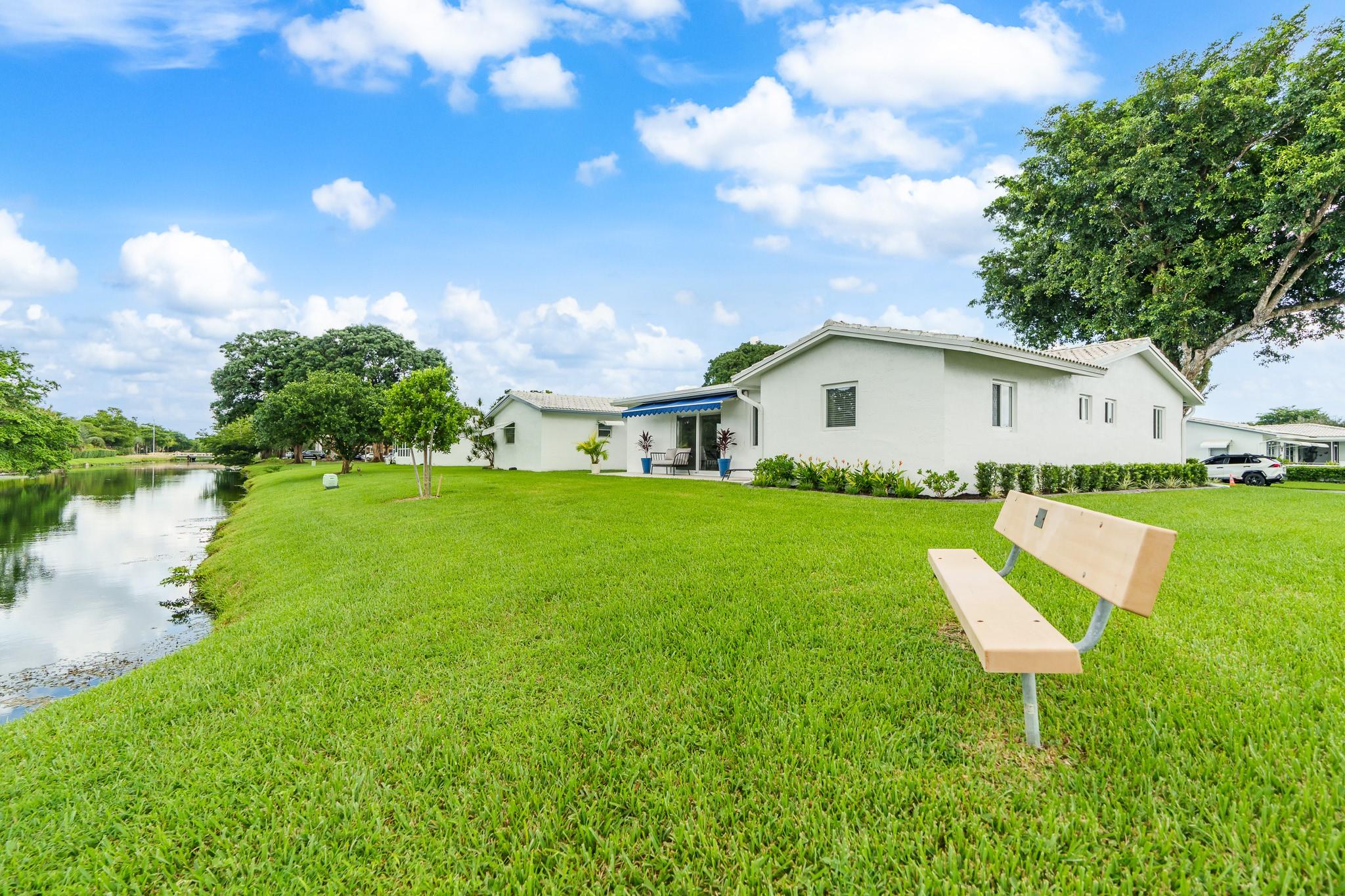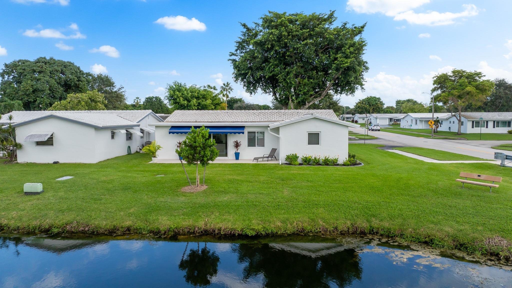 Lauderdale West, prestigious 2/2 waterfront home w/garage. 55+ active community. All impact windows/doors, tile roof 2022, impeccable home w/hi-end Travertine flooring through-out, open kitchen with granite counter tops, double wide concrete driveway, front/rear patios, luxurious home that is extremely well kept & move in condition. Low monthly maintenance includes Cable TV & Wi-Fi, repair/replace roof, exterior painting, swimming pools (2), active clubhouse, tennis, pool tables, ping pong, professional shows, courtesy bus at your door, social clubs, card rooms, fitness center and much more. Near to restaurants, shopping, beaches, airport, cruise ships and more. Do not miss this one!