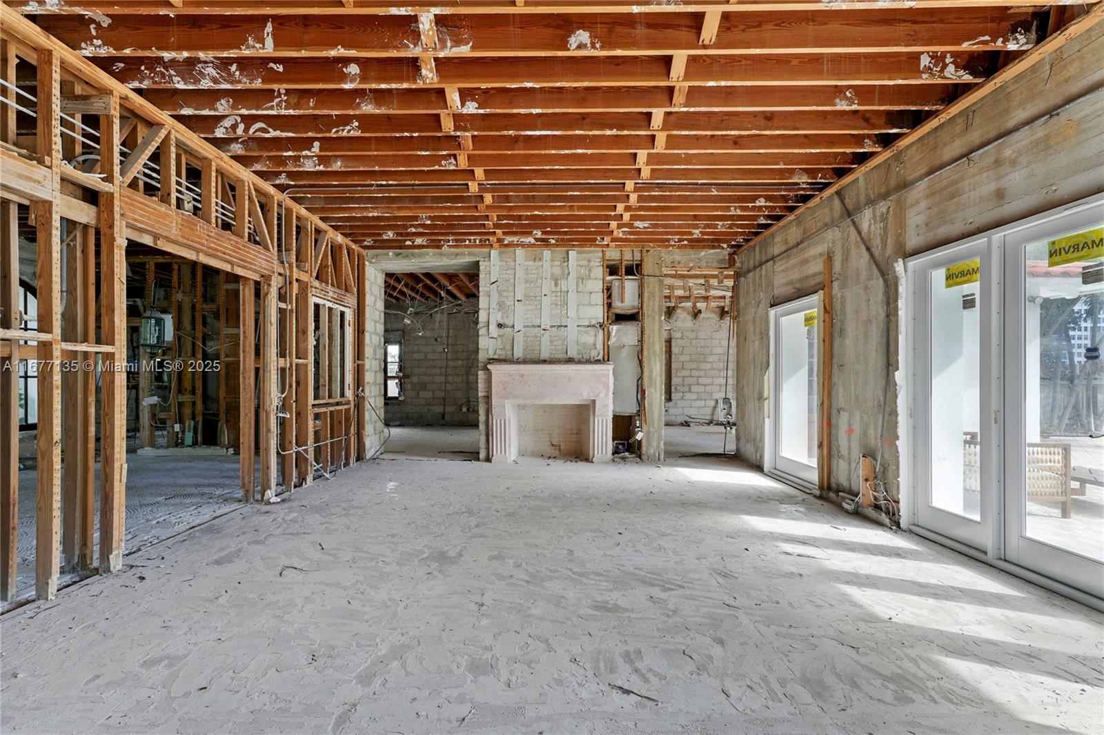 Imagine the endless possibilities with this picturesque waterfront estate on prestigious Pine Tree Dr. A lush garden courtyard sets the stage as you enter this grand residence with 76’ of prime waterfrontage and sparkling water views. Stripped down to its essence, this elegant home is a blank canvas, offering a rare opportunity to renovate & design your dream space while maintaining the estate's timeless architecture. Sunlight pours through expansive windows & soaring ceilings. Additional features include a new roof with handcrafted Spanish tiles, original plaster moldings, a grand spiral staircase, and private balconies extending from the bedrooms. Outside, a spacious pool & a private dock complete the setting for ultimate waterfront living.