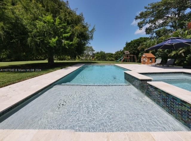Welcome to this beautifully updated 3-bedroom, 2-bathroom home situated on an oversized lot in a peaceful and established neighborhood. This charming residence features a spacious 15x30 pool and an in-ground spa, perfect for relaxation and outdoor enjoyment. The home has been updated with practically all-new features, including a brand-new roof, impact windows, new HVAC System and a modernized kitchen. The open living room concept creates a warm and inviting space, ideal for family gatherings and entertaining guests. Don’t miss the opportunity to own this move-in-ready gem on a generously sized lot !