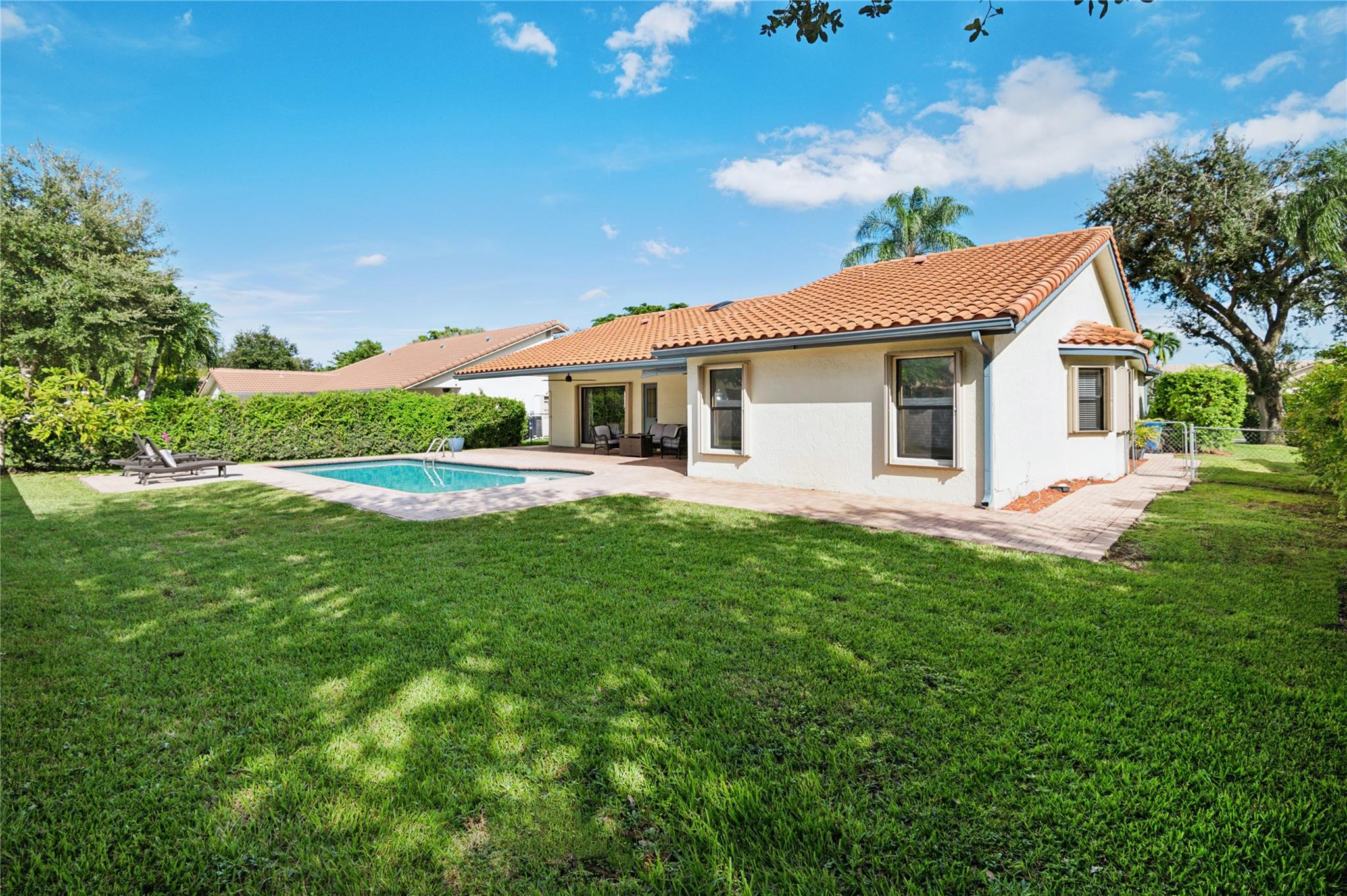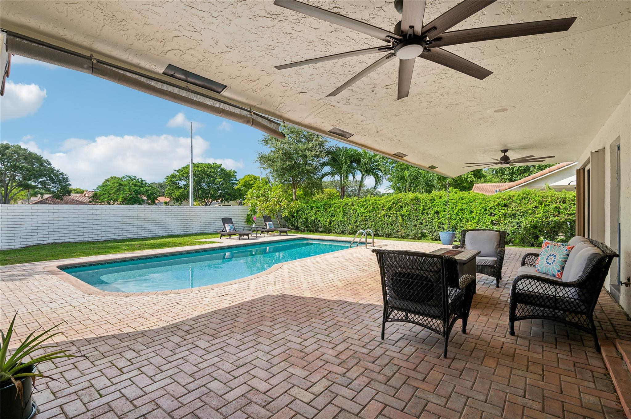 Discover this pristine 4-bedroom pool home in Pine Ridge, boasting a new roof (2020) and accordion hurricane shutters. The upgraded landscaping enhances the large, private backyard featuring a pool and covered patio—perfect for relaxation and entertaining. Enjoy an open floor plan with high ceilings and abundant natural light flooding the oversized living room that overlooks the pool area. Additional highlights include a formal dining room, family room, and beautifully updated bathrooms. The chef’s kitchen is equipped with a snack bar, granite countertops, and ample storage. The spacious primary suite offers walk-in closets, serene views, and direct access to the pool. The stunning primary bathroom features a gorgeous vanity, dual sinks, and a seamless glass-enclosed shower.