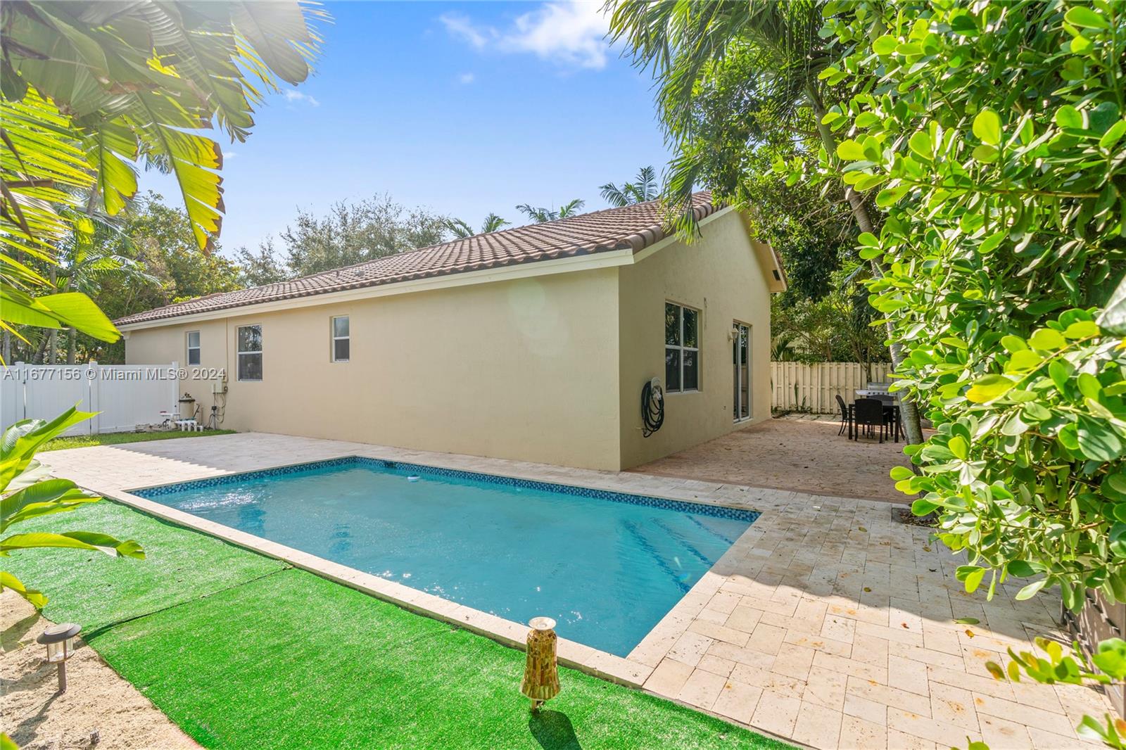 Beautiful One story home that features a spacious floor plan with vaulted ceilings, a family room overlooking the lake, large corner lot with space on both sides, the patio is surrounded by a beautiful landscape that provides privacy and elegance, it has a pool that was built in 2019. The 2-car garage was converted into 2 additional rooms that makes this home a 5 bedroom 2 bath. Low association fee of $140 per month. This property is located in the gated community of Vizcaya. Vizcaya is a family-friendly community with many amenities, including a clubhouse, fitness center, pool, jacuzzi, playgrounds, tennis courts and more. It is conveniently located close to schools, shopping, restaurants and highways. Motivated Seller!