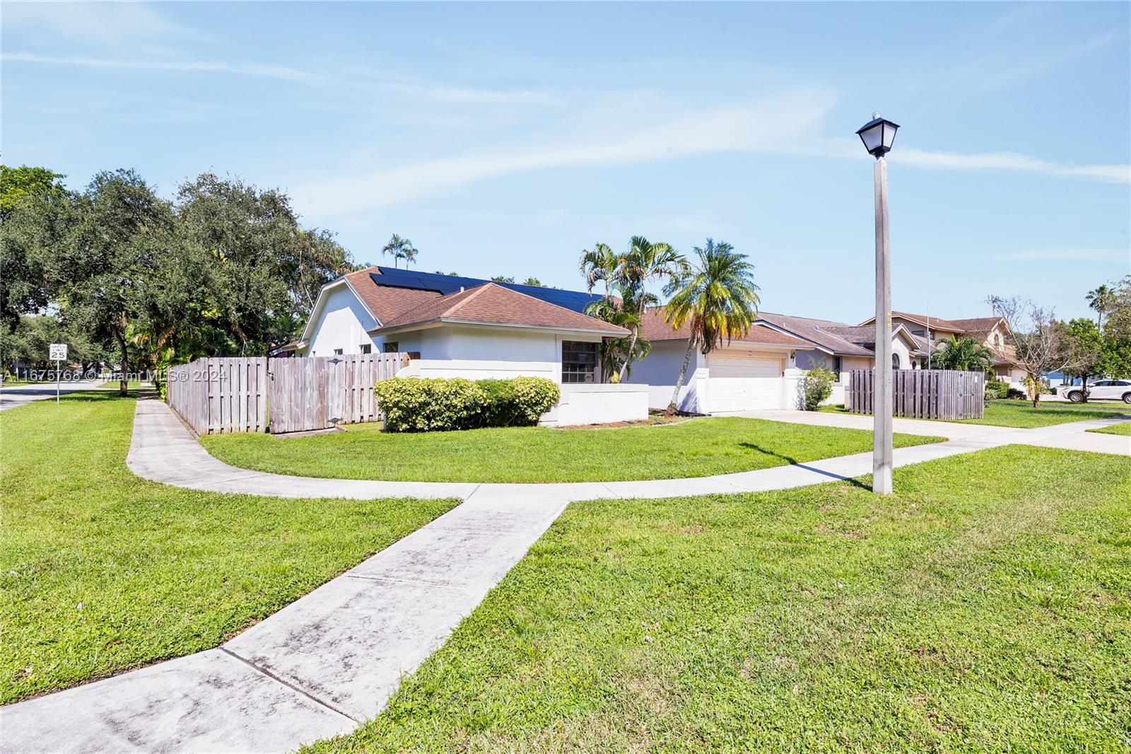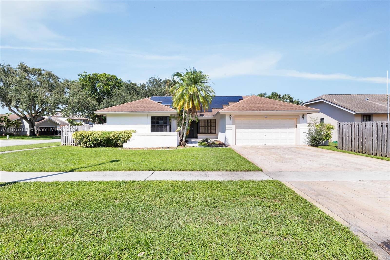 Beautiful, 3-bedroom, 2-bath, corner lot home in Cooper City's desirable Country Address community. This home features a large, fenced yard, an open floor plan with vaulted ceilings, a 2-car garage, a new (2023) AC system and solar panels (2023). Located near Cooper City's "A" rated schools, shopping, 595 and 95 and Ft. Lauderdale airport. No HOA!