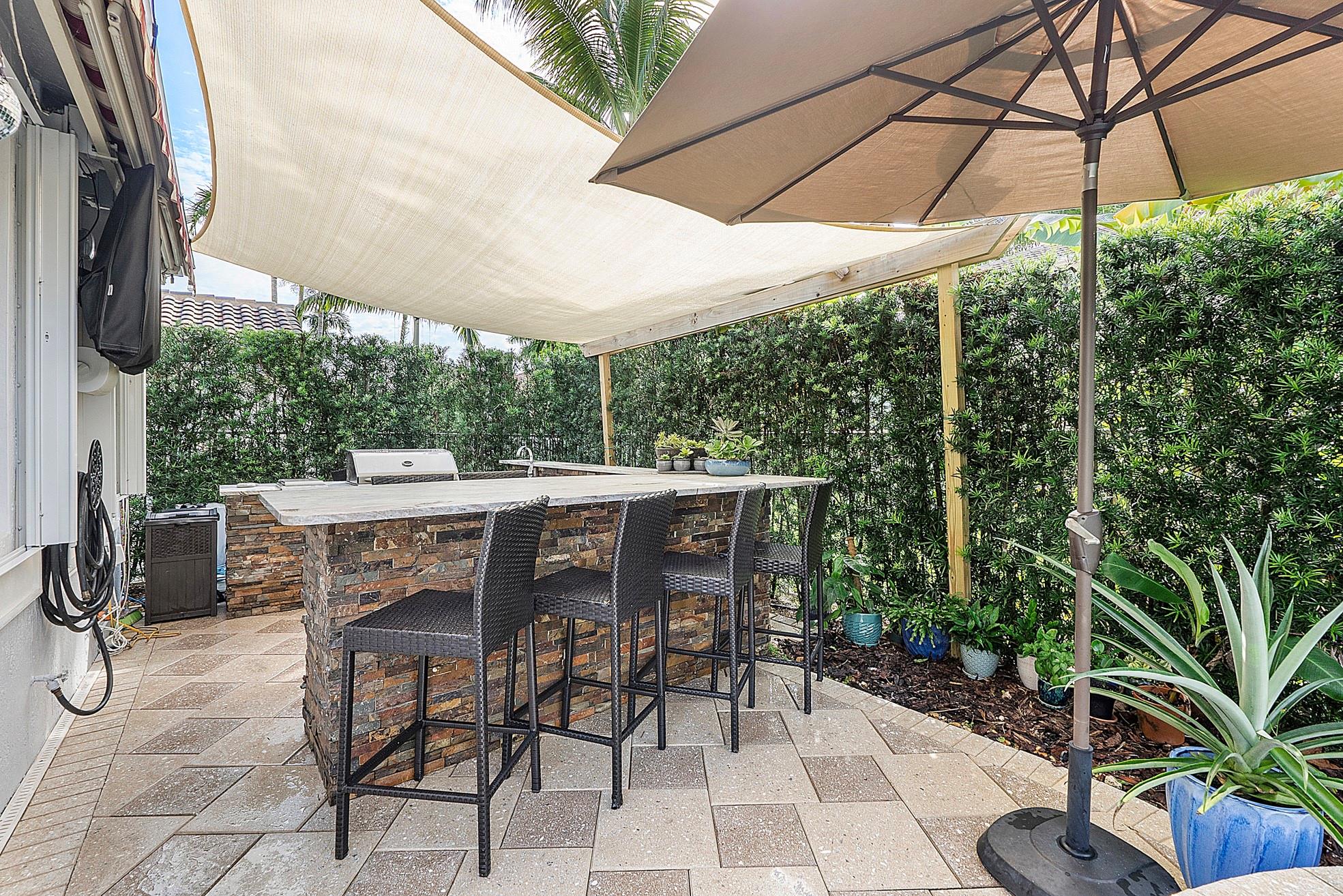 THIS HOME HAS IT ALL!!! Beautifully remodeled w/designer finishes throughout. Enjoy Florida resort living in this private tropical oasis corner lot w/solar heated/cooling system saltwater pool & spa, gorgeous summer kitchen w/marble top BBQ, island & fully fenced. Brand new 2023 roof w/solar panels saves $ on bills & Brand New 2024 A/C! Gorgeous Chef kitchen w/vented hood, exquisite backsplash, quartz countertops, LG SS appliances, wrought iron staircase, crown molding, custom stone wall w/electric fireplace & more. Two Master suites! One downstairs w/ensuite bath, walk-in closet & stunning powder bath for guests. Upstairs 2nd Master bed w/ensuite bath plus 3 more lovely beds & bath. Guard gated Savanna is a great value low HOA w/community pool & A+ rated Weston schools. Must see!!!