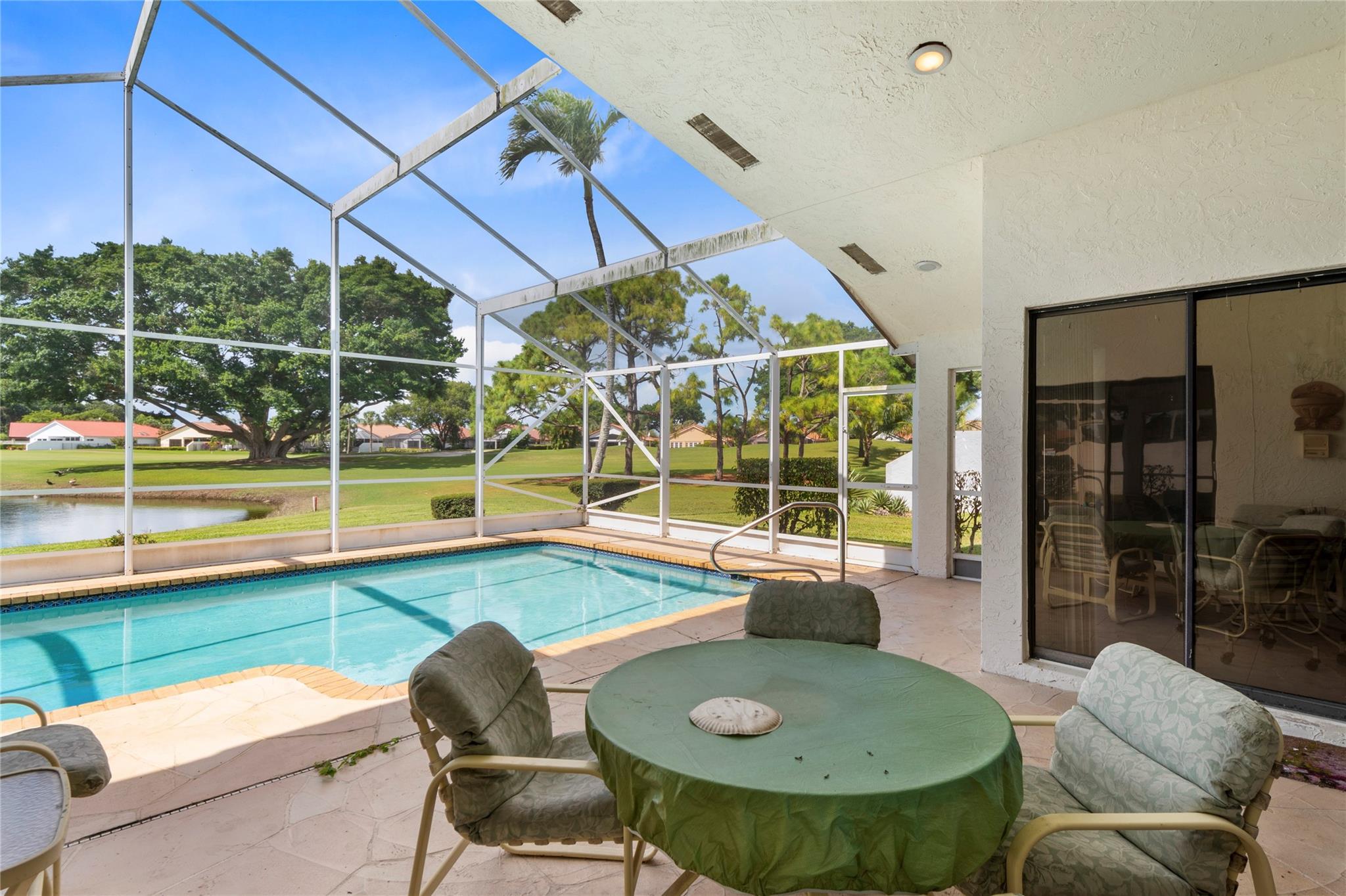 Welcome to your retreat in Boca Raton! This single-story home offers two bedrooms, a den that could be a third bedroom, and a layout that combines privacy and comfort. Step inside to find high ceilings and a spacious open-concept living area filled with natural light, perfect for relaxing and entertaining. Imagine mornings by your private pool, savoring panoramic views of serene water and the lush fairways at the beginning of the back 9. Enjoy an exclusive, resort-like lifestyle with golf, dining, swimming, spa and shopping. This home is a true oasis, in the most desired section of Boca Woods country club for its quiet street and cul de sac living. Don’t miss this rare find! Mandatory membership community Mandatory membership required at move in