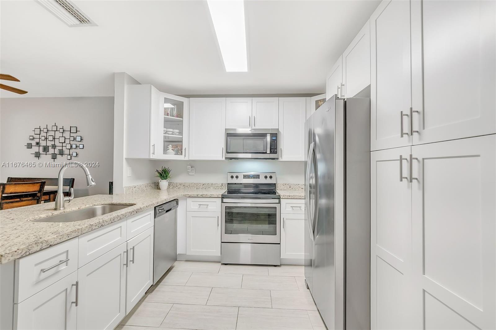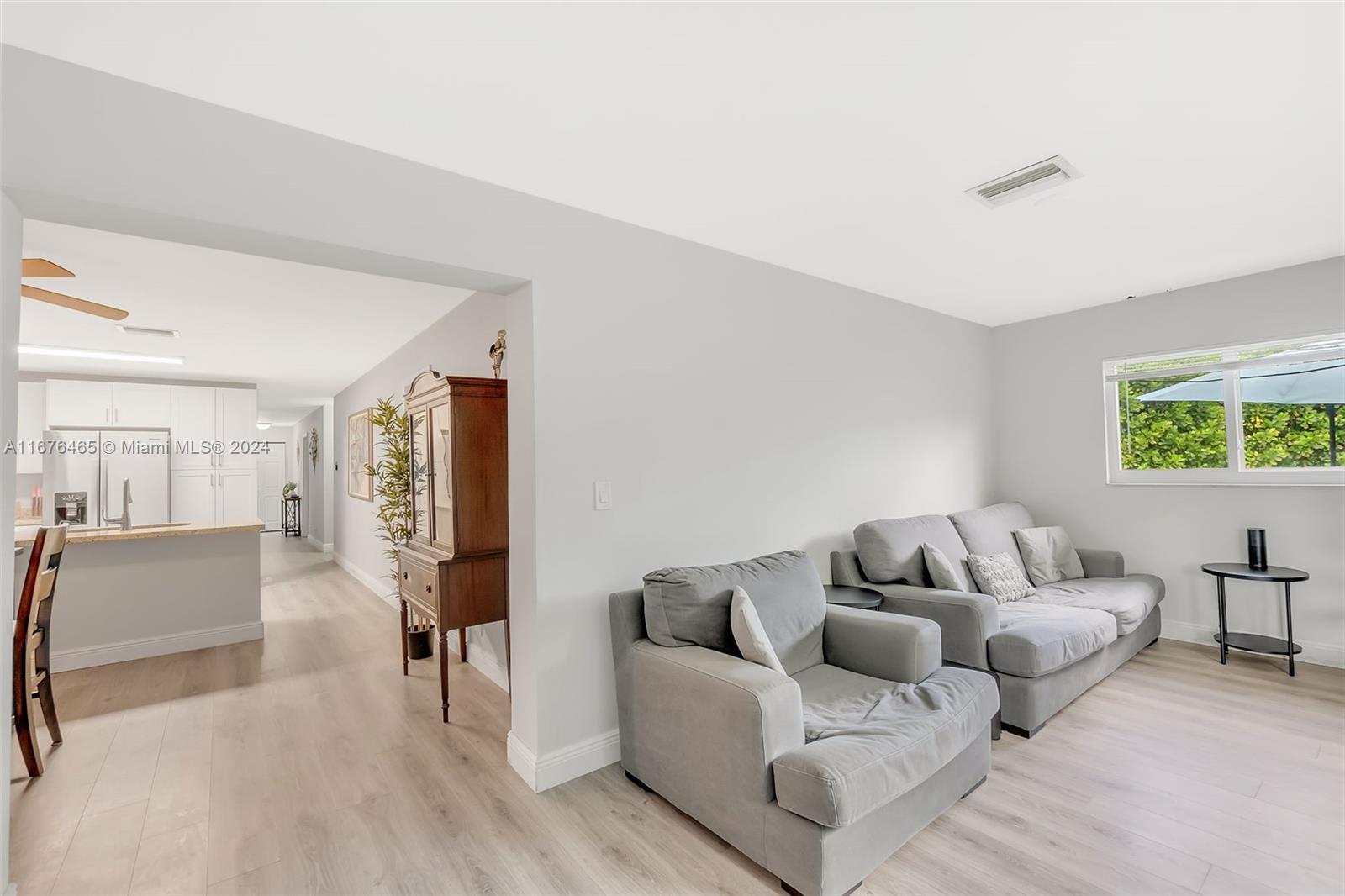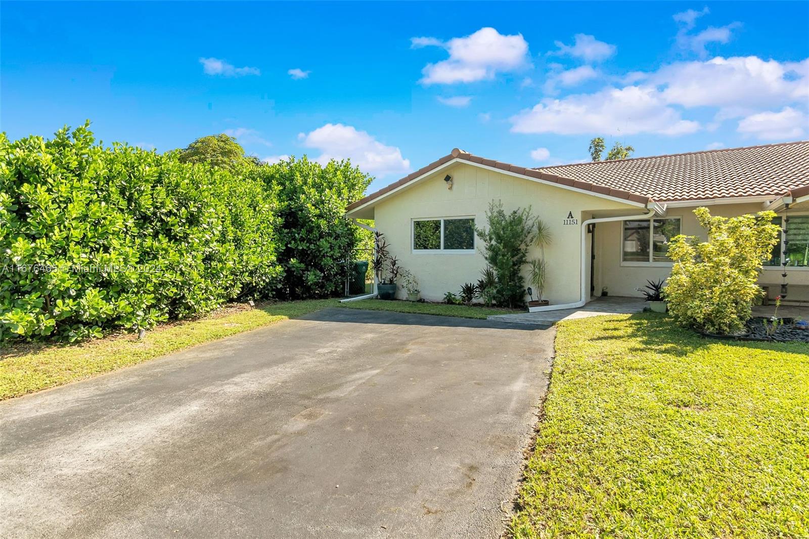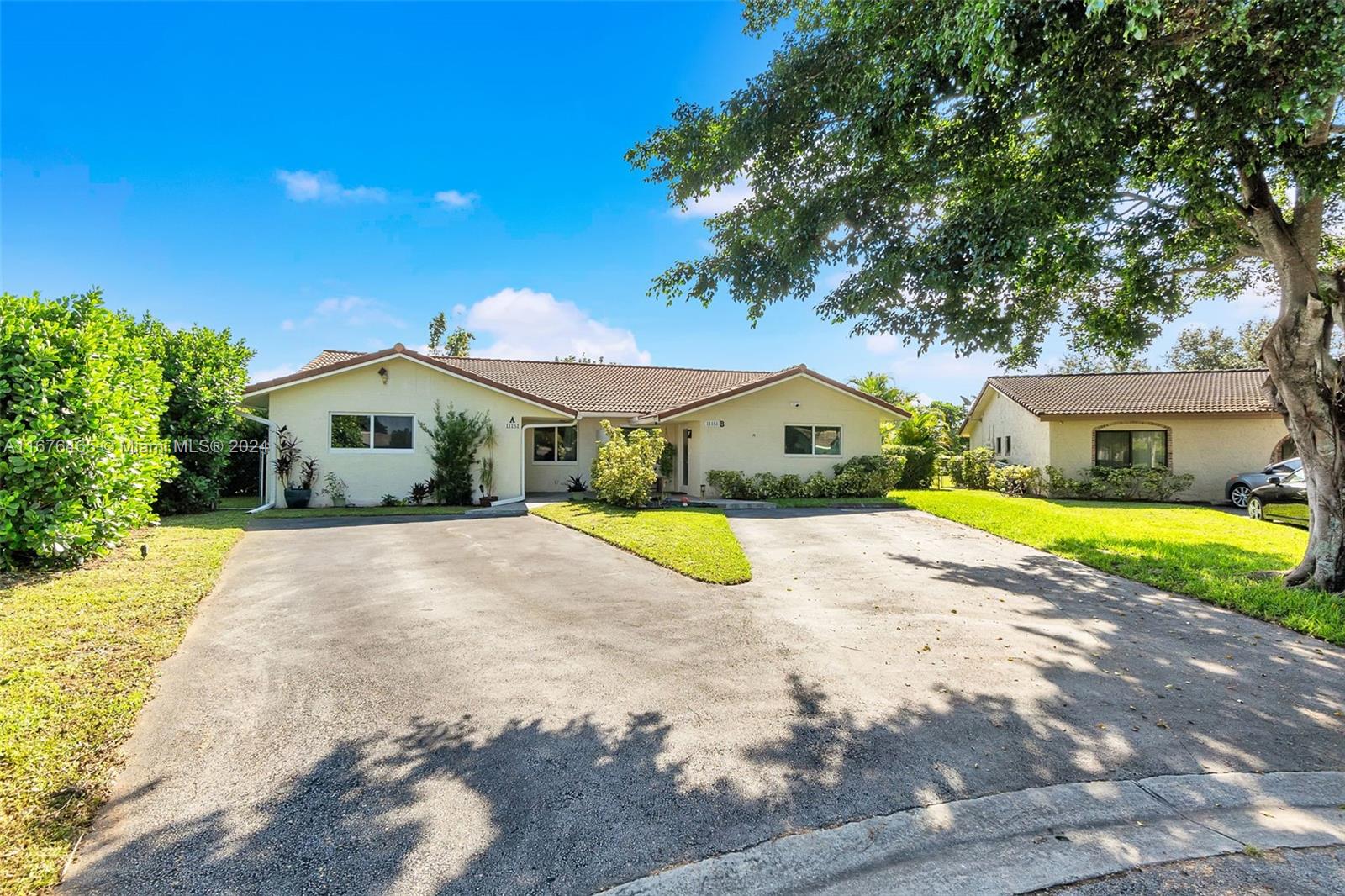 This renovated half-duplex in Coral Springs features 3 bedrooms, 2 bathrooms, and a spacious driveway for up to 4 cars, plus a lovely garden patio. Situated in a quiet cul-de-sac, the home boasts a modern kitchen with granite countertops, white cabinets with glass fronts, and stainless steel appliances. Both bathrooms are updated with granite and ceramic tile finishes; the master bath includes a walk-in shower, while the guest bath offers a tub/shower combo. A bonus room at the back provides extra space for an office, playroom, or gym. There's also a convenient laundry room. The expansive, pie-shaped backyard offers plenty of room for a pool. Ideally located near shops, restaurants, and all that Coral Springs has to offer—plus, no HOA!