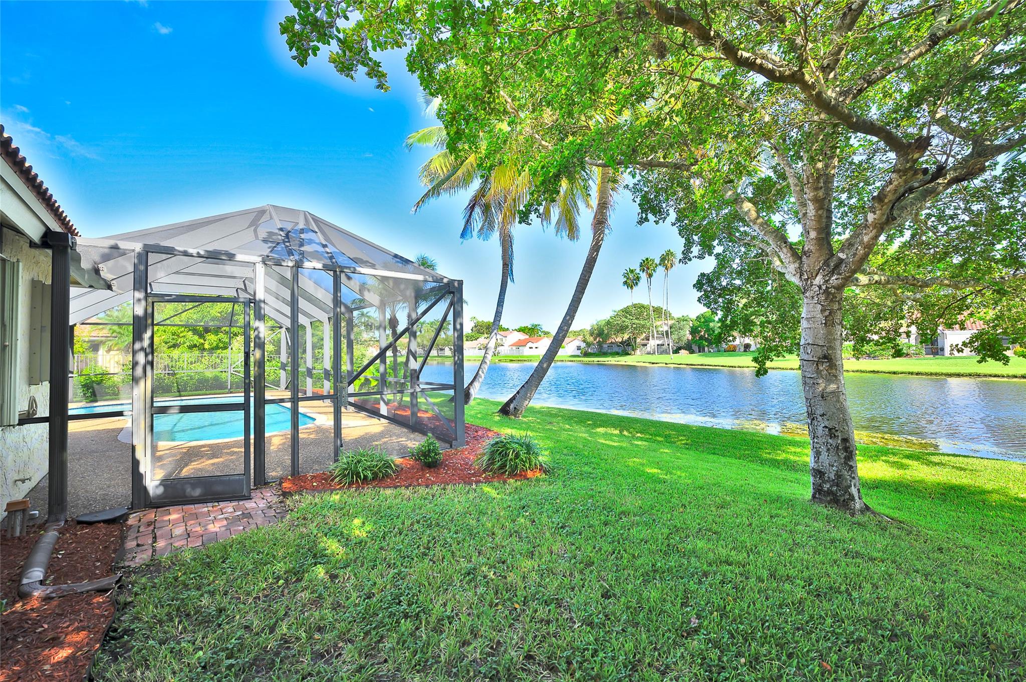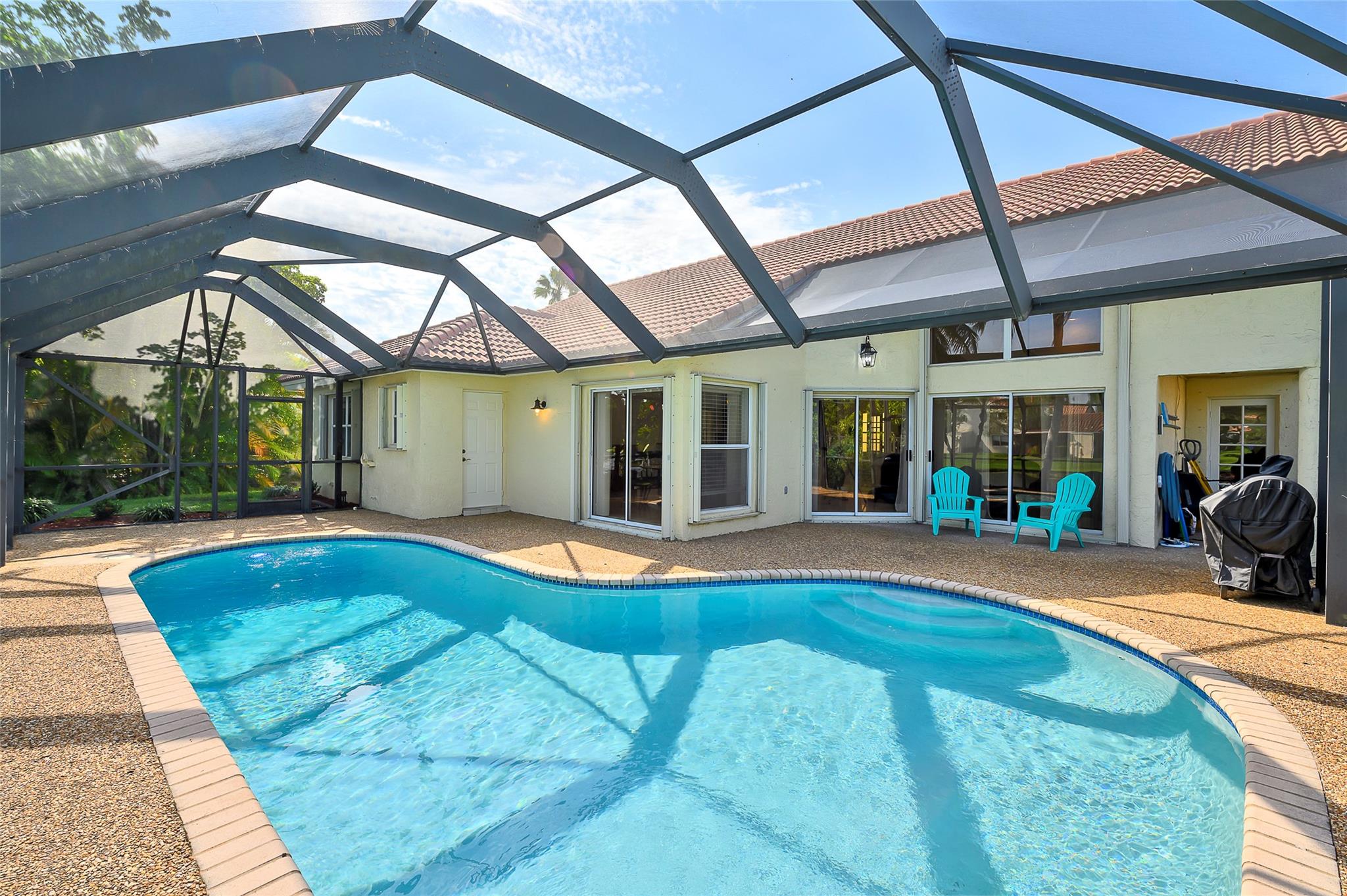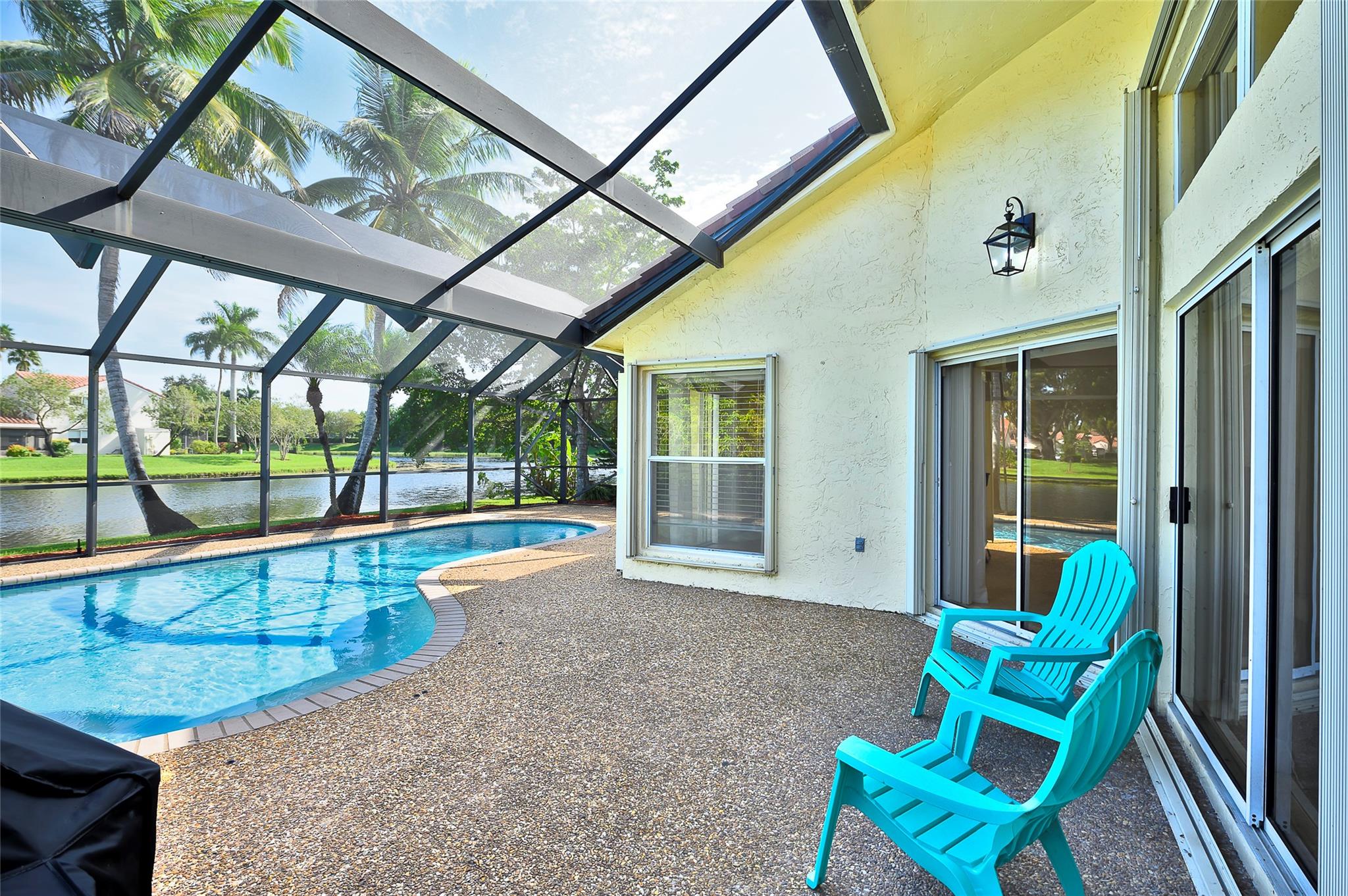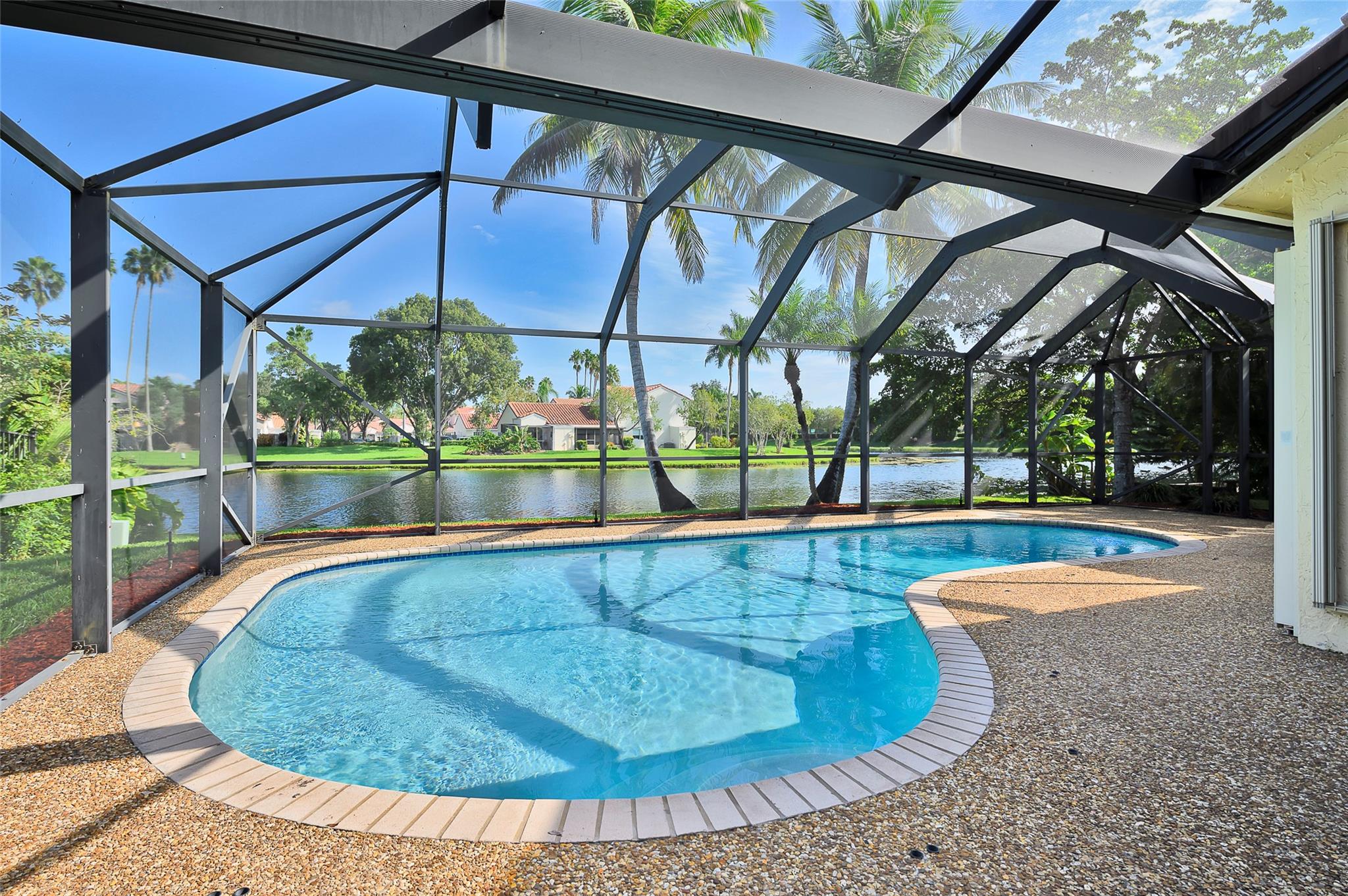 Welcome to this beautiful 4 bedroom 2.5 bathroom home in immaculate condition nestled on a spectacular private lakefront lot. Elegant and bright open layout with gorgeous neutral travertine floors throughout the living area. The formal dining room with French doors can be used as an office/playroom or converted into a 5th bedroom. Tastefully upgraded kitchen with granite countertop and newer stainless steel appliances and a new wine cooler. The spacious primary suite with his and hers walk-in closets. Fully remodeled bathrooms. Many features such as accordion shutters, garage door 2023, pool resurfaced 2023, A/C 2022, pool screen 2022, electrical panel 2021, roof 2007. Pool with Salt System. The screened pool and patio are perfect for your enjoyment and entertainment.