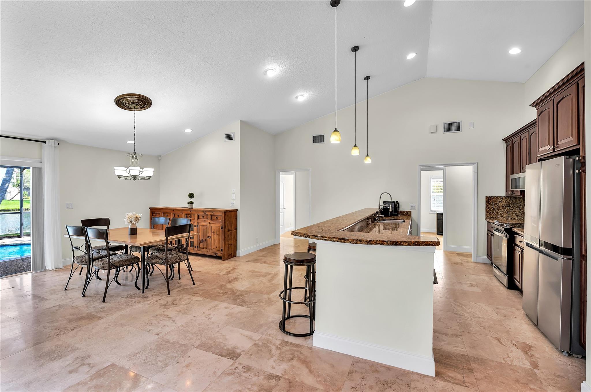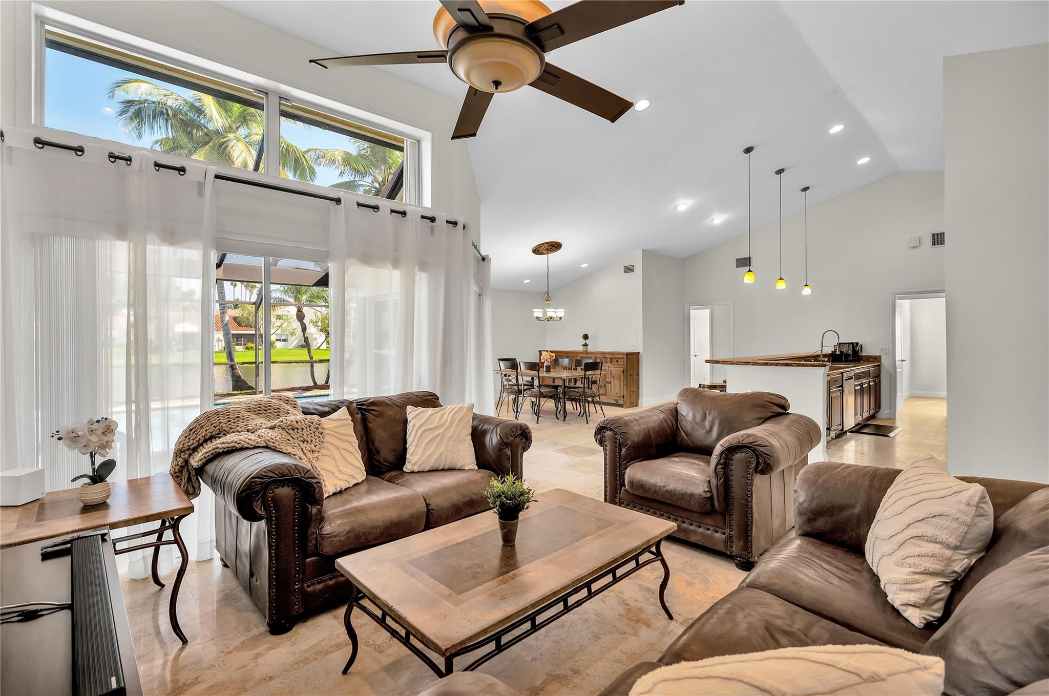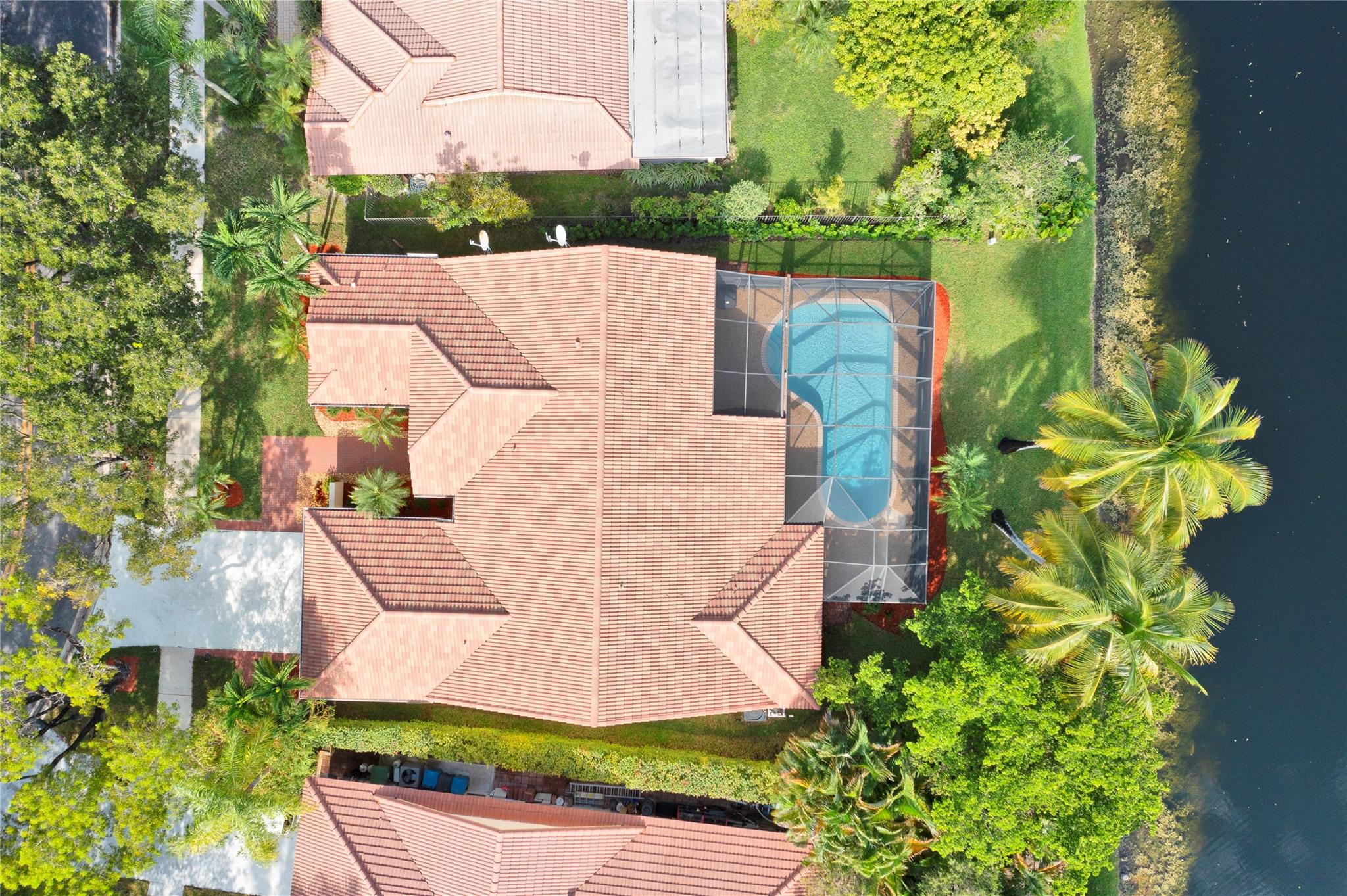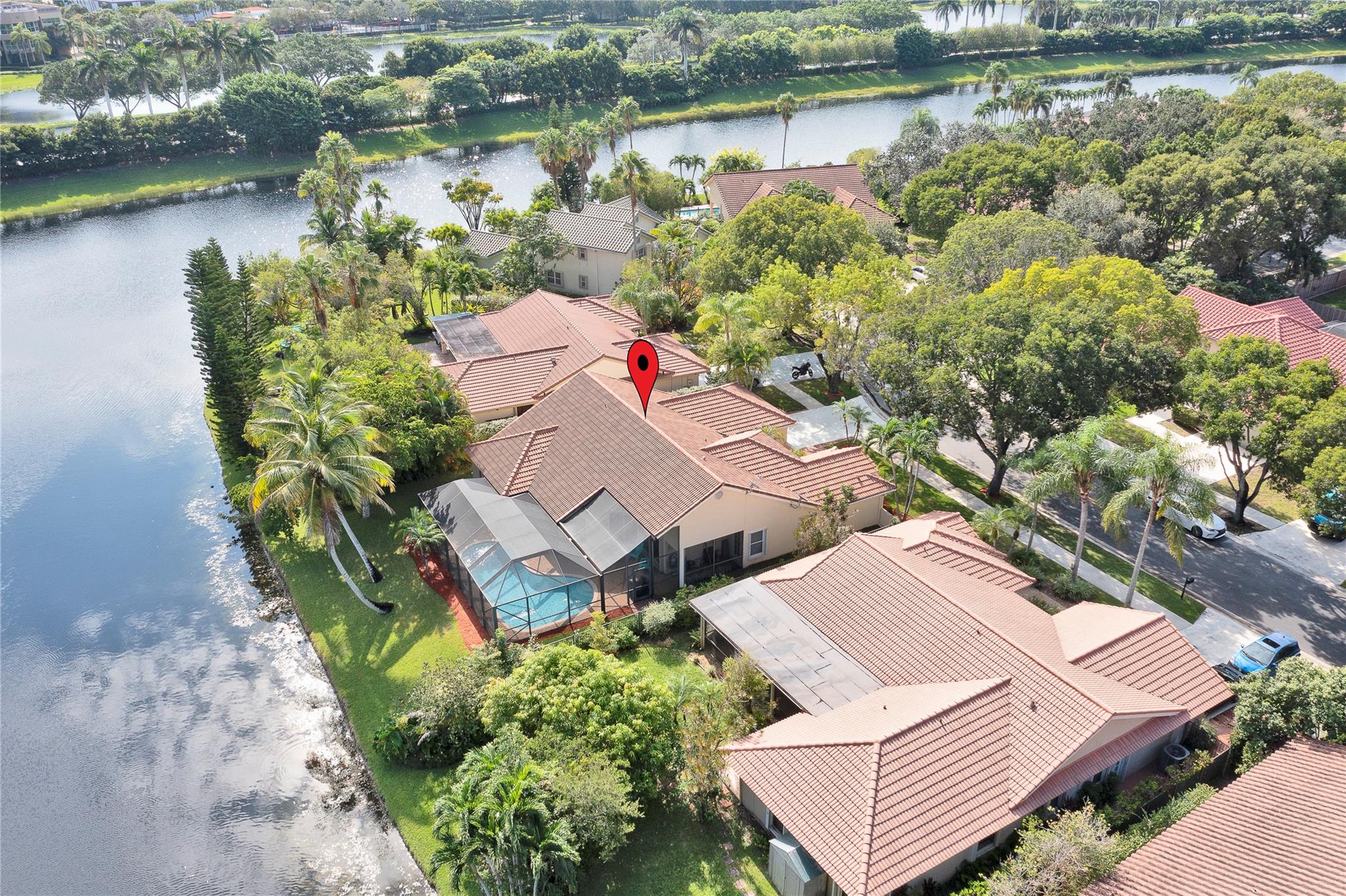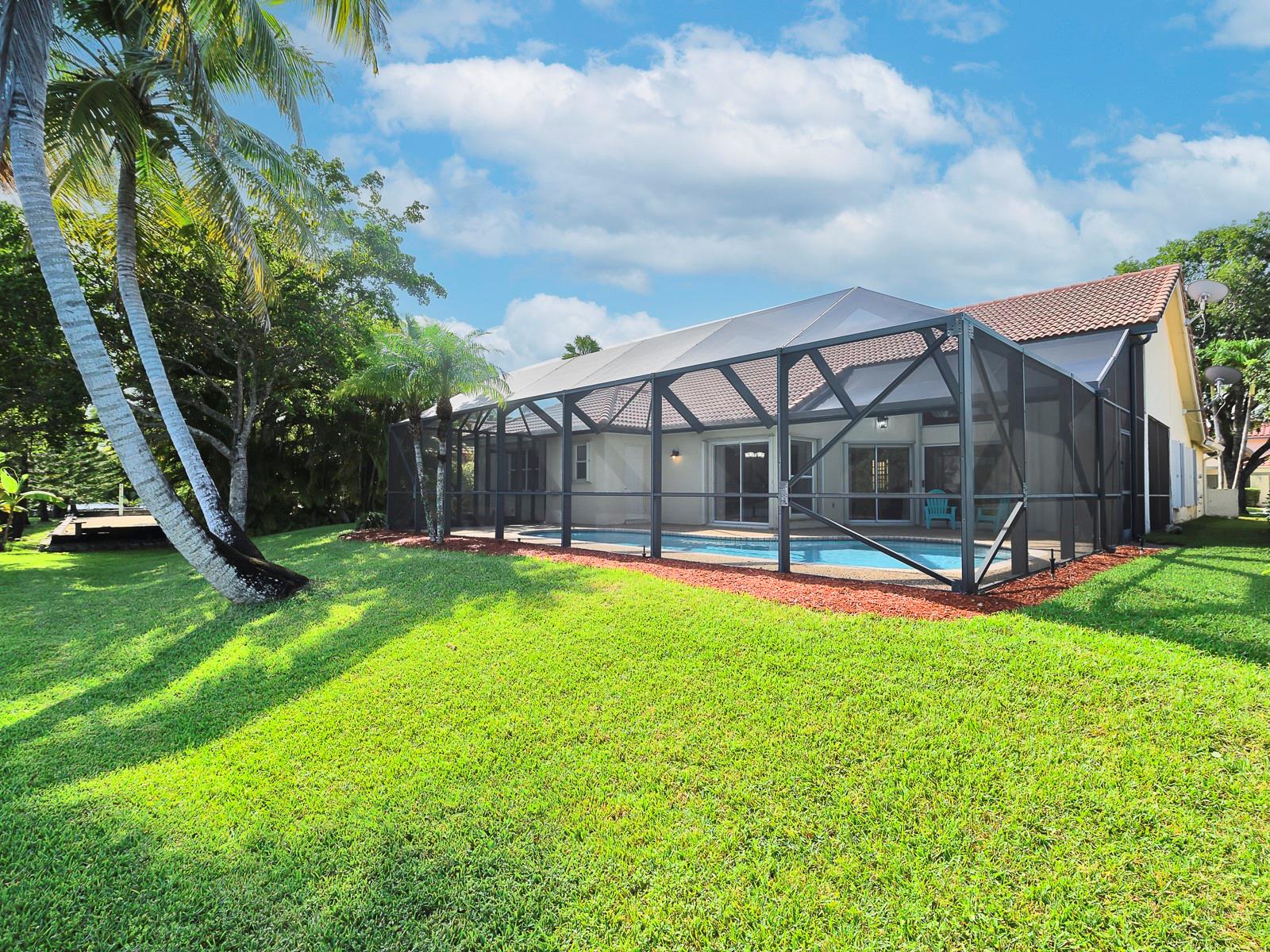 Welcome to this beautiful 4 bedroom 2.5 bathroom home in immaculate condition nestled on a spectacular private lakefront lot. Elegant and bright open layout with gorgeous neutral travertine floors throughout the living area. The formal dining room with French doors can be used as an office/playroom or converted into a 5th bedroom. Tastefully upgraded kitchen with granite countertop and newer stainless steel appliances and a new wine cooler. The spacious primary suite with his and hers walk-in closets. Fully remodeled bathrooms. Many features such as accordion shutters, garage door 2023, pool resurfaced 2023, A/C 2022, pool screen 2022, electrical panel 2021, roof 2007. Pool with Salt System. The screened pool and patio are perfect for your enjoyment and entertainment.