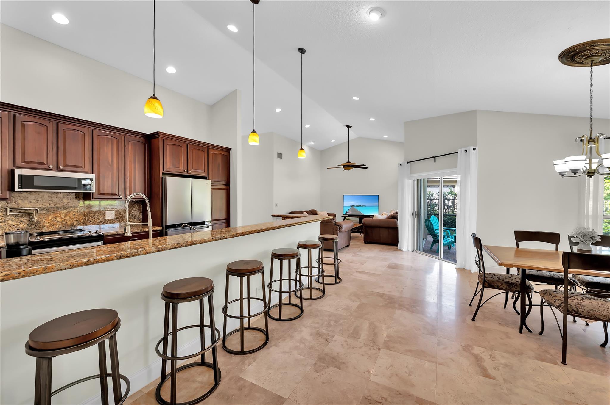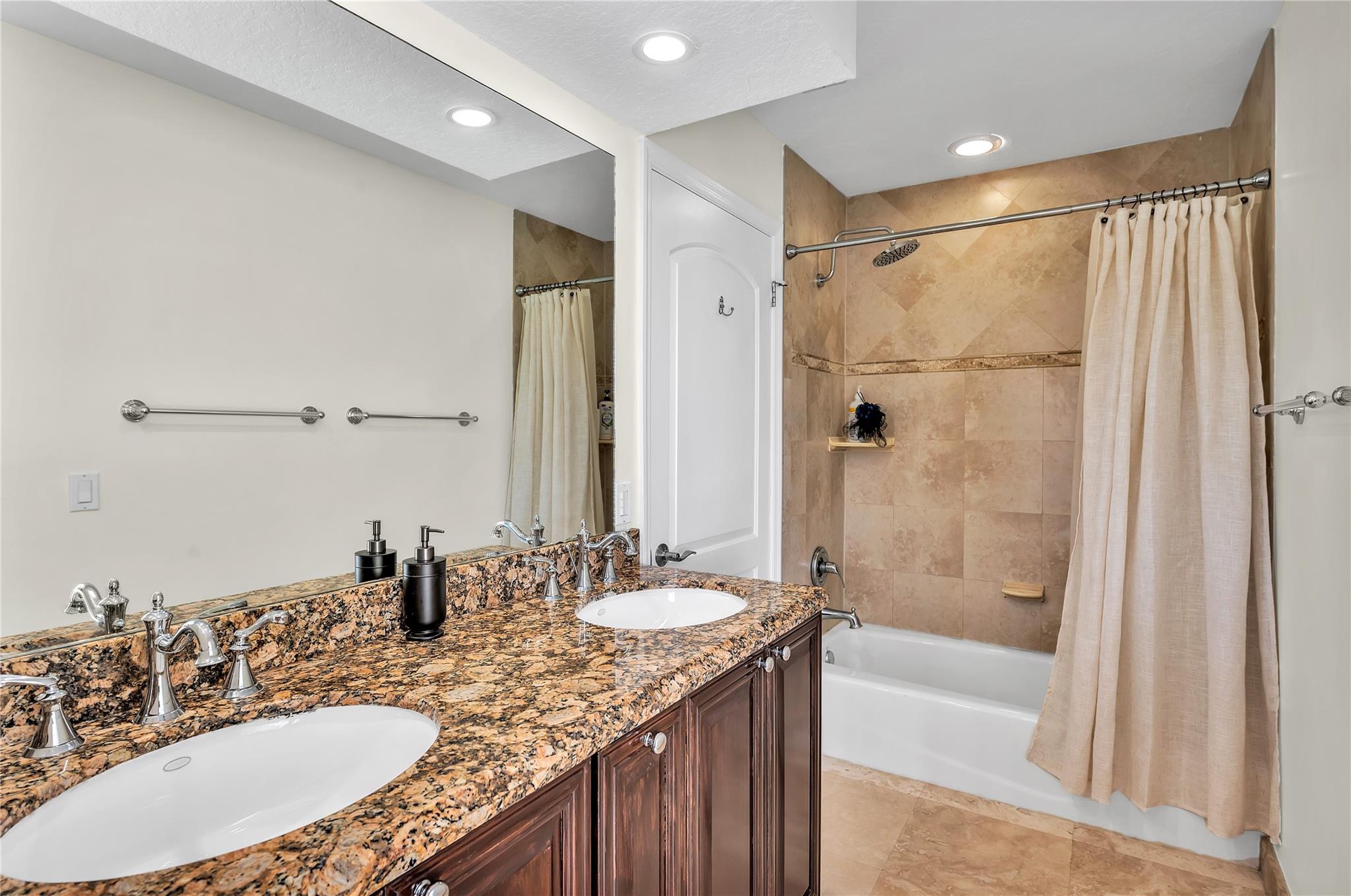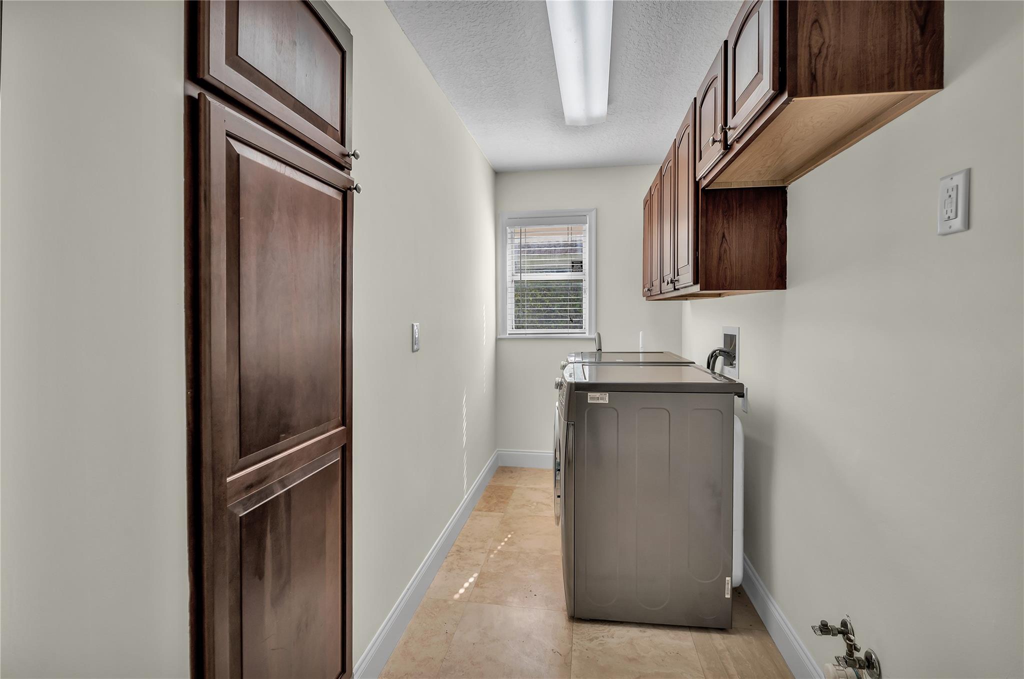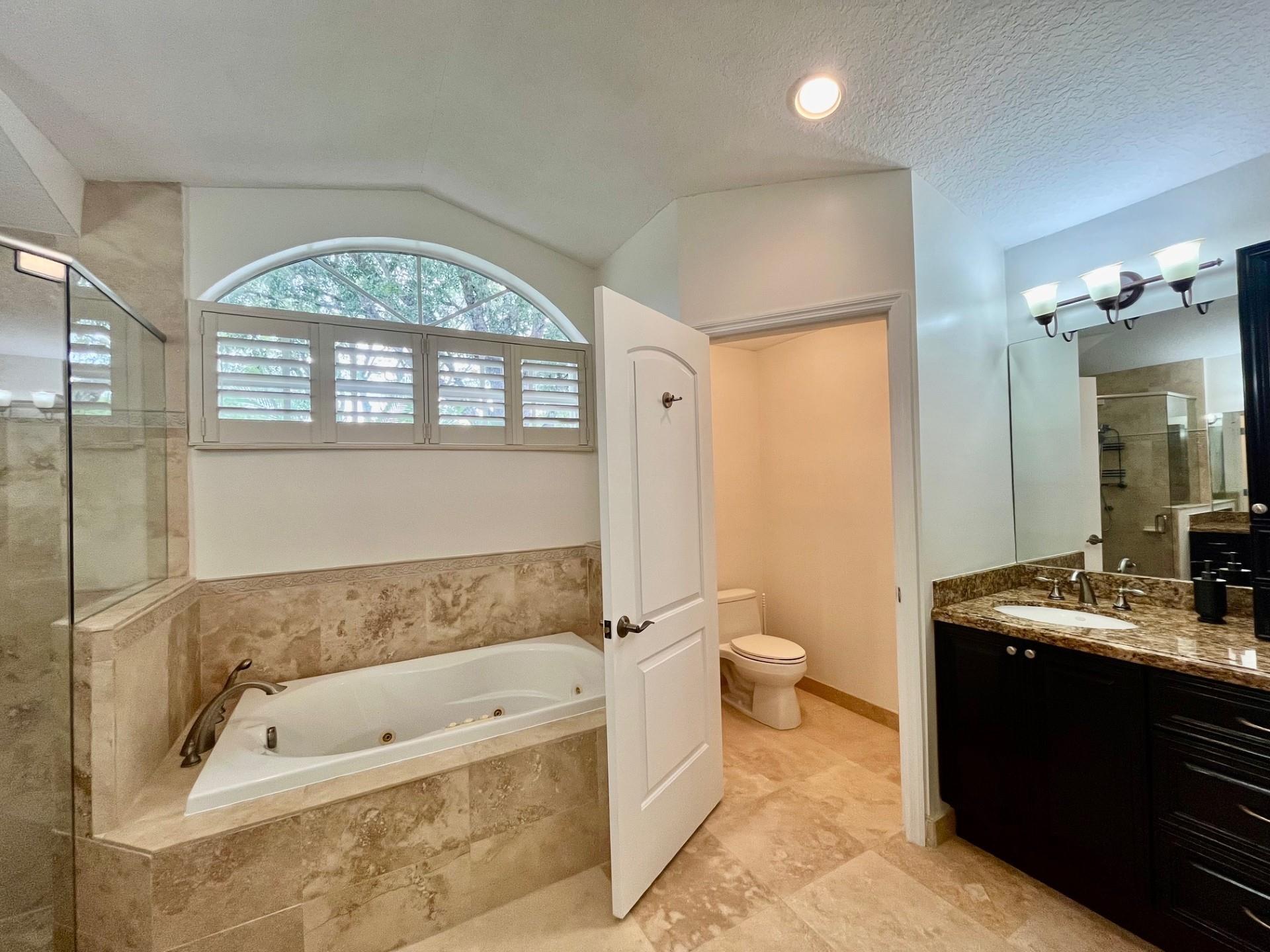 Welcome to this beautiful 4 bedroom 2.5 bathroom home in immaculate condition nestled on a spectacular private lakefront lot. Elegant and bright open layout with gorgeous neutral travertine floors throughout the living area. The formal dining room with French doors can be used as an office/playroom or converted into a 5th bedroom. Tastefully upgraded kitchen with granite countertop and newer stainless steel appliances and a new wine cooler. The spacious primary suite with his and hers walk-in closets. Fully remodeled bathrooms. Many features such as accordion shutters, garage door 2023, pool resurfaced 2023, A/C 2022, pool screen 2022, electrical panel 2021, roof 2007. Pool with Salt System. The screened pool and patio are perfect for your enjoyment and entertainment.
