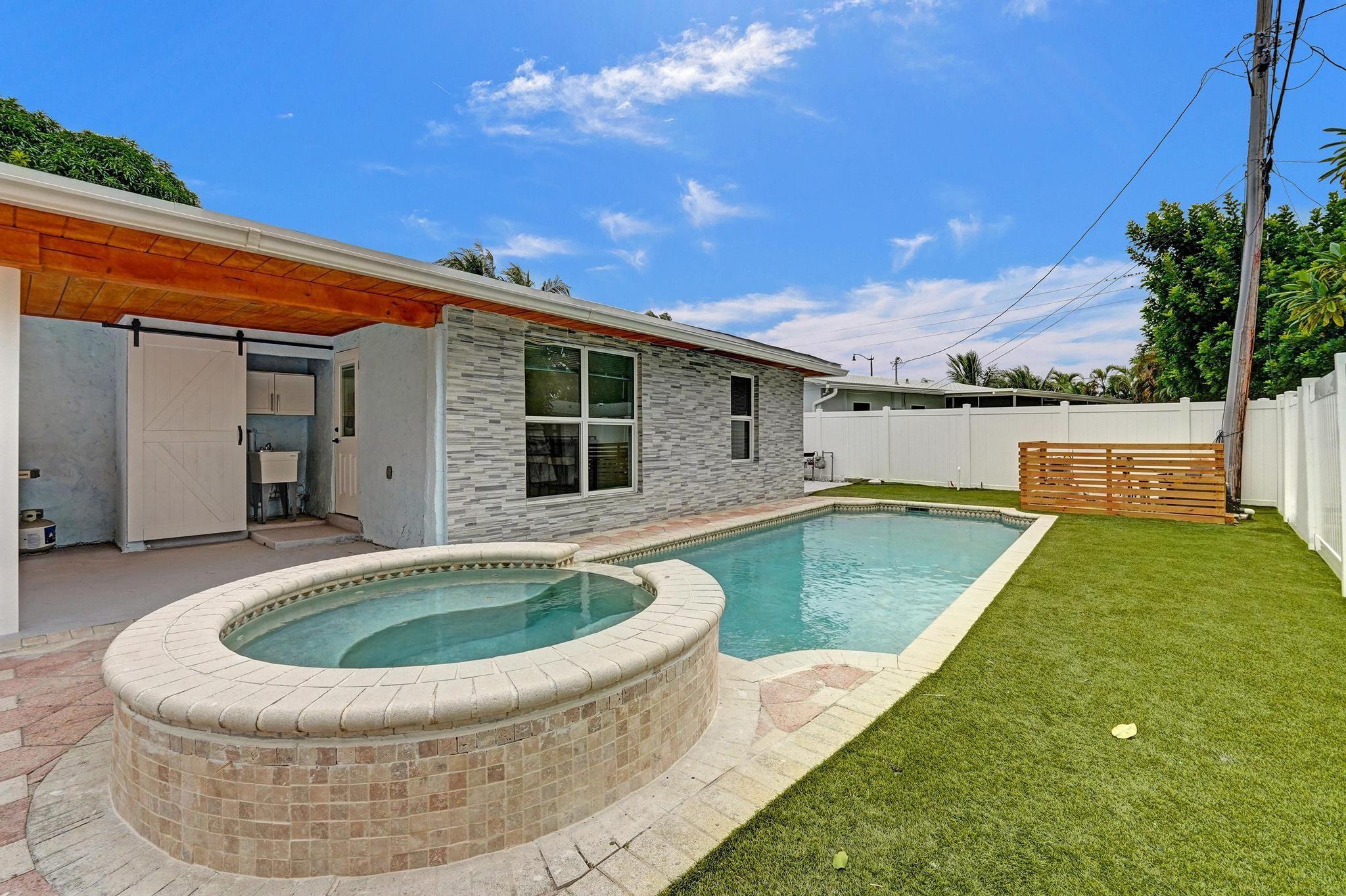 Everything new in this 4 Bed 2 Bath Pool Home! Brand new roof, impact windows & doors, plumbing, electrical, ac, water heater, insulation, the home was taken down to the studs. Large heated pool & built in hot tub. Lots of backyard space. Covered patio. Artificial turf in the yard. Inside offers a very bright space + a great split floor plan. Tile floor throughout. Kitchen features waterfall quartz counter, large pantry, breakfast area + Full dining room. Two beautiful modern bathrooms. Extended width of drive way. Bring your boat, trailer, RV. Mango tree in front yard. Quiet neighborhood located off US1. Close to everything! Easy access to the 95 and only 10 minutes to the beach.
