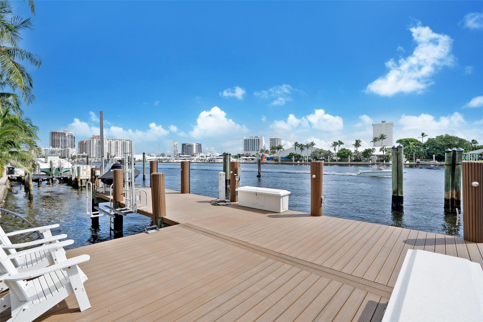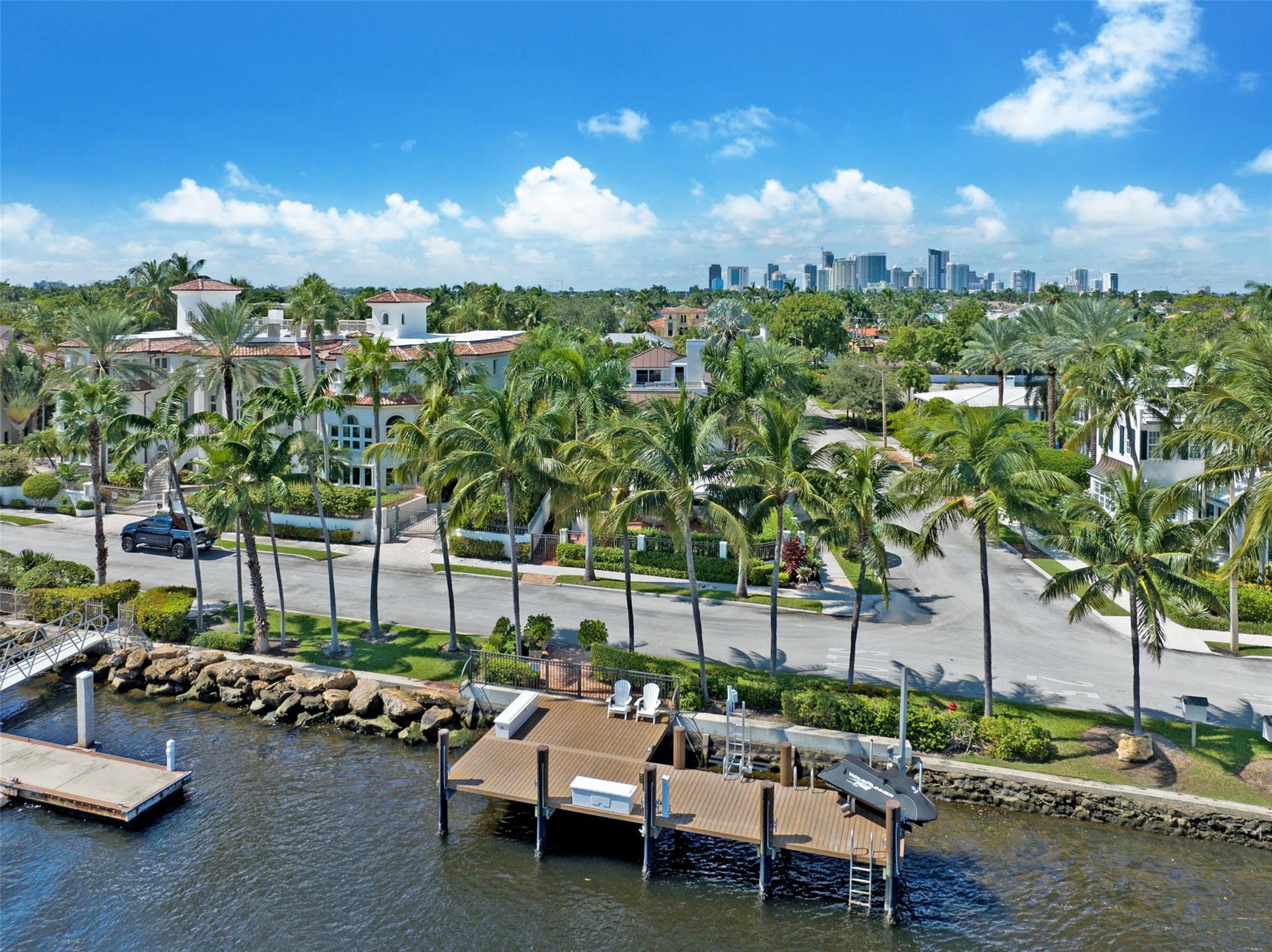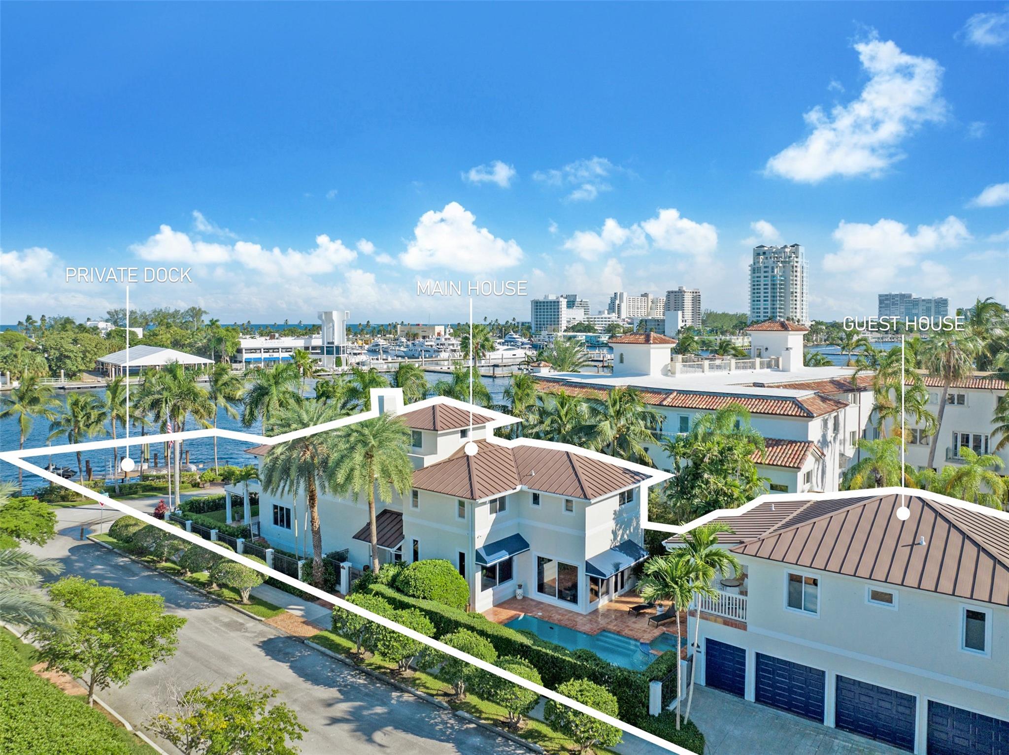 A rare opportunity to live on prestigious Idlewyld Dr. Enjoy unparalleled Intracoastal views and daily endless boat parade from this contemporary 2-story + 3rd floor sky lounge & rooftop deck residence. Boasting high ceilings, open floor plan seamlessly connecting the living room, dining room, breakfast nook & gourmet kitchen with oversized island and top-of-the-line appliances. Additional: media room, bar area, office and sunroom. The primary features 2 walk-in closets, spa-like bathroom. Outdoor: waterfront patio with summer kitchen, heated pool and spa. New deep-water dock in a NO-WAKE ZONE, with easy ocean access and no fixed bridges. Generator. Detached 2beds, 2baths Guest House with full kitchen, living room and laundry. Secure Location. Steps away from dining and sandy beaches.