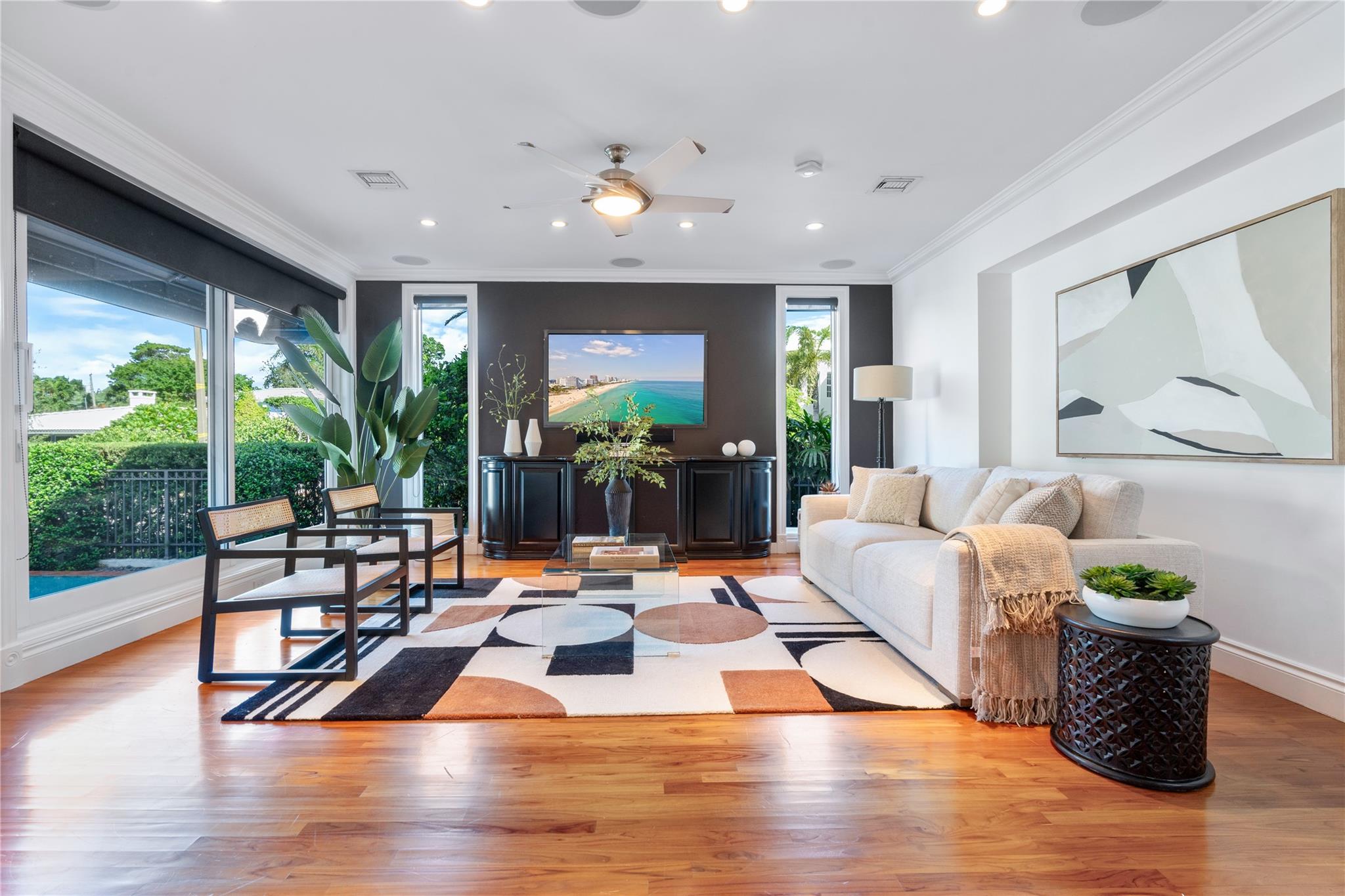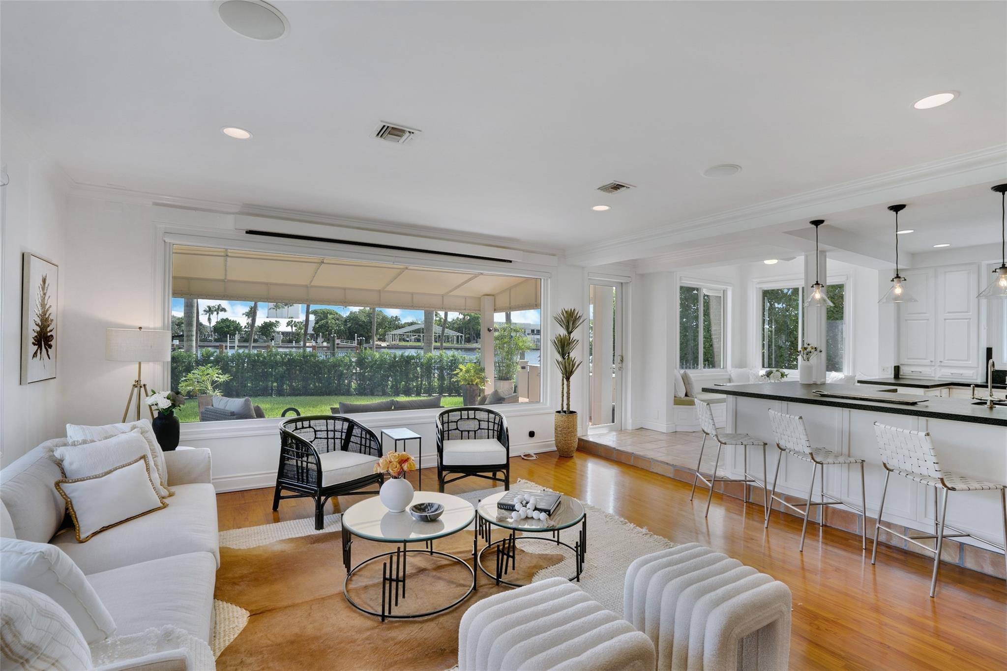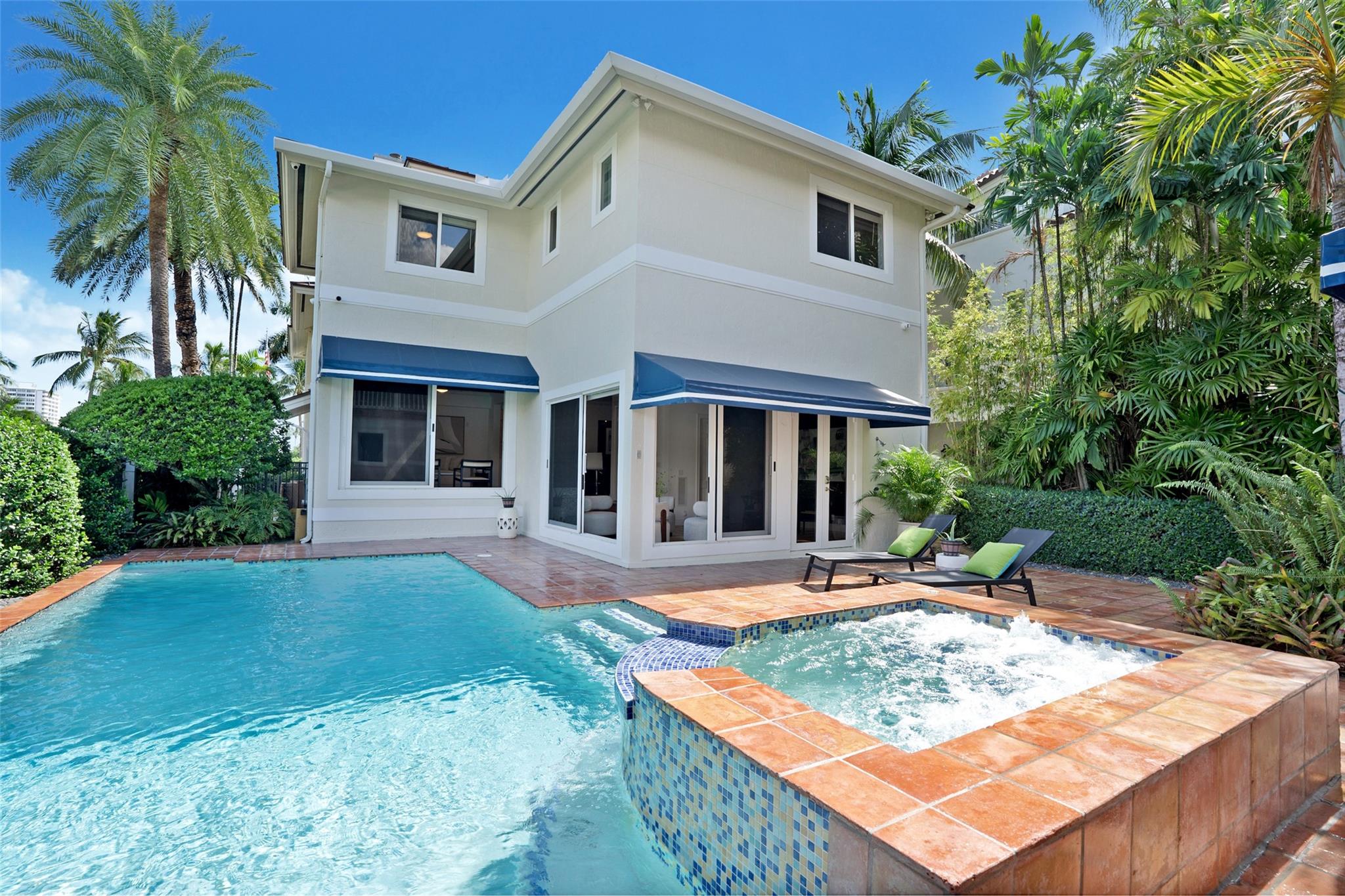 A rare opportunity to live on prestigious Idlewyld Dr. Enjoy unparalleled Intracoastal views and daily endless boat parade from this contemporary 2-story + 3rd floor sky lounge & rooftop deck residence. Boasting high ceilings, open floor plan seamlessly connecting the living room, dining room, breakfast nook & gourmet kitchen with oversized island and top-of-the-line appliances. Additional: media room, bar area, office and sunroom. The primary features 2 walk-in closets, spa-like bathroom. Outdoor: waterfront patio with summer kitchen, heated pool and spa. New deep-water dock in a NO-WAKE ZONE, with easy ocean access and no fixed bridges. Generator. Detached 2beds, 2baths Guest House with full kitchen, living room and laundry. Secure Location. Steps away from dining and sandy beaches.