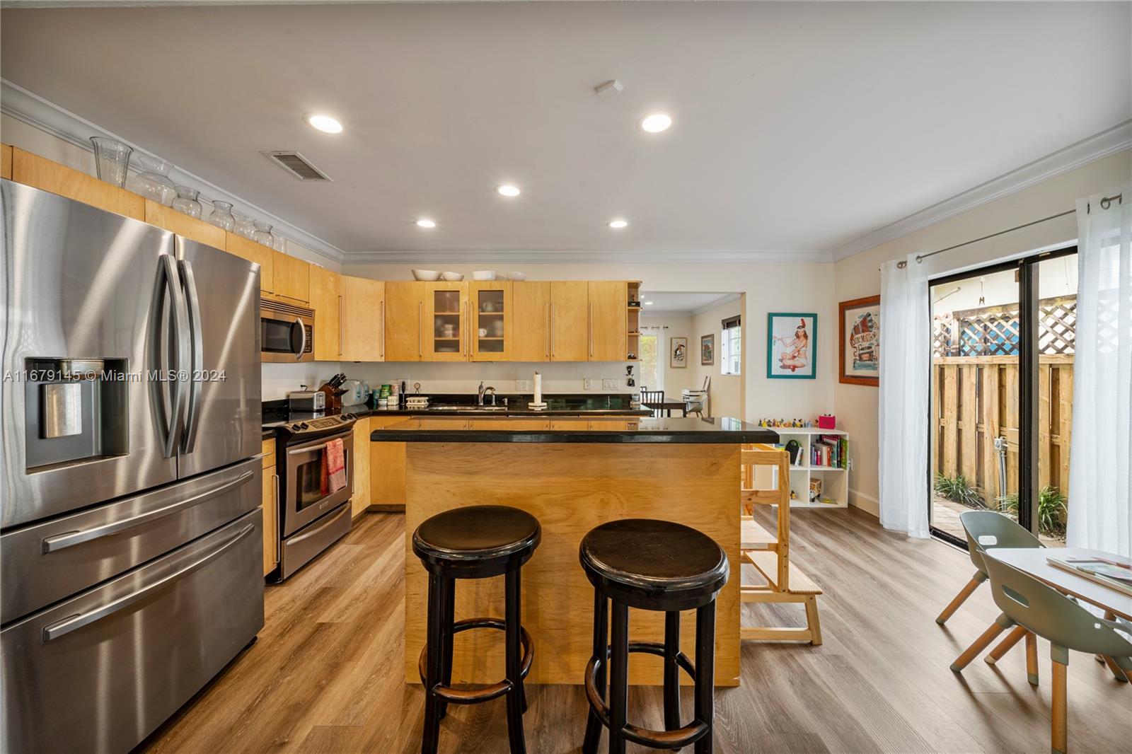 What a find!! One level, three bedroom, two bath villa with an amazing backyard!! Lots of natural light. from all four directions. Open kitchen. Spacious bedrooms. Updated bathrooms. Three walk in closets. Large laundry room with extra storage. New A/C, newer appliances. Located on a quiet, low traffic street. Not in a flood zone! Private front courtyard. Walking distance to Downtown Coconut Grove, multiple grocery stores, dog and children parks, public transportation. Coconut Grove Elementary School District. Private back yard is larger in size than the size of some single family homes in the area. Off street parking for 3 cars. Additional parking in the front. Great place to call home