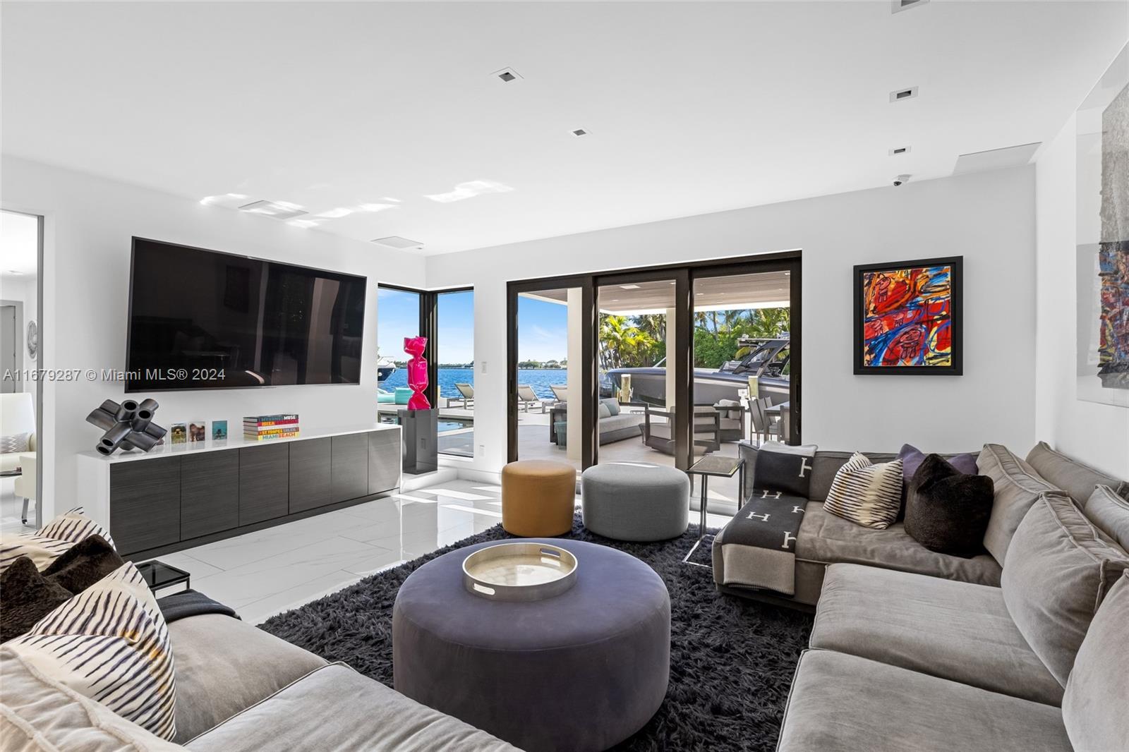Discover modern luxury living at its finest in this newly reimagined 6-bedroom, 6.5-bathroom home. Boasting 5,750SF of meticulously designed space, this guard gated residence offers an open floor plan bathed in natural light through floor-to-ceiling windows. The European kitchen, equipped with top-of-the-line Sub-Zero & Wolf appliances, is a culinary enthusiast's dream. Entertain effortlessly w/a sleek bar featuring temperature-controlled wine storage that flows seamlessly to the outdoor pool area. The primary suite features a boutique style walk-in closet & breathtaking bay views. With 75FT of water frontage, you're just minutes from ocean access. Enjoy the convenience of nearby world-class shopping, and fine dining. Crestron-powered, this smart home defines sophisticated coastal living.