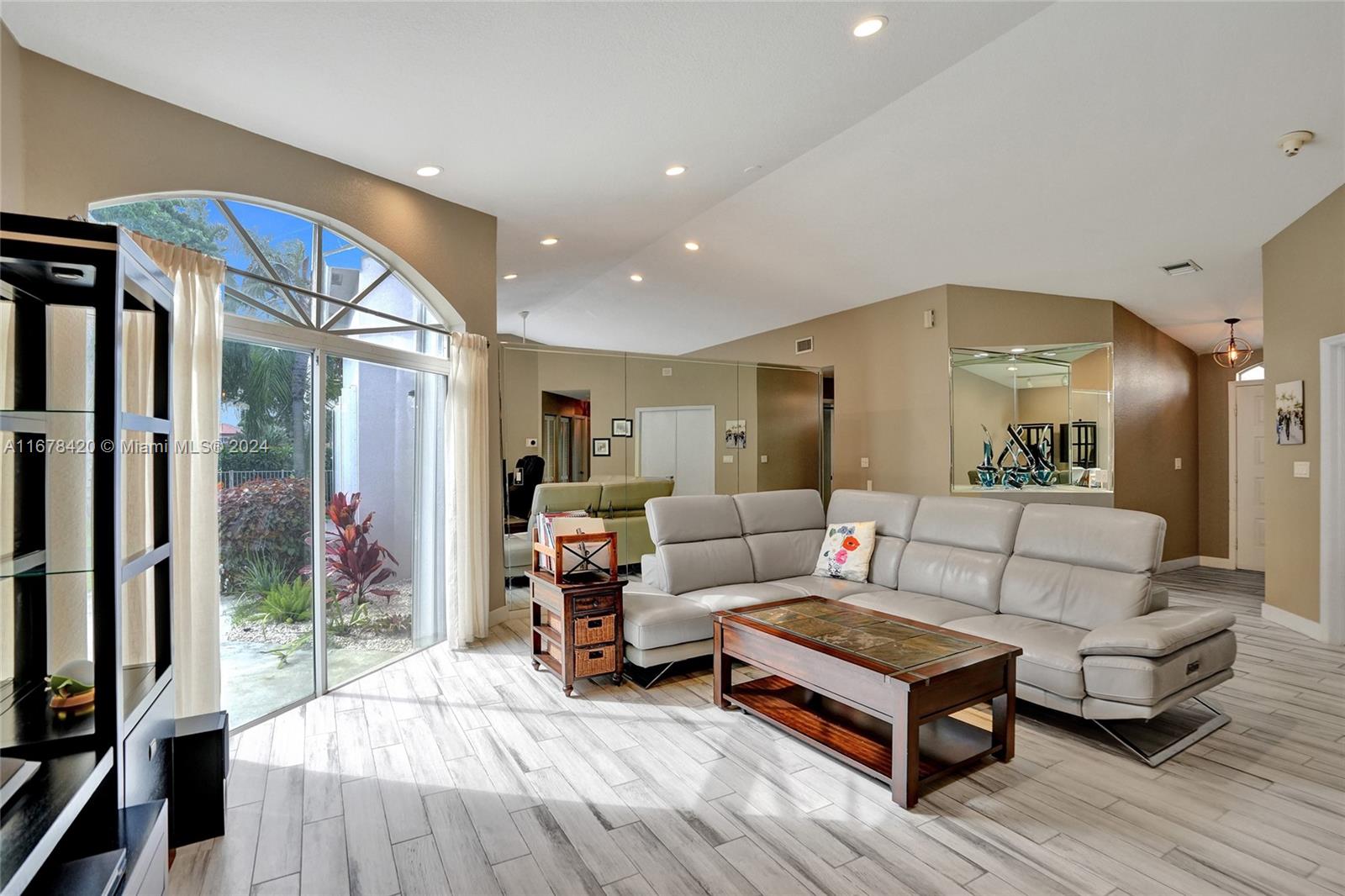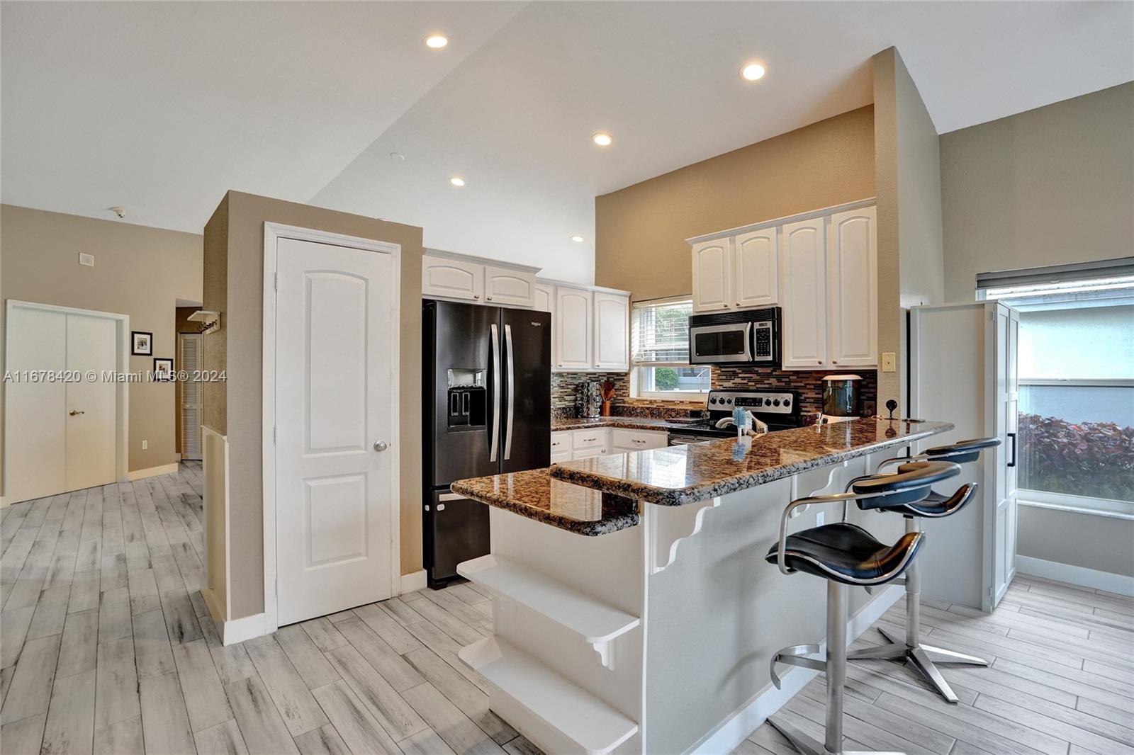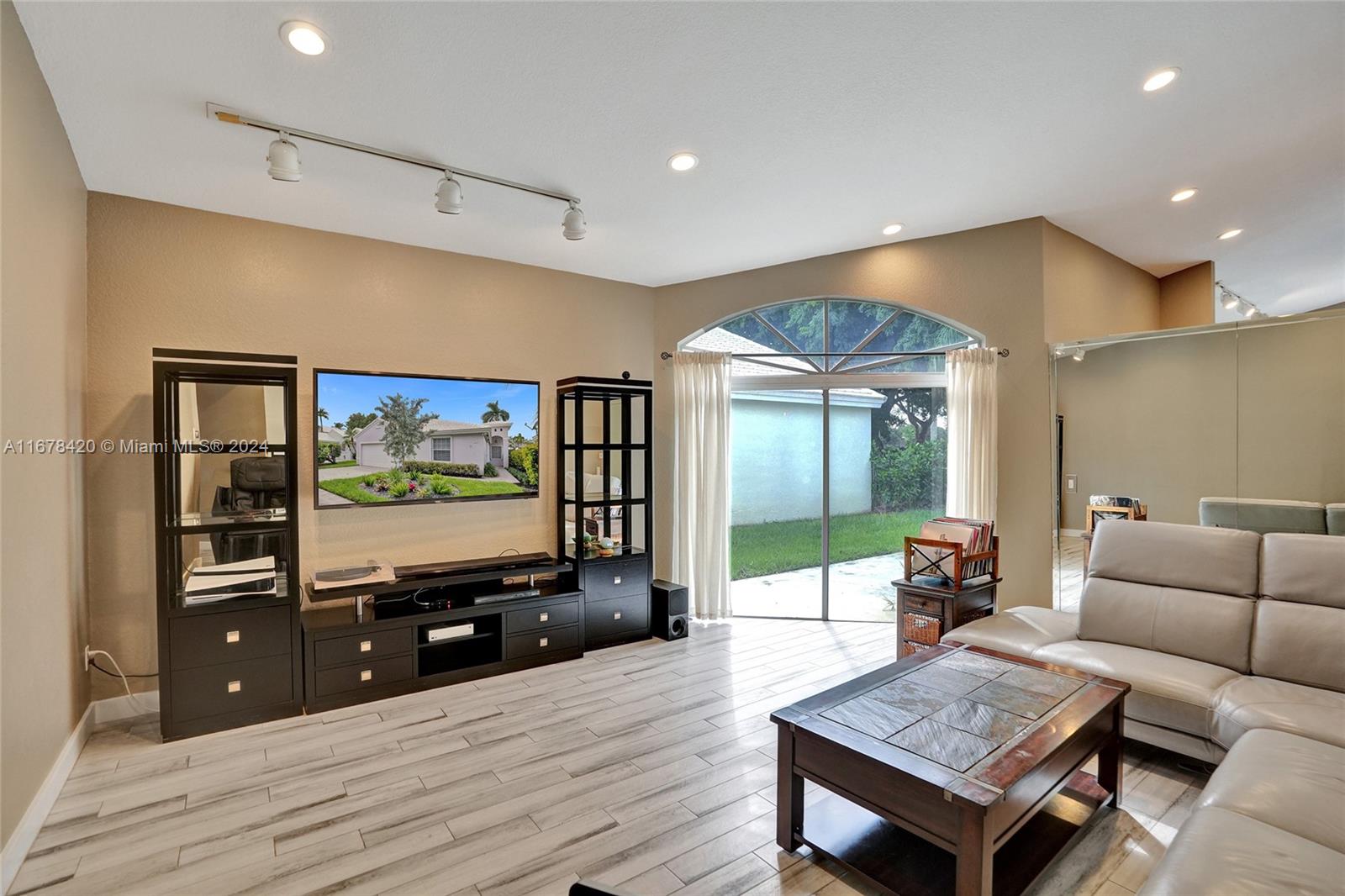 Discover this stunning single-story home in the prestigious Grand Palms, a 24/7 gated community. This impeccably maintained residence boasts a bright, open floor plan with vaulted ceilings, recessed lighting, and oversized windows that flood the space with natural light. Enjoy tile flooring throughout and a modern kitchen with sleek stainless steel appliances and granite countertops. The spacious primary suite features a walk-in closet and an ensuite with dual sinks, a soaking tub, and a separate shower. Step outside to a fenced backyard perfect for outdoor living. Additional perks include a 2-car garage, hurricane accordion shutters, and HOA coverage for lawn care, cable, ADT security, and more. Conveniently located near shopping, dining & I-75. A must-see!