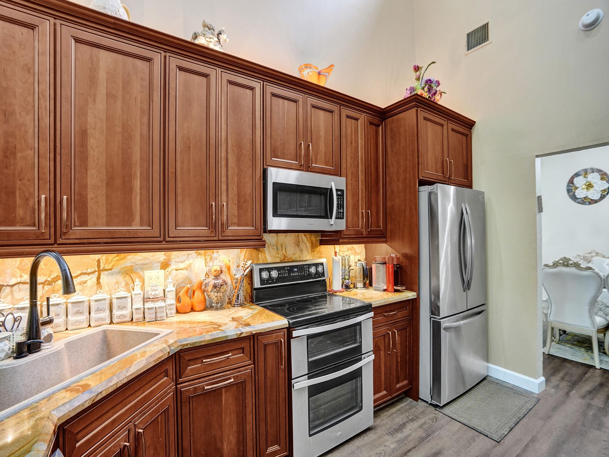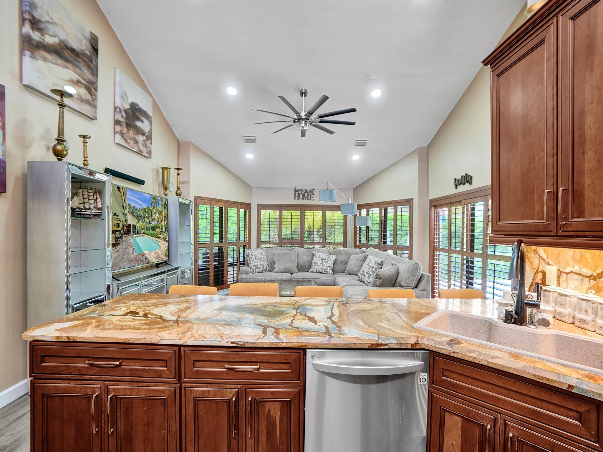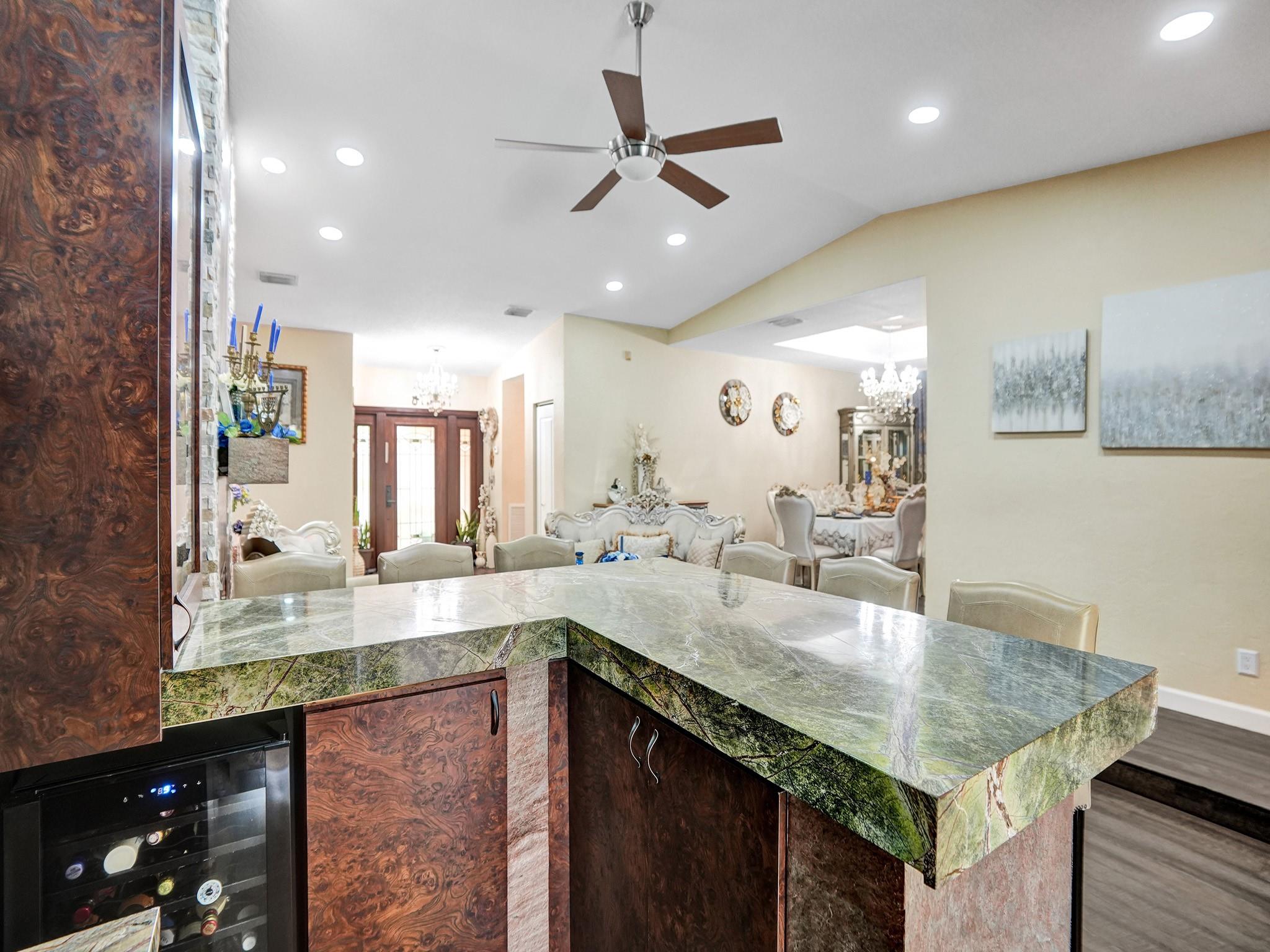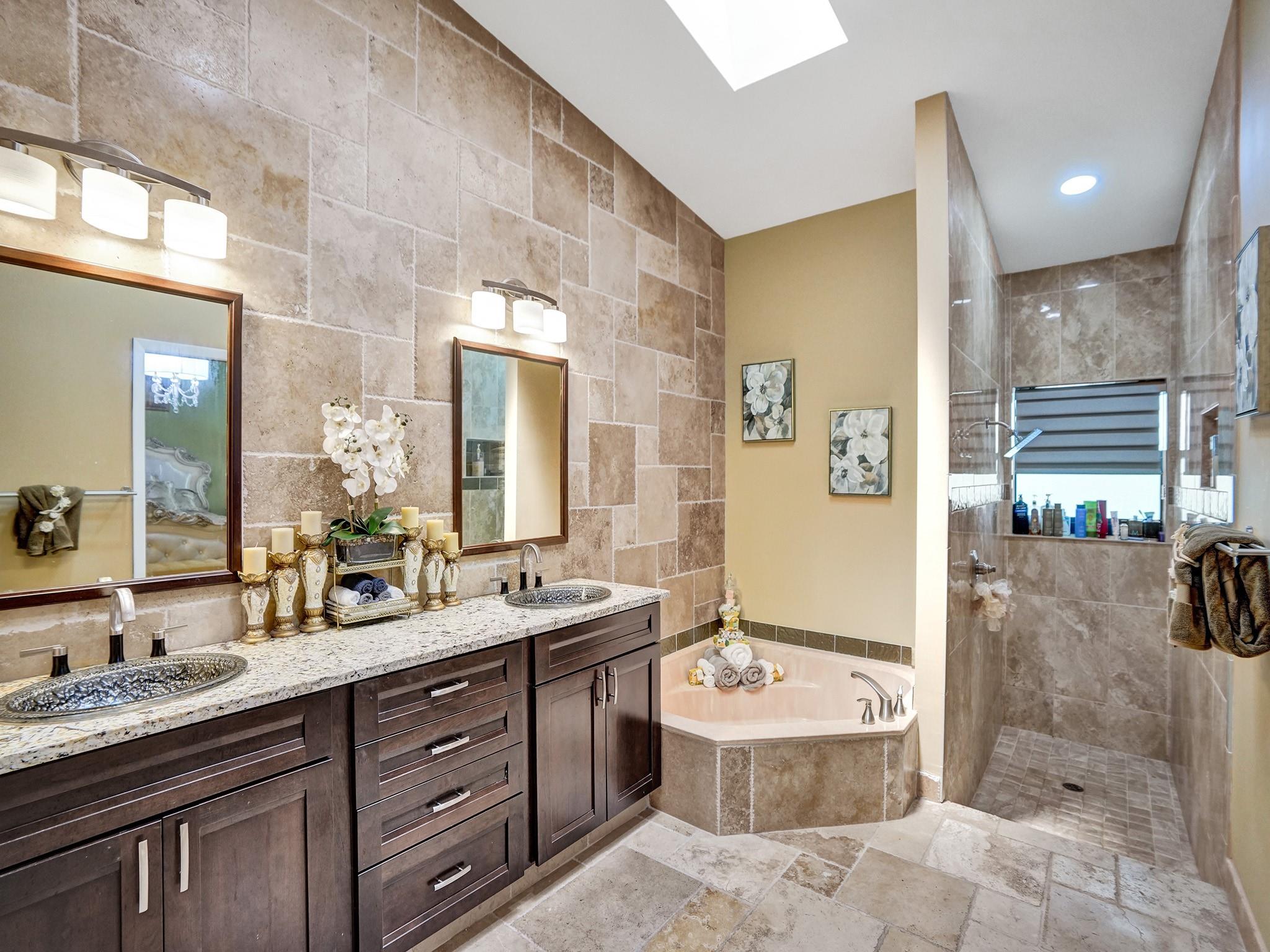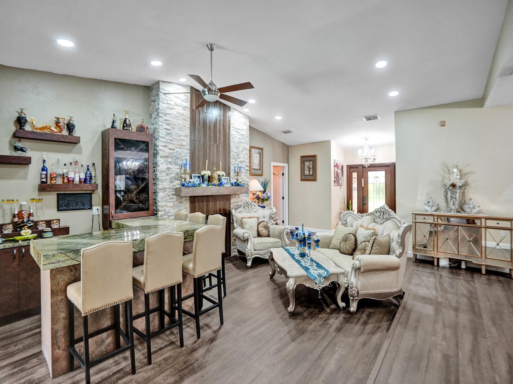 Nestled in the prestigious Pine Ridge,this luxurious 4-bedroom,2 full bathroom,2 half bathroom residence situated on a sprawling corner lot epitomizes modern elegance and sophistication. Step outside to your private paradise,featuring a sparkling saltwater pool,outdoor fire pit,and spacious sitting area perfect for hosting pool parties or enjoying quiet evenings under the stars. The heart of the home is the chef's kitchen,complete with a large island,granite countertops,custom cabinetry,and top-of-the-line appliances. Enjoy cocktails at the stylish wet bar,conveniently located for entertaining guests. Escape to the expansive master suite,complete with a sitting area,walk-in closet,and a luxurious master bathroom featuring a skylight,dual vanity,soaking tub,and separate shower