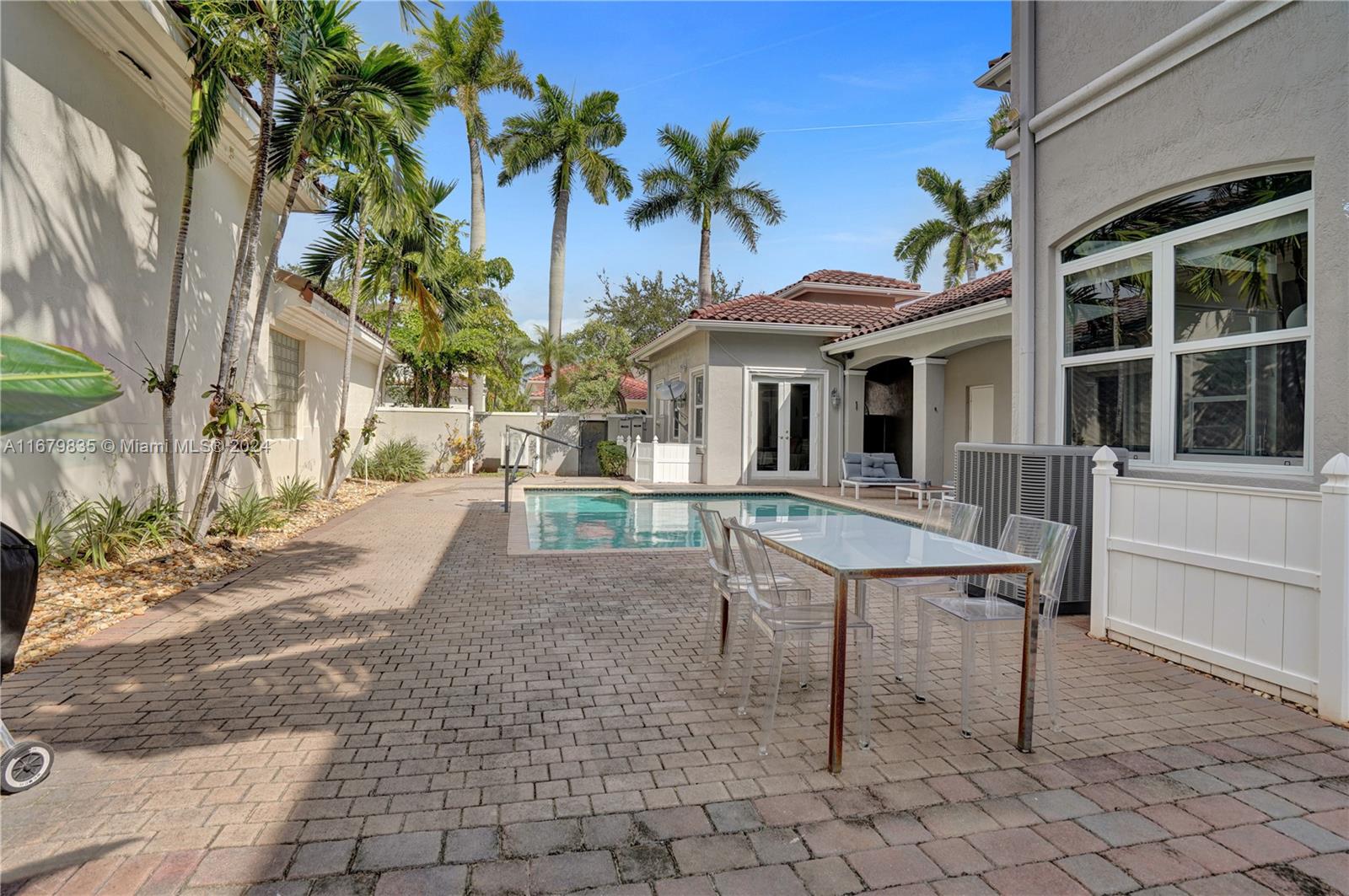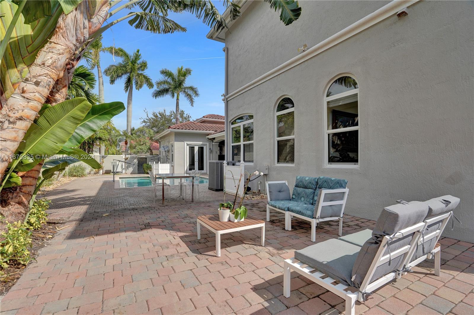 Located on a quiet tree lined street in the prestigious gated community of Harbor Islands. 4-bedroom courtyard home with a separate 1-bedroom guess house. All the rooms are large and filled with light. This home has an elevator in the main house, impact windows and a full house generator. The extra spacious patio includes a heated pool, and a large play area. All landscaping is maintained by the association so you can enjoy the amenities like the on-site health spa, full-service marina, lighted pickleball & tennis courts or take a walk in the community’s 20-acre park. Harbor Islands is a gated community with 24-hour security.