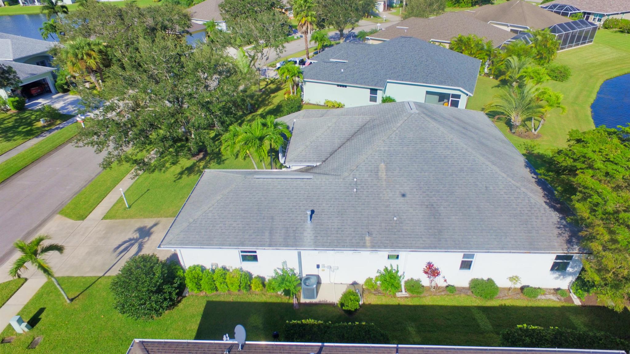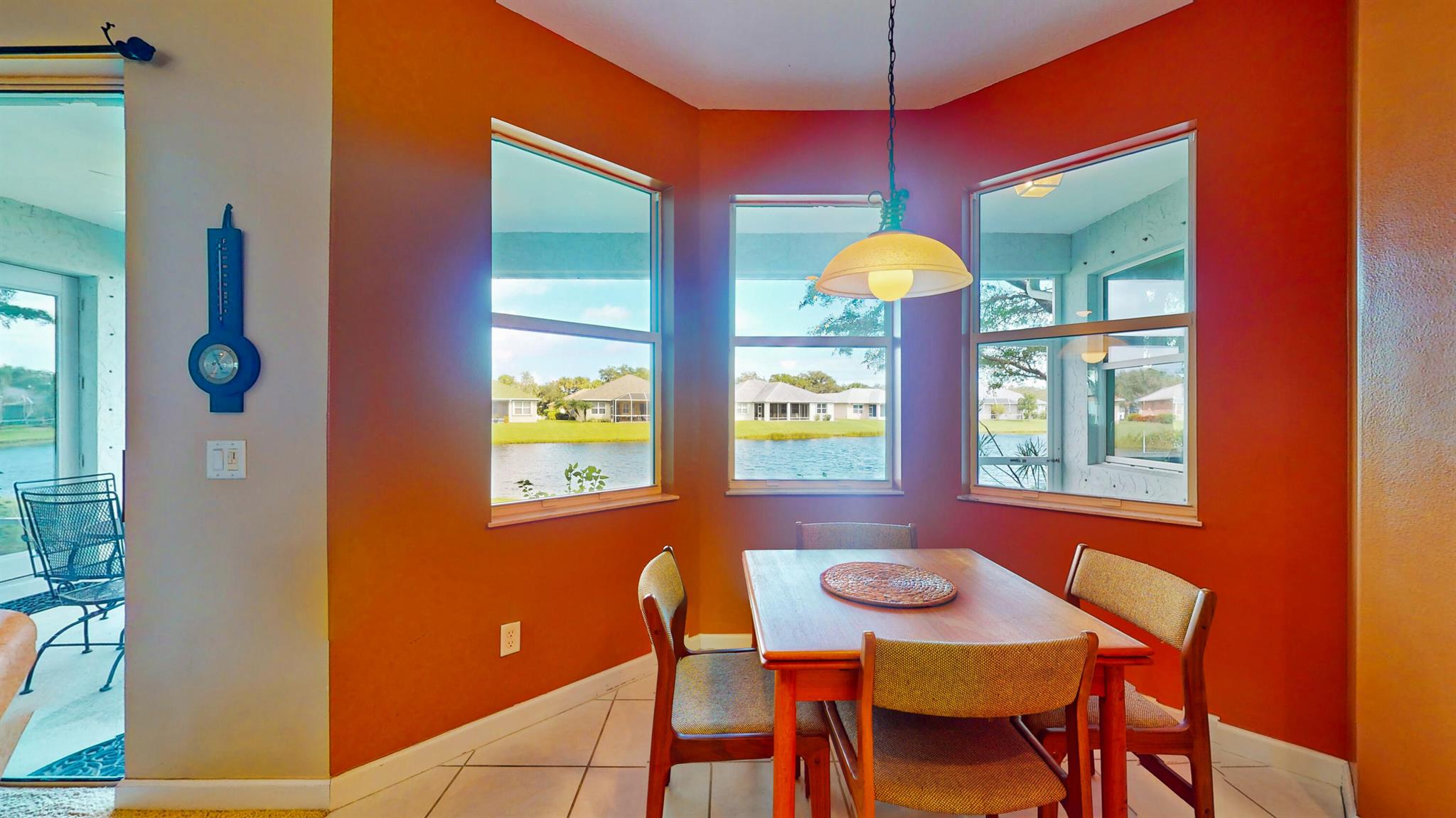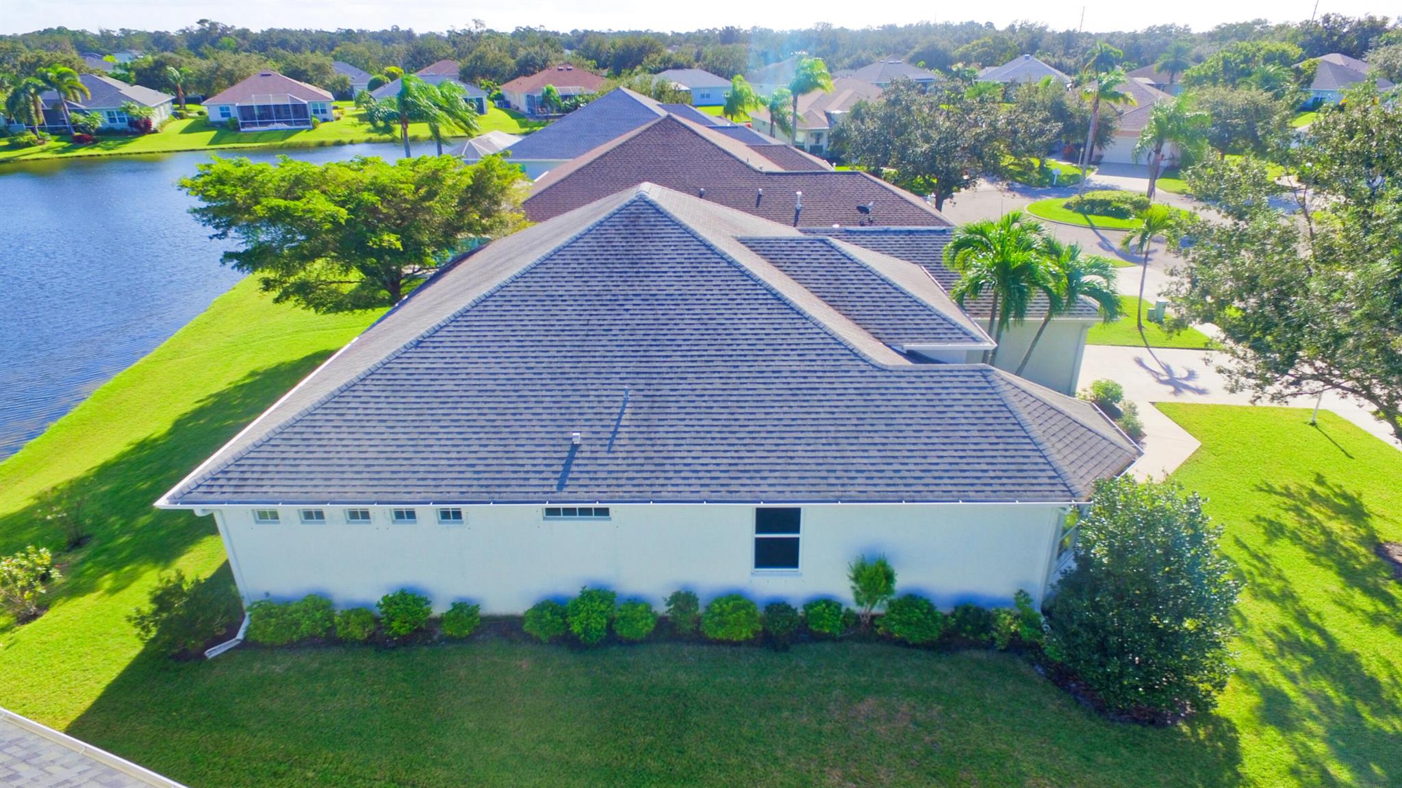 Lakefront 3 bedroom 2 bath home boasts natural gas piped to house, split floor plan with den, laundry room, eat-in kitchen and dining room. Screened lanai with panoramic lake view. Automatic irrigation system, hurricane shutters. Nice gated community with clubhouse, pool, hot tub, tennis, pickleball and basket ball court. Close to shopping and beaches. Located in a low-risk flood zone (insurance not required by lenders). Low HOA fees. Very well-maintained community.Close