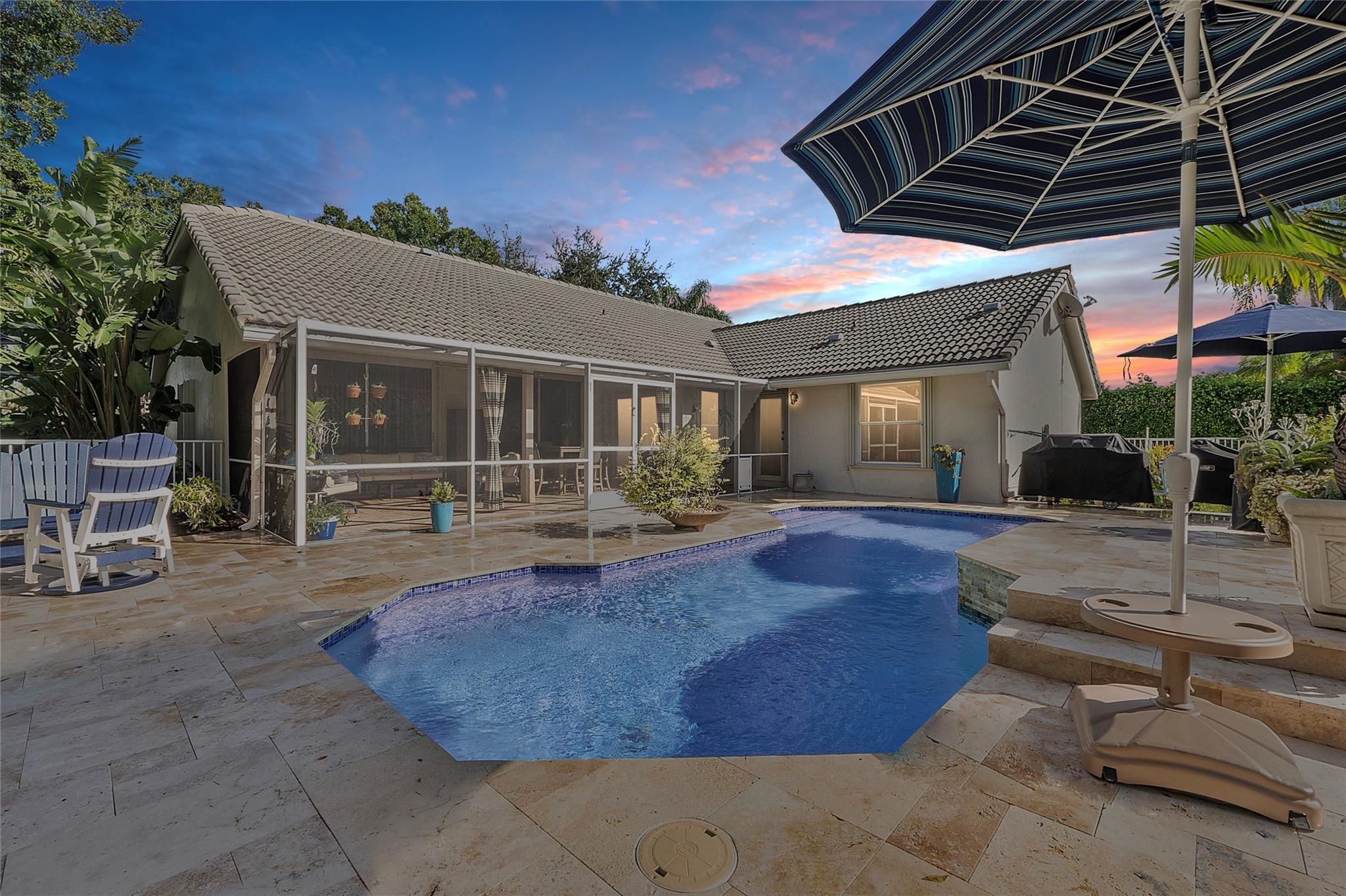 Welcome to your dream oasis! This stunning 4-bedroom, 2-bathroom home sits on a desirable corner lot, offering both privacy and plenty of outdoor space. Enjoy peace of mind with hurricane protection throughout the property. Step inside to discover an updated kitchen and cozy breakfast area, perfect for family gatherings. The newly updated cabana bathroom adds convenience for poolside relaxation. Outside, a covered screened patio opens up to a beautiful fenced yard and inviting pool, complete with a relaxing waterfall feature. This home is ideal for entertaining and enjoying Florida's sunny weather. Don’t miss out on this exceptional property that combines comfort, style, and outdoor luxury!