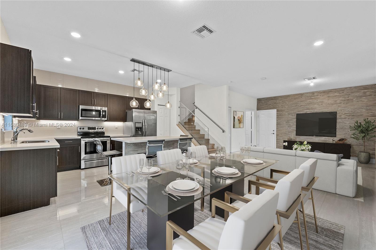 Welcome to your dream home! This beautifully designed 3-bedroom, 2.5-bathroom corner townhouse boasts a versatile den that can easily be converted into a fourth bedroom. With a spacious 2-car garage. Step inside to discover elegant real wood floors that flow throughout the upstairs, while the downstairs features stylish tile flooring. Kitchen featuring sleek quartz countertops, stainless steel appliances, and a tasteful tile backsplash. Experience the comfort of modern living with a Nest thermostat, an osmosis filtration system for pristine drinking water, and an energy-efficient tankless water heater. This home is also prepped for a smart home setup, allowing you to customize your living experience. Centrally located close to shopping, Hardrock and close to the highway.
