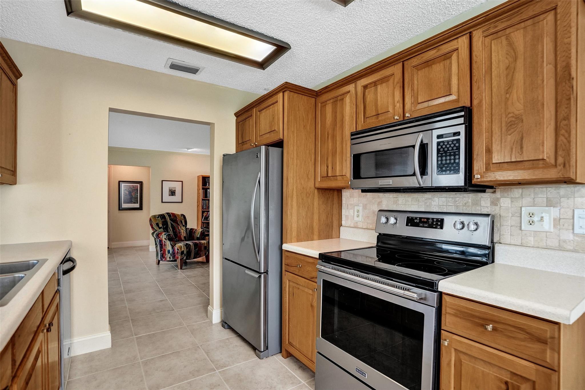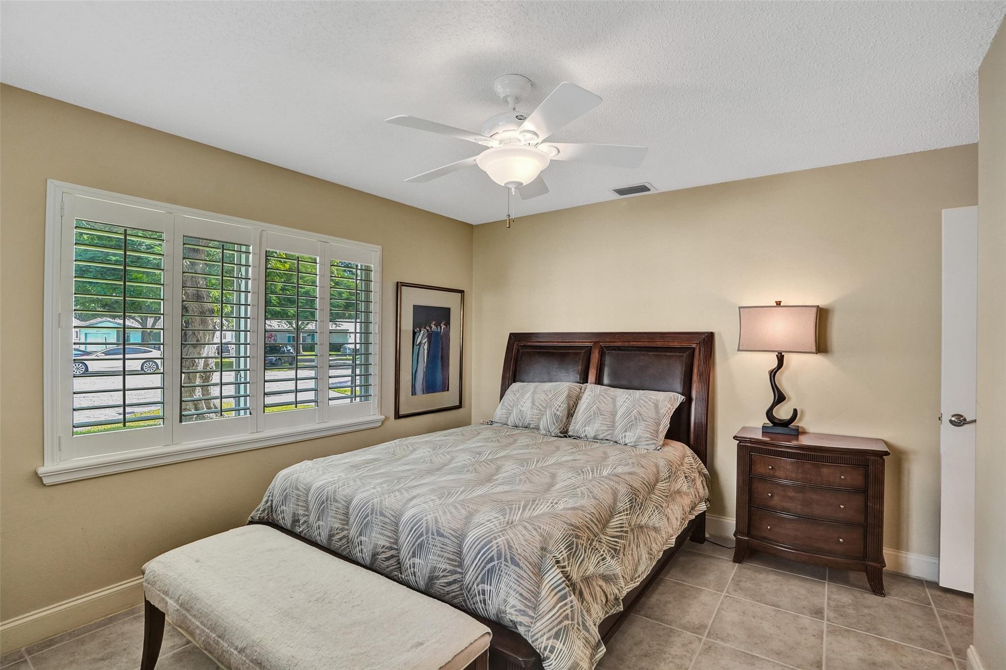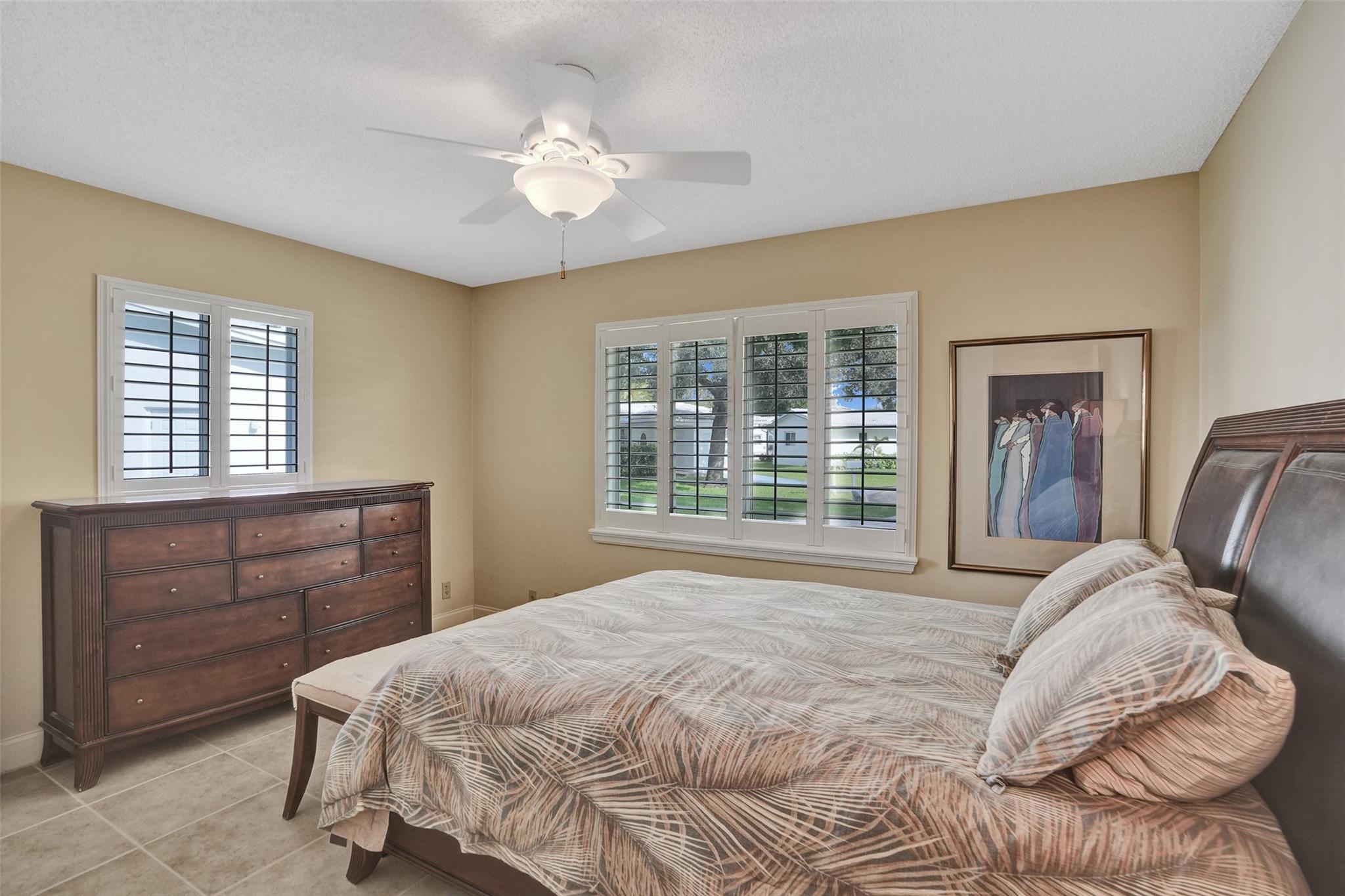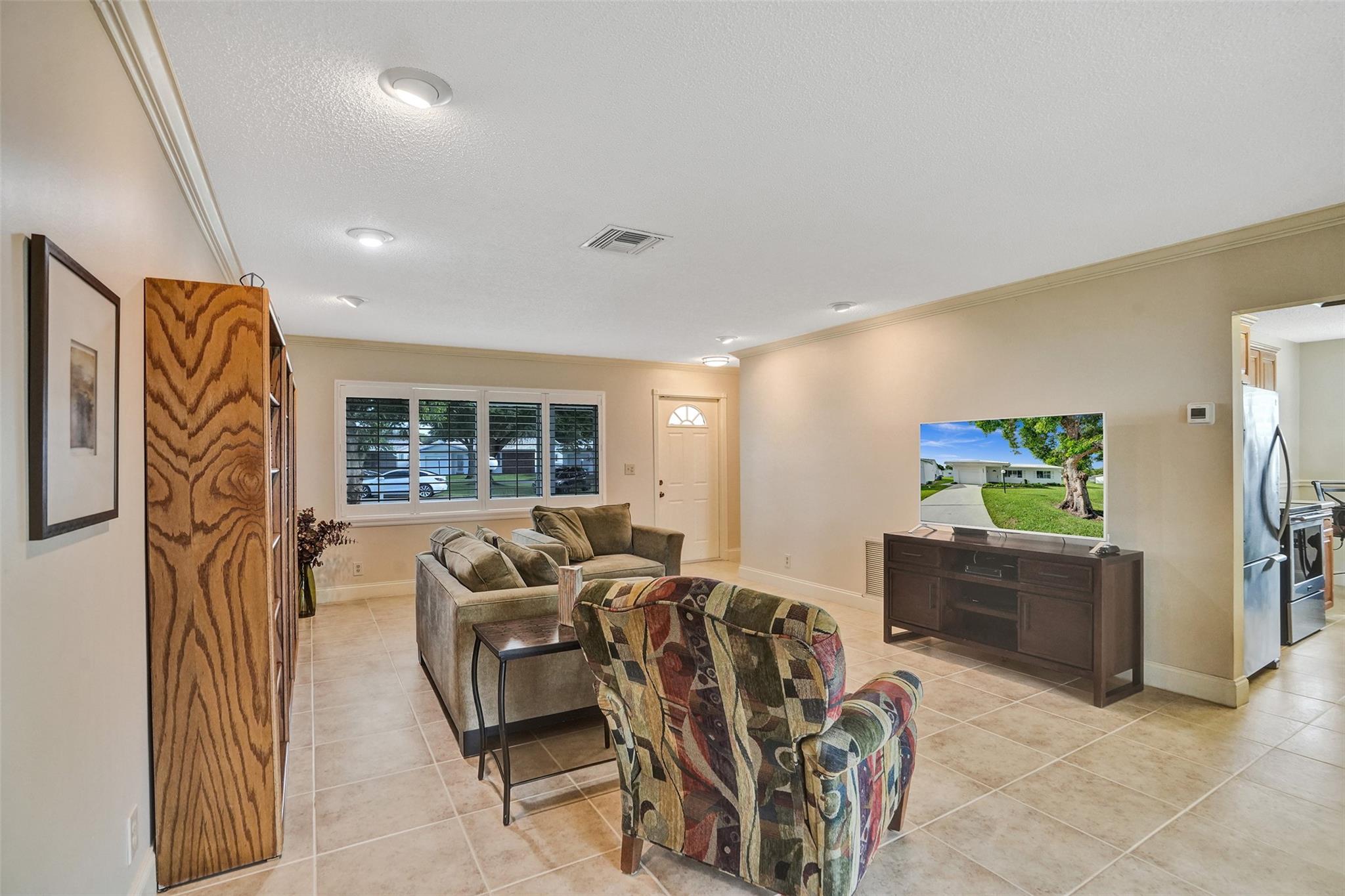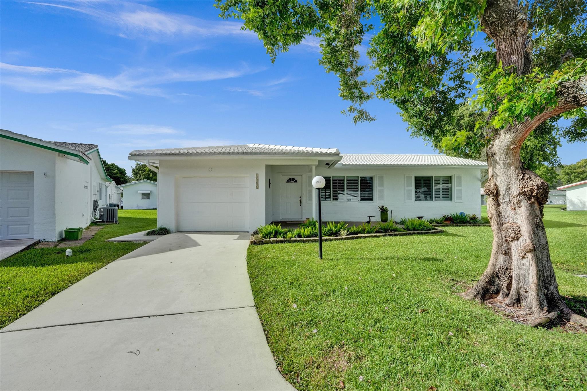 **VIEW 3D VIDEO***VA APPROVED**This beauty is a 2 bedroom, 2 bath home w/a one car garage on a cul-de-sac, along w/a very spacious dining room & family room. Great home to downsize & retire in! Beautifully maintained home w/tile flooring throughout, Plantation Shutters on all impact windows, & and crown molding in the living room. The kitchen has SS appliances, oak cabinets, stone backsplash, and a breakfast nook. Both bathrooms also have oak cabinets. The roof and W/H were replaced in 2023, and the A/C was replaced in 2019. The home has impact windows throughout and shutters for the front door and the garage door. New Circuit Breaker panel in 2024. Assoc requires 20% down & a 720 credit score (1 person only) . Assoc covers roof, internet, courtesy bus, lawn serv, and so much more.