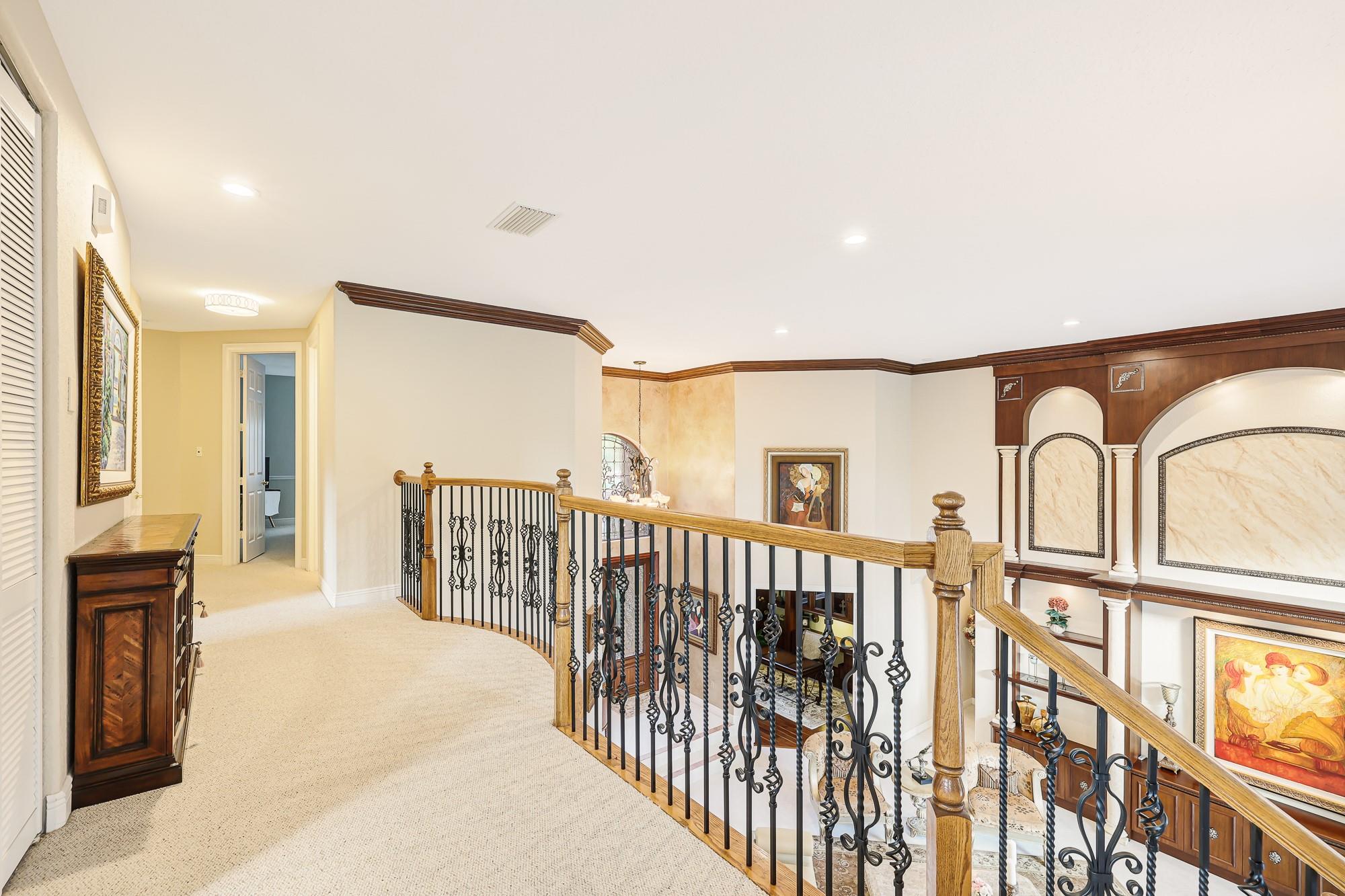 Impeccably maintained home in sought after gated Long Lake Estates. 5 bedrooms 4.5 baths + office + loft. On one of the largest lots in the community. Soaring ceilings throughout, with natural light from the impact windows and doors, this home delivers functionality and wow factor. manicured lawn, shimmering pool, open patio with entertaining space, and multiple french doors leading outside. Sprawling primary suite with high ceilings, wide wood plank floors, access to the patio, dual walk-in custom closets, large en-suite bath with separate tub and shower. Downstairs guest room &bath, interior laundry room. Upstairs oversized loft overlooking the family & living rooms. 3 spacious guest rooms upstairs. 2019 tile roof, 3 new 2024 AC units, 3 car garage + storage. Close to the best of Davie!