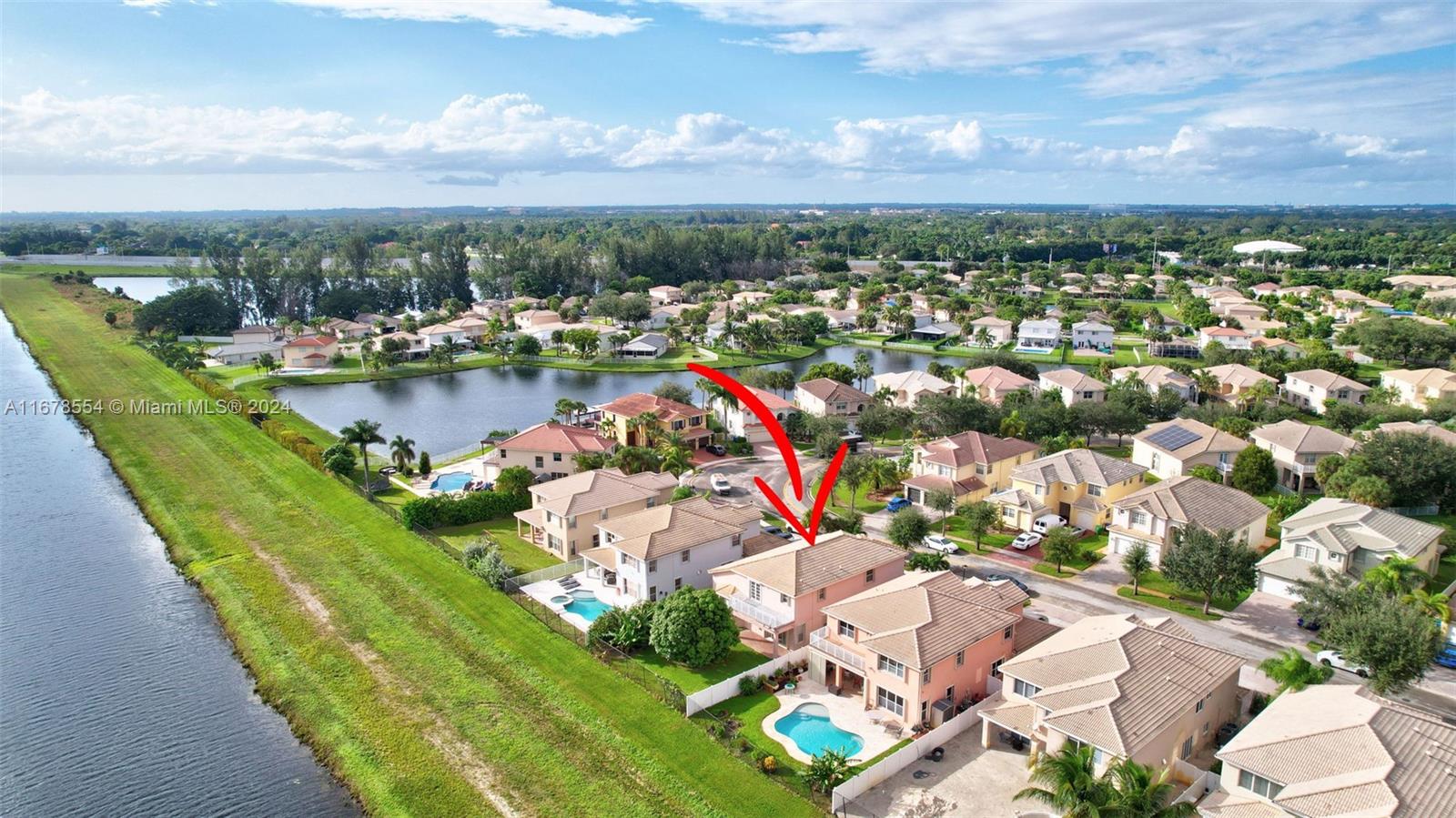 Welcome home to this inviting property nestled in the heart of Miramar. An exquisite 2-story 4 bedroom, 3.5 bathrooms, 2 car residence with a water view. One bedroom with a full bath is on the ground floor. The home has many upgrades that include iron staircase, multiple high hat lights, chandeliers (excluding front door chandelier), master bedroom balcony, propane installed gas stove. Enjoy the water view from the MB bedroom balcony. A modern kitchen featuring granite countertops, tall custom cabinets, updated stainless appliances. Accordion and electric hurricane shutters. This home is a gem waiting to be discovered! Don't miss the chance to make it yours and create unforgettable memories. Homeowners has a guarded gate with only $185 HOA fees.