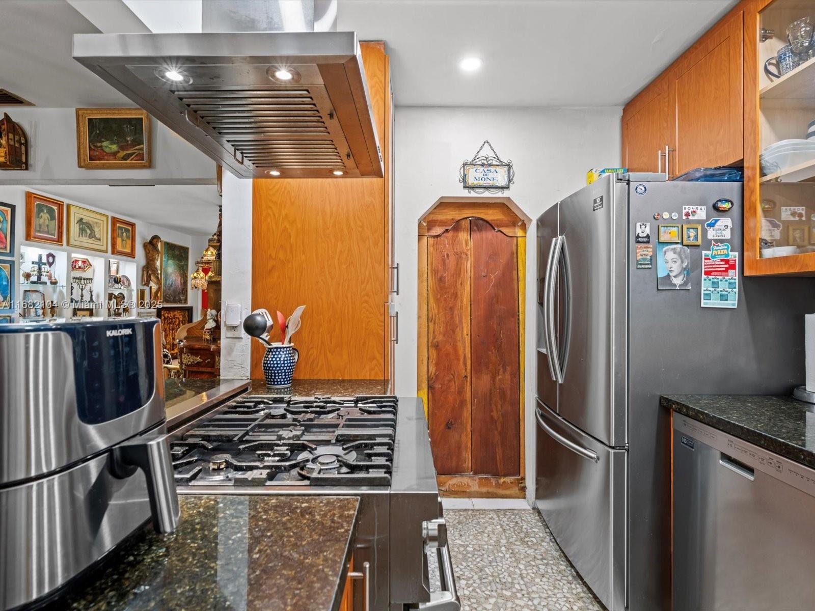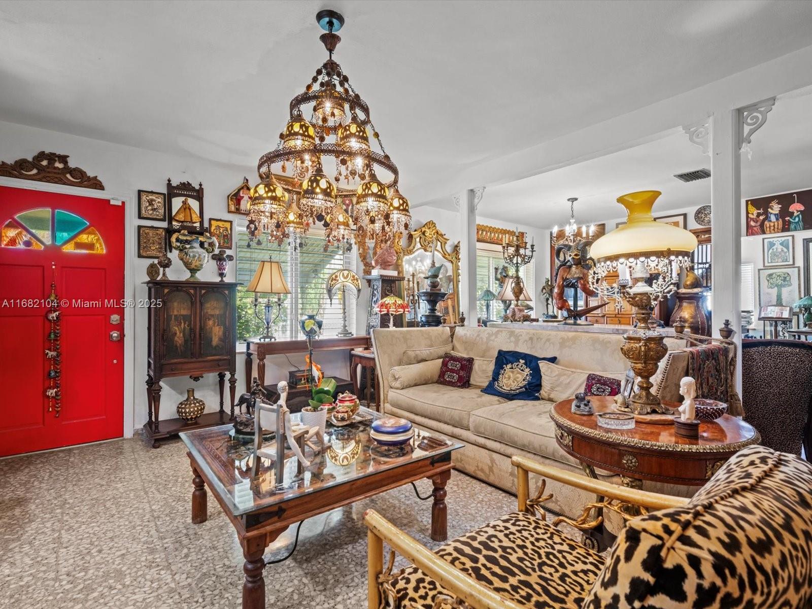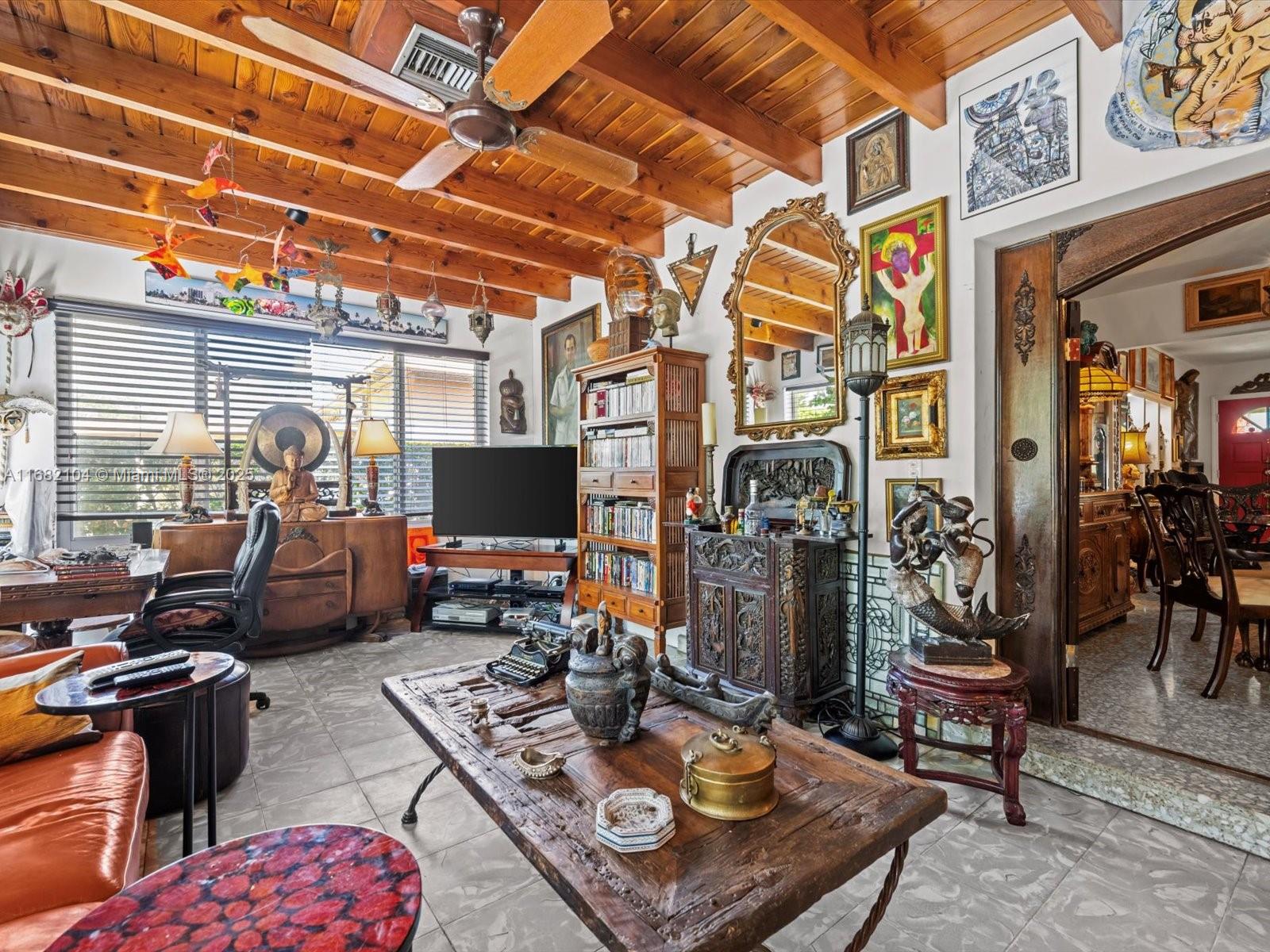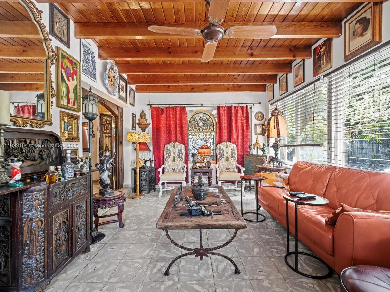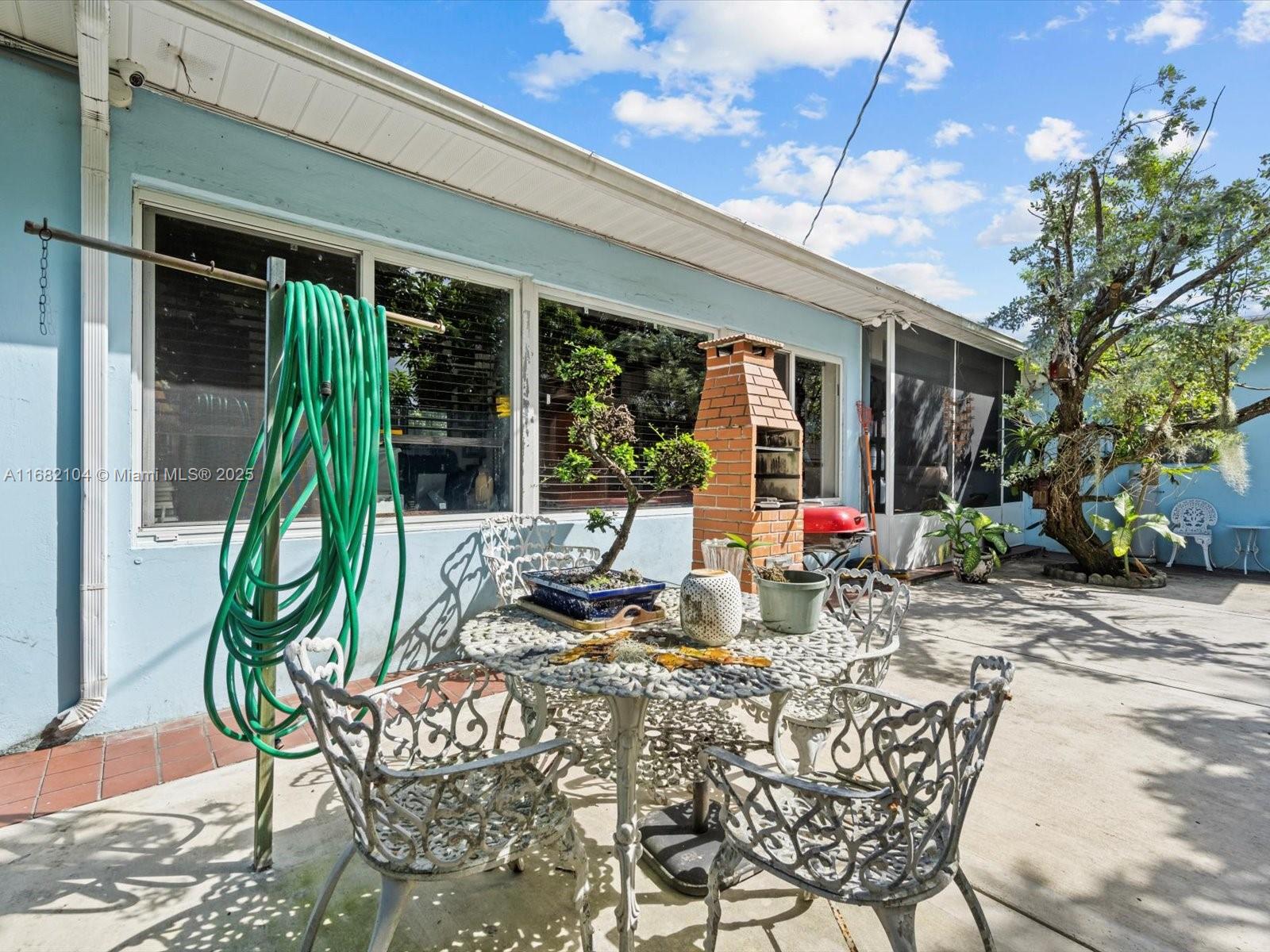 Major price reduction on this gem on the edge of Coral Gables! Versatile layout for those seeking rental income or families alike! This 3-bed, 3-bath home has 2,179 sq ft of air-conditioned living space. The house has a spacious layout with tile floors, updated kitchen and bathrooms, and a large sunroom with wood ceilings and abundant natural light. The layout offers versatility for families or extra space to work from home. The outdoor space has a screened patio, lush landscaping, avocado and mango trees, and a brick oven. Perfect central location for access to all of Miami.