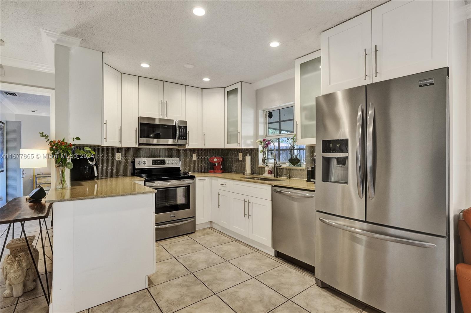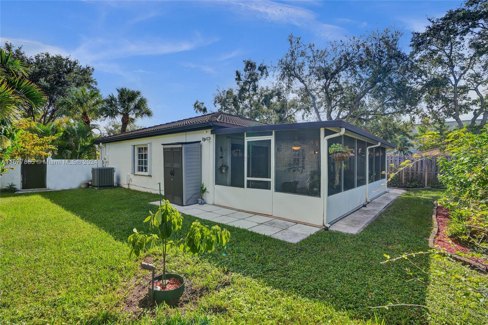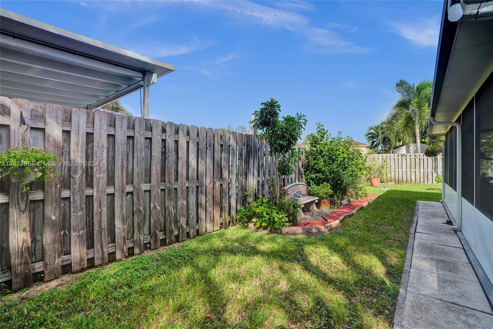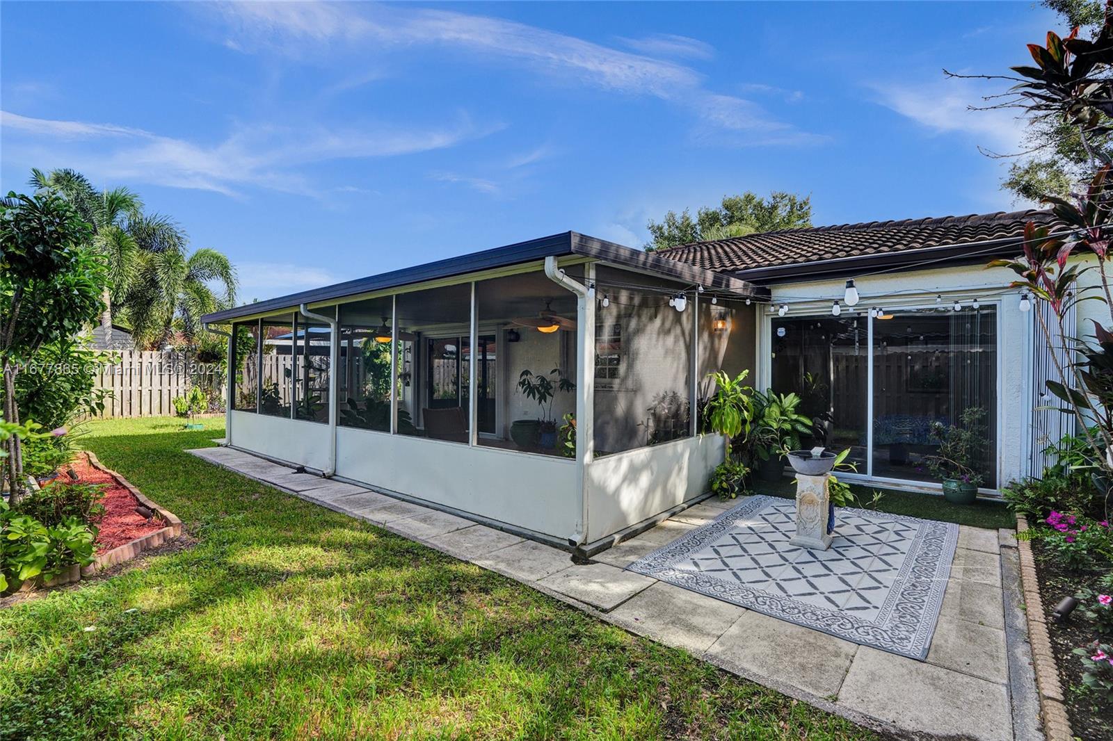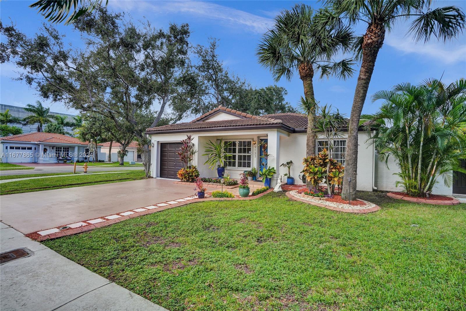 Sq ft its about 1300. Beautiful Corner Smart House with Modern Upgrades in Desirable Lakes on the Green. This stunning 3-bed/2-bath sits on a large lot with plenty of space to add a pool. Featuring a smart lock door, lighting, and fans, the house has all the modern conveniences. The fully renovated kitchen has elegant quartz countertops and stainless steel appliances. Updated bathrooms with stylish finishes. A spacious office room provides the flexibility to convert it into a fourth bedroom, perfect for larger families. The screened terrace overlooking the generous backyard is a second living room, offering ample space for gatherings. New roof and A/C. Garage for storage, dedicated laundry area, hurricane shutters. Great location access to major highways, shopping plazas, and restaurants.