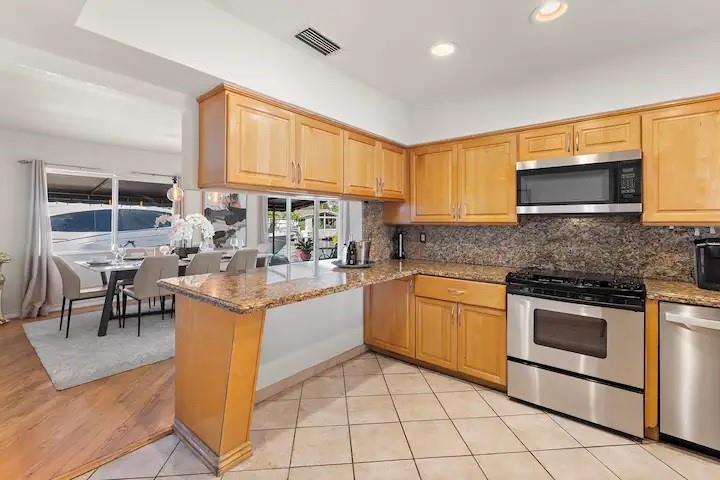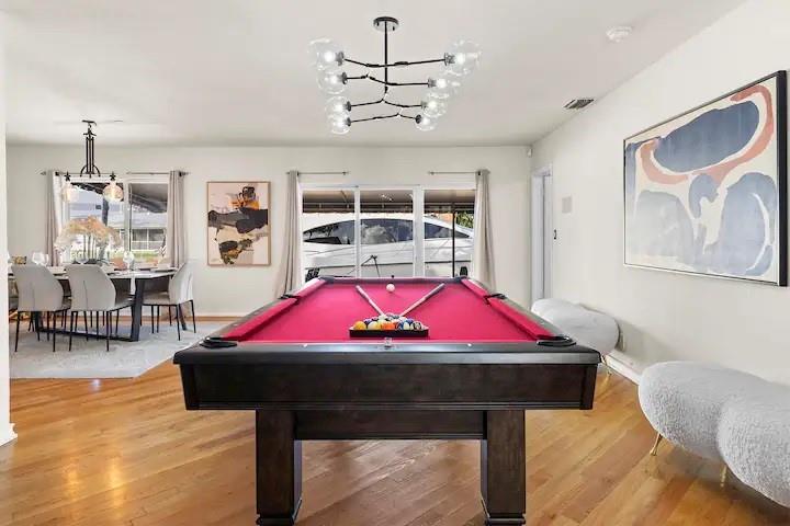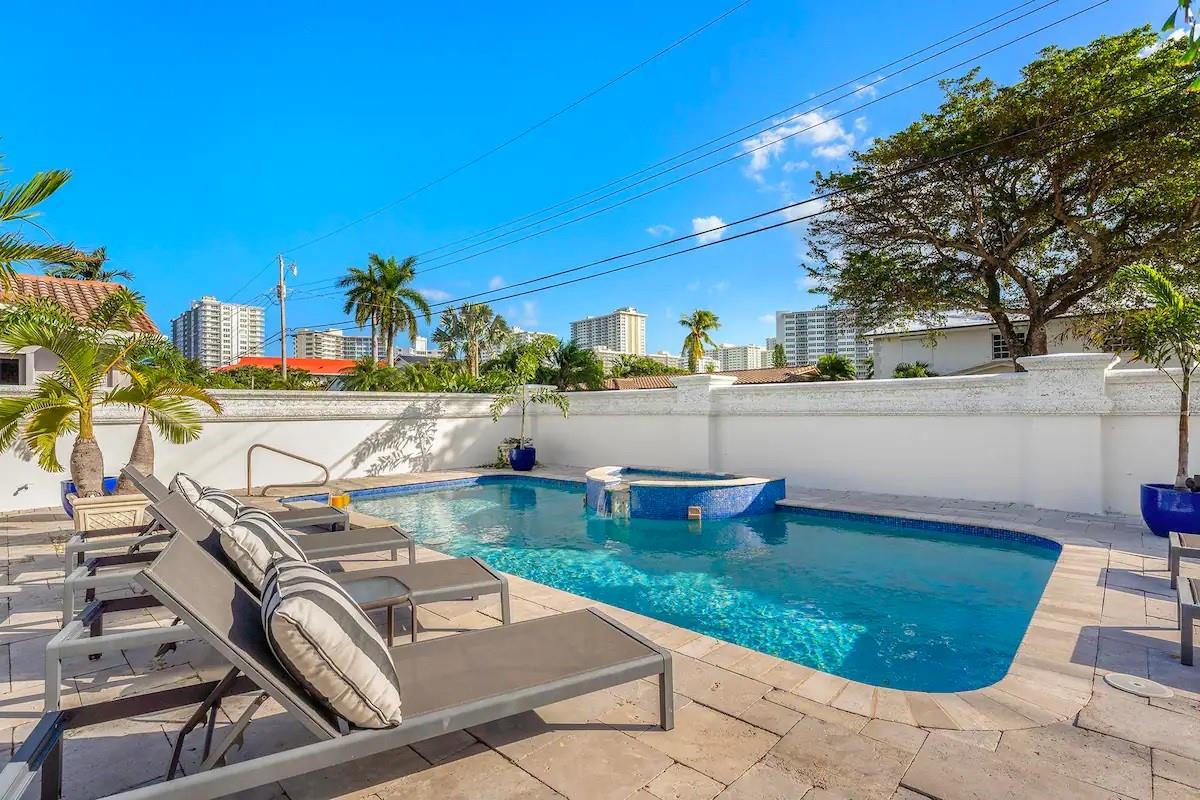 NO FIXED BRIDGES! Welcome to your dream home in Bermuda Riviera! This unique waterfront property in an exclusive Intracoastal community offers a luxurious lifestyle at an exceptional value. Featuring 5 spacious bedrooms, 4.5 bathrooms, and 2,946 sq ft of living space with plenty of room for family and entertaining. Private oasis with a sparkling pool (in front) and an 80-ft dock with 100AMP connection, perfect for boating enthusiasts. Just a 10-minute walk or 5-minute bike ride to the beach, you'll enjoy the best of coastal living. Inside, genuine hardwood floors and abundant natural light create a warm, inviting atmosphere. Roof, plumbing from 2009.