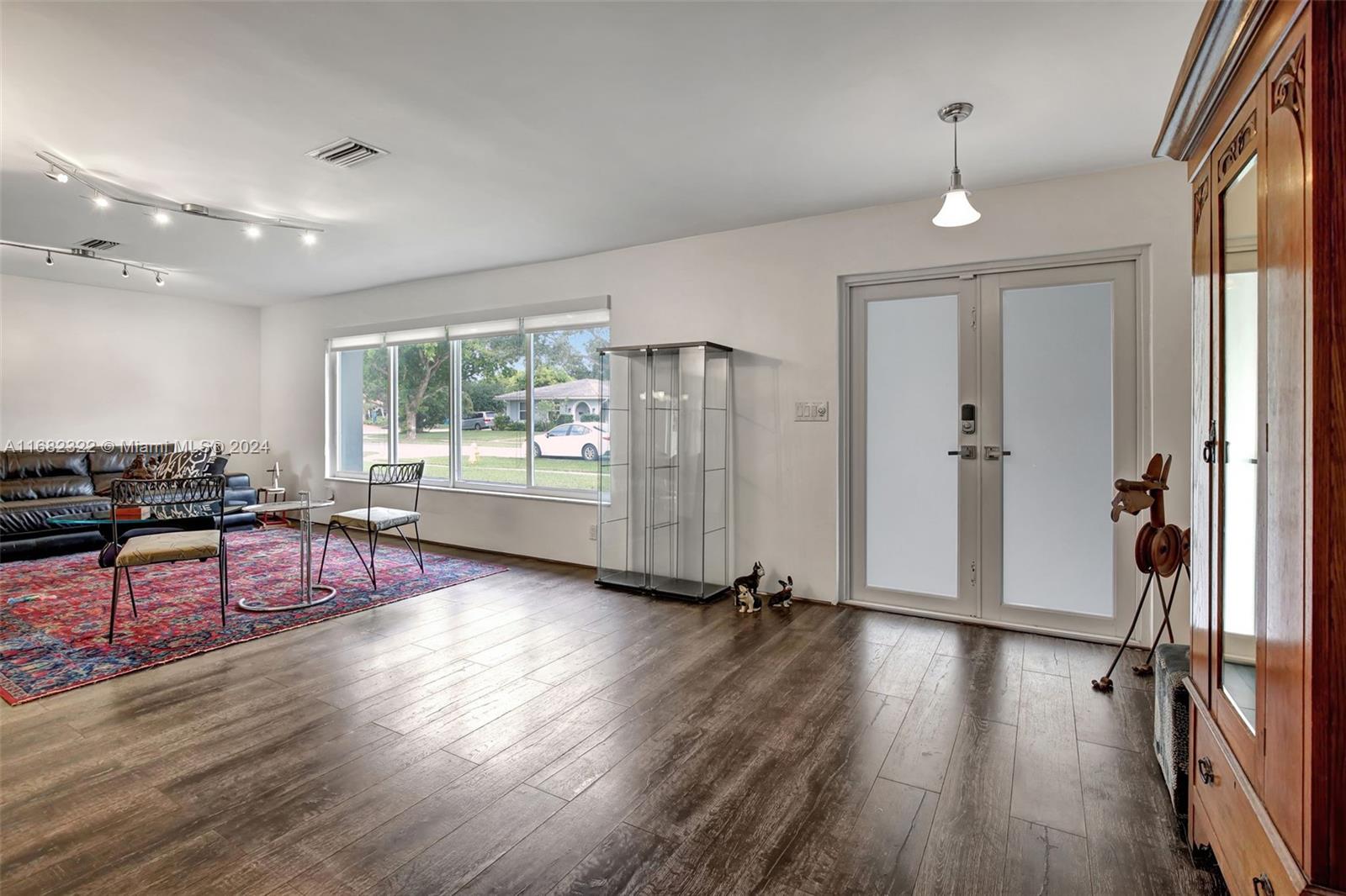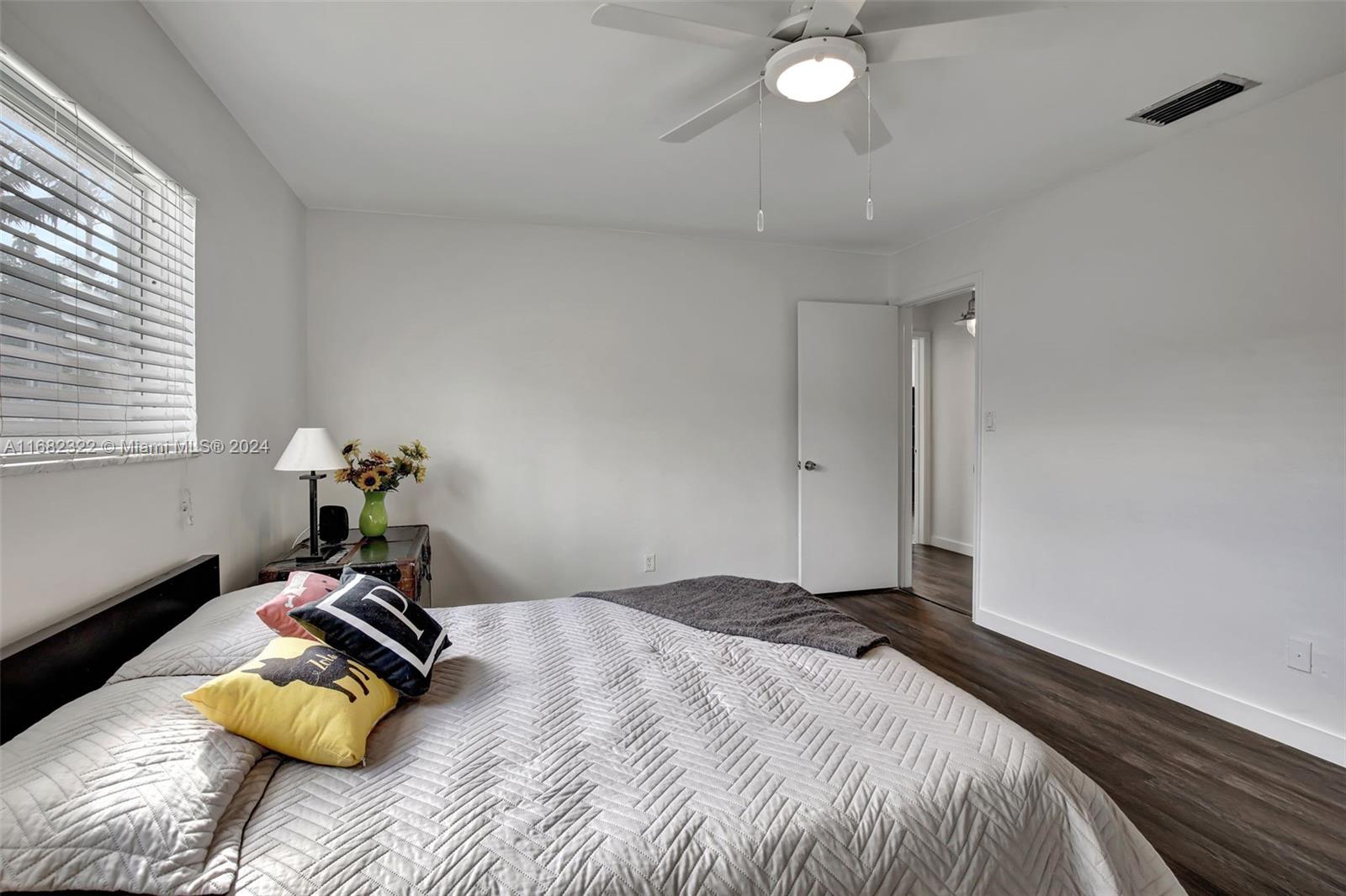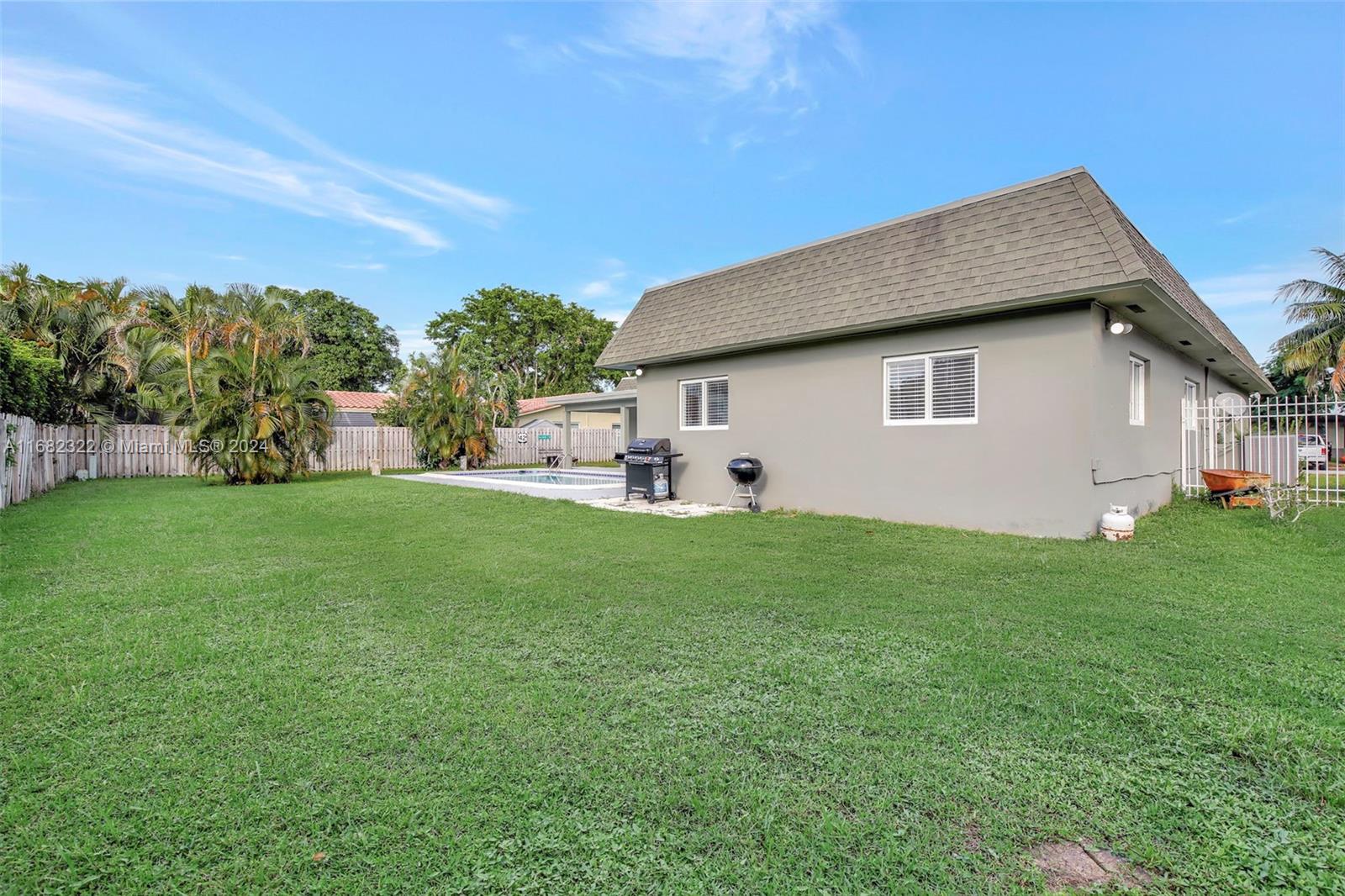 Move right into this spacious split floor plan on a quiet street with a well-manicured large private interior fenced lot. This carpet-free home is freshly painted & offers smooth flat ceilings, modern reveal baseboards,impact glass doors & windows, an updated kitchen with solid wood white cabinetry, granite counters, stainless appliances, double ovens, great storage, a pantry & nice pass-through window to a large covered patio making it great for entertaining... complete with wet bar. Enjoy Updated baths, & a cabana bath which is complete with a jetted soaking tub, PVC pipes throughout, an indoor laundry room, a great oversized private yard, & a full-size open pool. This location offers Easy access to 595, Broward Mall, Midtown Shops, The Fountains, Plantation Walk and so much more.