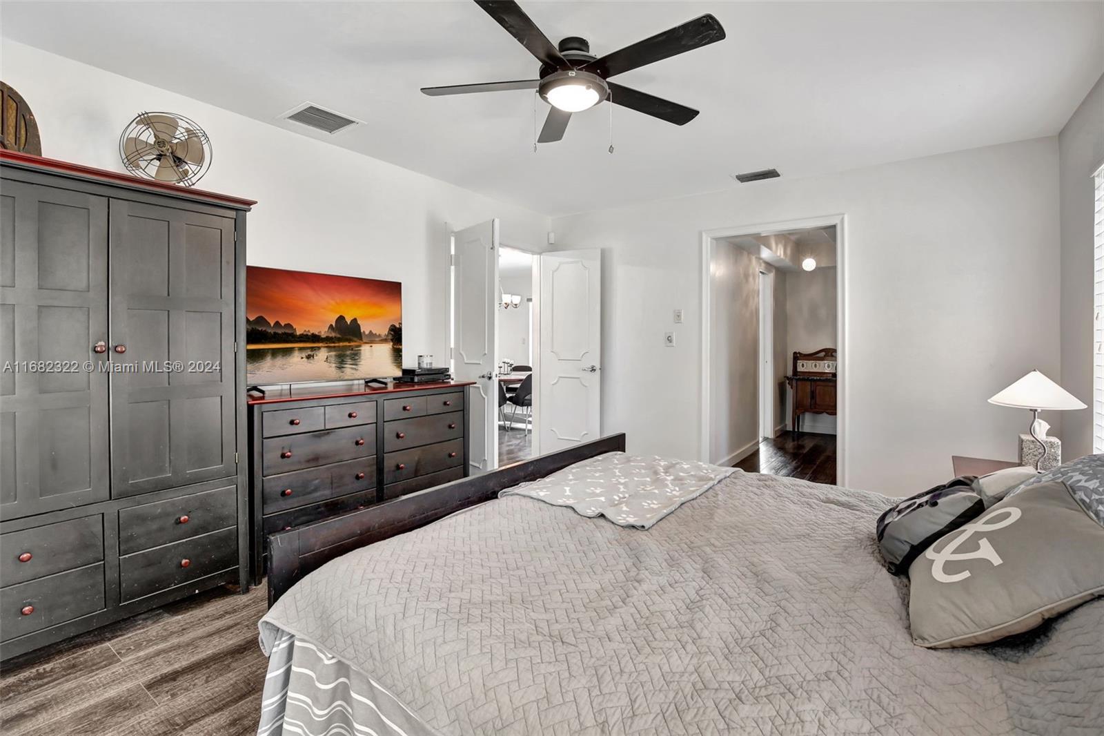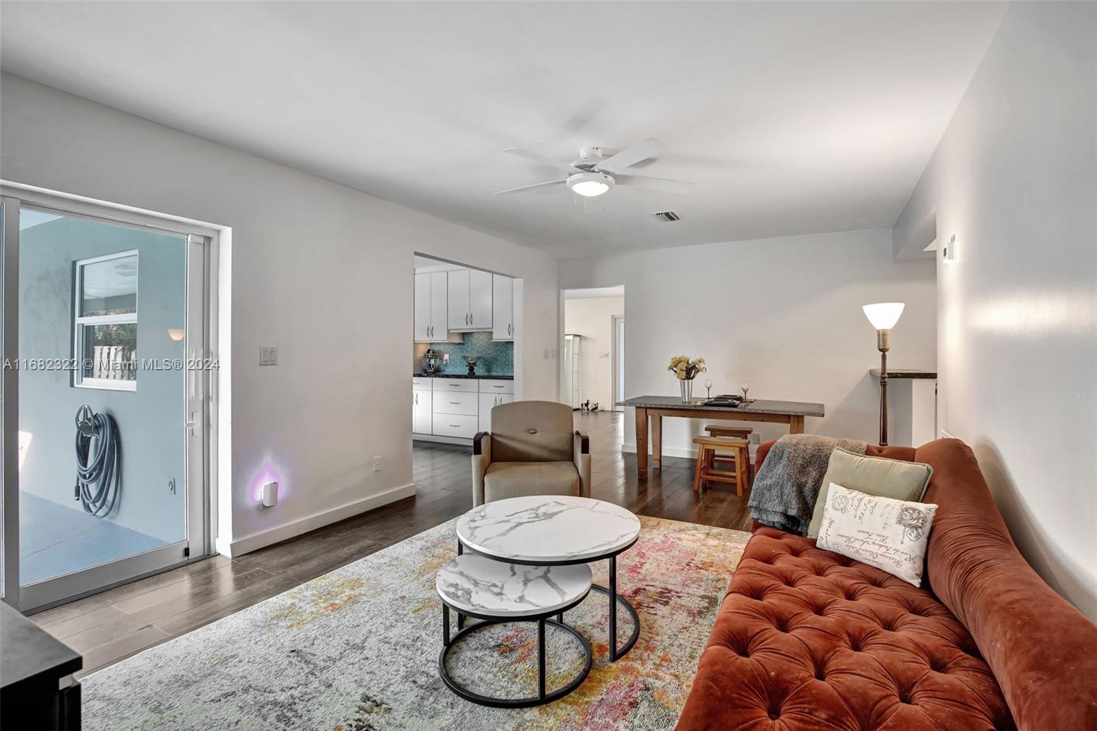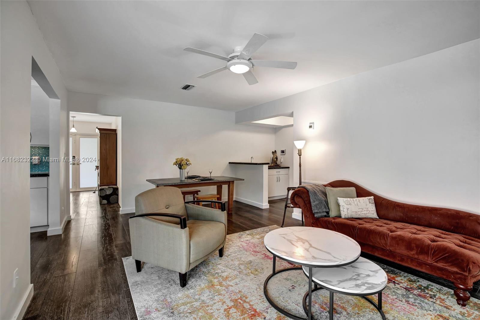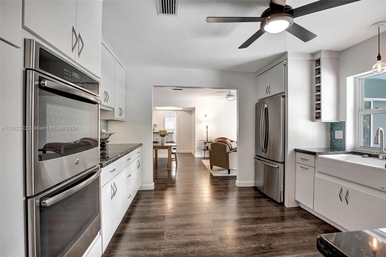 Move right into this spacious split floor plan on a quiet street with a well-manicured large private interior fenced lot. This carpet-free home is freshly painted & offers smooth flat ceilings, modern reveal baseboards,impact glass doors & windows, an updated kitchen with solid wood white cabinetry, granite counters, stainless appliances, double ovens, great storage, a pantry & nice pass-through window to a large covered patio making it great for entertaining... complete with wet bar. Enjoy Updated baths, & a cabana bath which is complete with a jetted soaking tub, PVC pipes throughout, an indoor laundry room, a great oversized private yard, & a full-size open pool. This location offers Easy access to 595, Broward Mall, Midtown Shops, The Fountains, Plantation Walk and so much more.