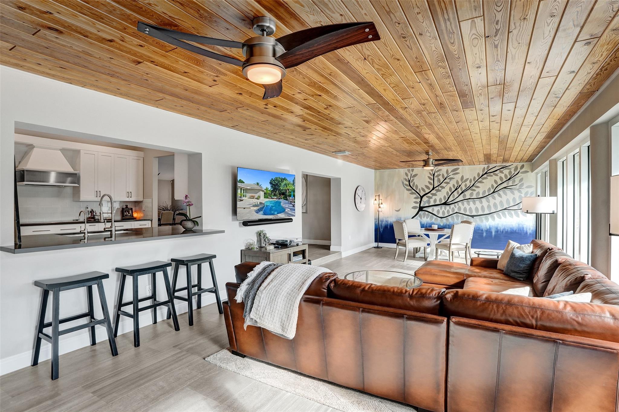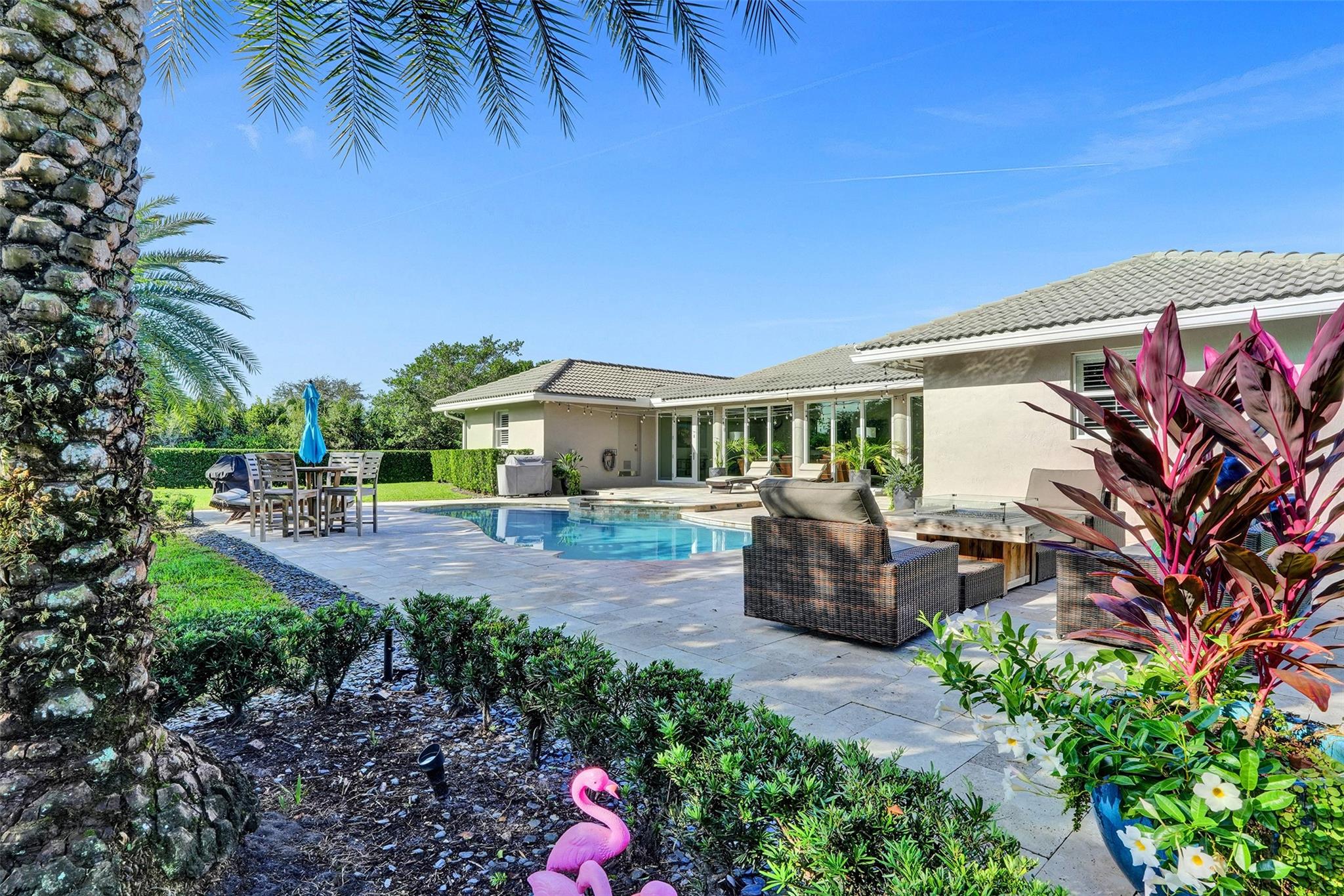 For those with a taste for luxury & precision, this meticulously maintained corner lot home in Whispering Pines is a true must-see! Enjoy this tastefully upgraded 4 bed, 3 bath pool home on builder’s acre next to the preserve! Gourmet kitchen featuring custom shaker cab., Thermador appl. & quartz counters! Family rm w/ wet bar & unique backsplash w/ built-in seating! Primary BR offers custom walk-in closet & bath w/ dual vanities, soaking tub & sep. shower! Vast, private yard boasts freeform pool & lush landscaping ensuring privacy! Enclosed Fla. room allows for more entertaining space! Laundry room w/ LG front loading W/D & utility sink! Impact glass, recessed lighting, crown molding, Pl. shutters & so much more make this one-of-a-kind home an incredible find! Being sold Fully Furnished!