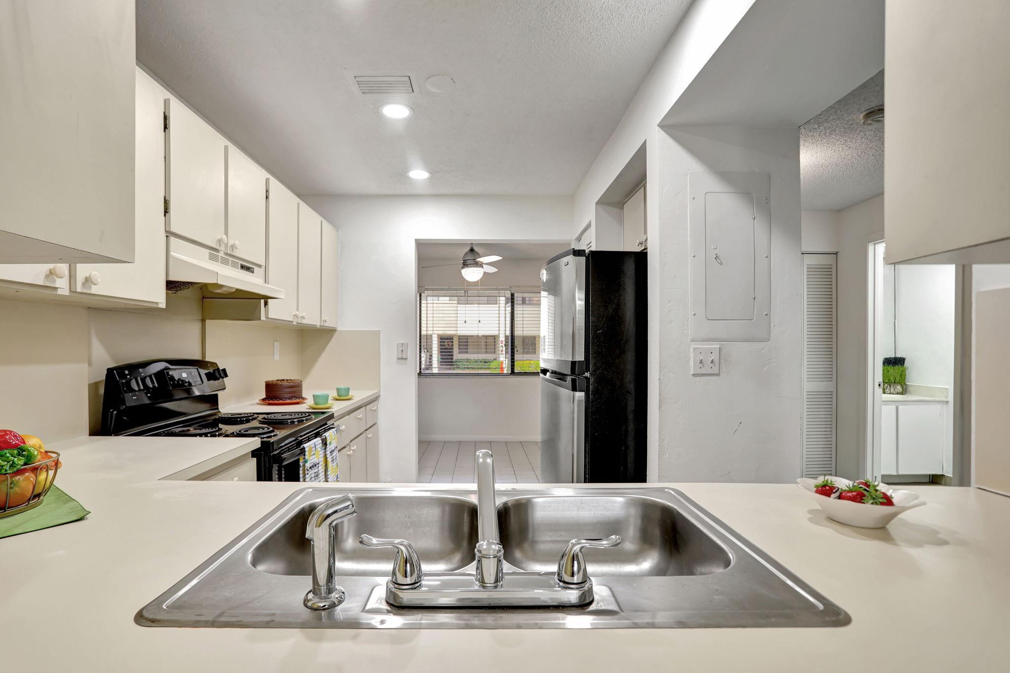 RARELY AVAILABLE 2,000 SF 3/2.5 TH w/ carport. PRICED BELOW MARKET!!!! A++ SCHOOLS. HUGE LR is ready for movie night. Kitchen w/ newer S/S refrigerator, range & DW & recently updated modern lighting. Morning coffee in your breakfast nook & dining area for family meals. Fall in love in the MASSIVE primary BR w/ sitting or desk area opening to the screened balcony! Primary bath has split vanities, large tub to soak away your stress. Huge walk-in closet is perfect for any fashion fan! Generous guest bedrooms w/wall closets. Guest bath w/tub. Additional screened patio to sprawl out! 40 YR INSPECTION COMPLETED & PASSED! BRAND NEW TRANE A/C!!! BIG W/D! ALL ASSESSMENTS PAID! Priced to allow future updates! Cypress Park is a short walk nearby. 700 min credit required.