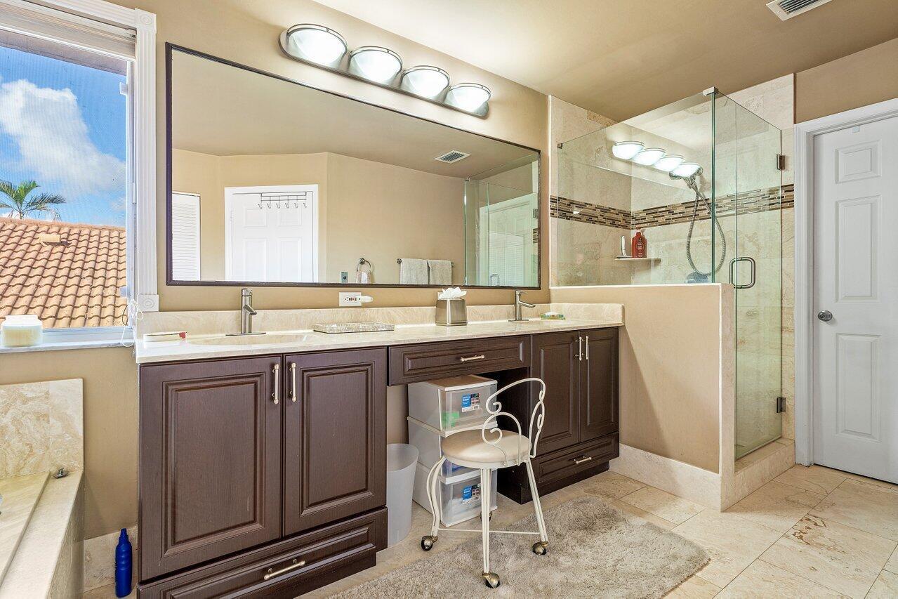 Fabulous home located in Boca Pointe's most sort after community of Palomar. Enter into a spacious comfortable living & dining rm.The eat in kitchen has lots of cabinets and loads of counter space. Off the kitchen an XL pvt. screen enclosed patio great for BBQ's & entertaining! A Hot tub would be perfect out there! 1 bdrm/den downstairs, half bathrm can be converted to full. Upstairs a loft ,primary bdrm,& bathrm w 2 walk in closets. 2 more lg size guest bdrms w Jack & Jill bathrm that has 2 doors accessible to each rm. 24hr manned security close proximity to the clubhouse. Boca Pointe is beautifully maintained, 15 mins to the beach, central location makes it possible to walk to shops & restaurants.NO MANDATORY MEMBERSHIPS REQUIRED Live the South Florida life you deserve!!