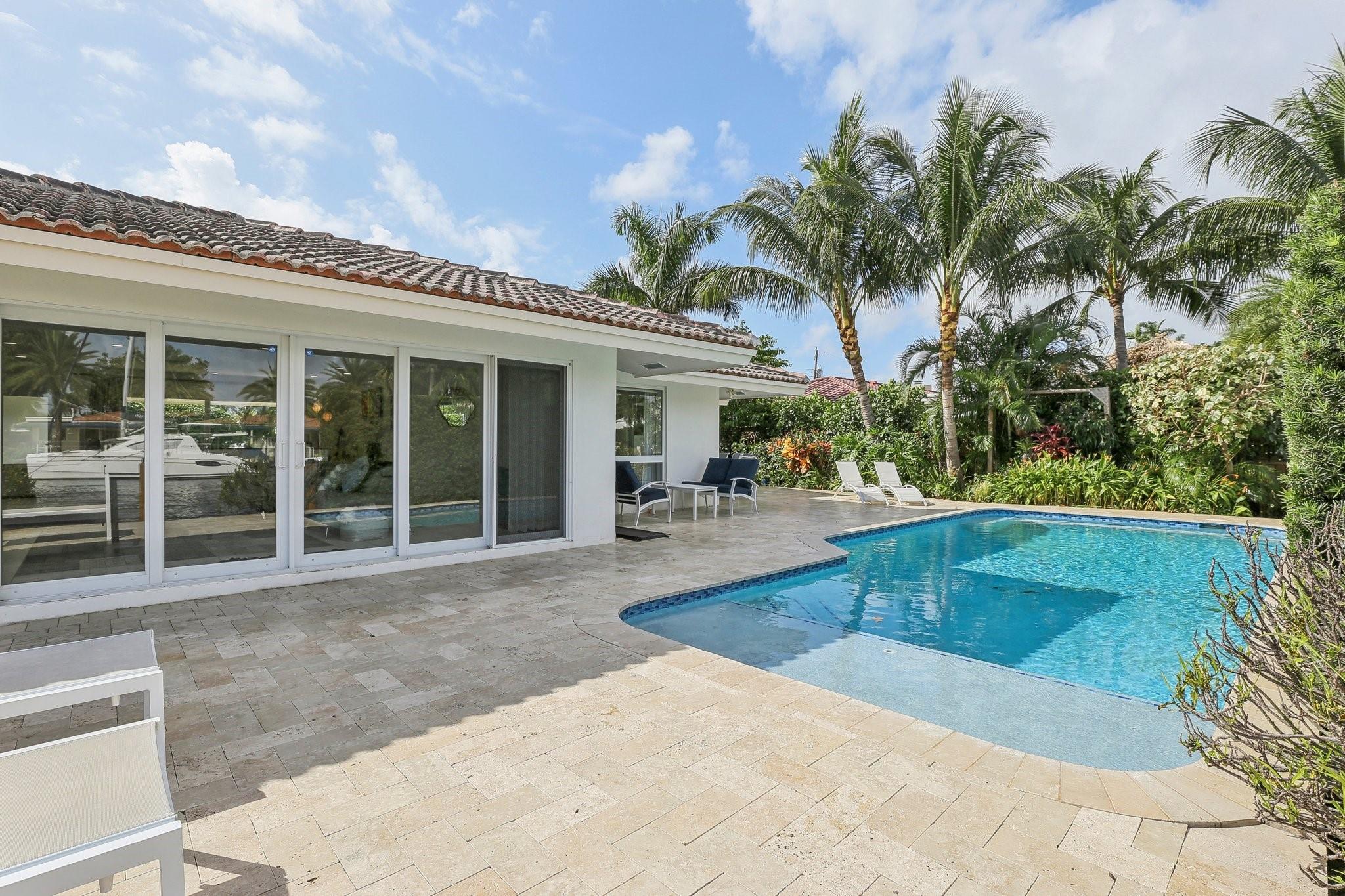 This beautifully renovated 3-bedroom, 2.5-bath home offers 100 feet of waterfront with a 90' dock and a spacious turning basin, approximately 140 feet across, boat lift included. Convenient access to shops and restaurants, and located in the highly desirable Bayview School District. The stunning kitchen is designed for both style and function, featuring a gas stove, double convection ovens, granite countertops, a wet bar, and a wine fridge—perfect for entertaining. The open-concept dining area flows effortlessly into two spacious living rooms, creating the ideal layout for gatherings. Step out your sliding glass doors to a spacious pool, dock, boat lift, waterfront living at it's finest. Large airconditioned garage. Best waterfront lot in Coral Ridge!