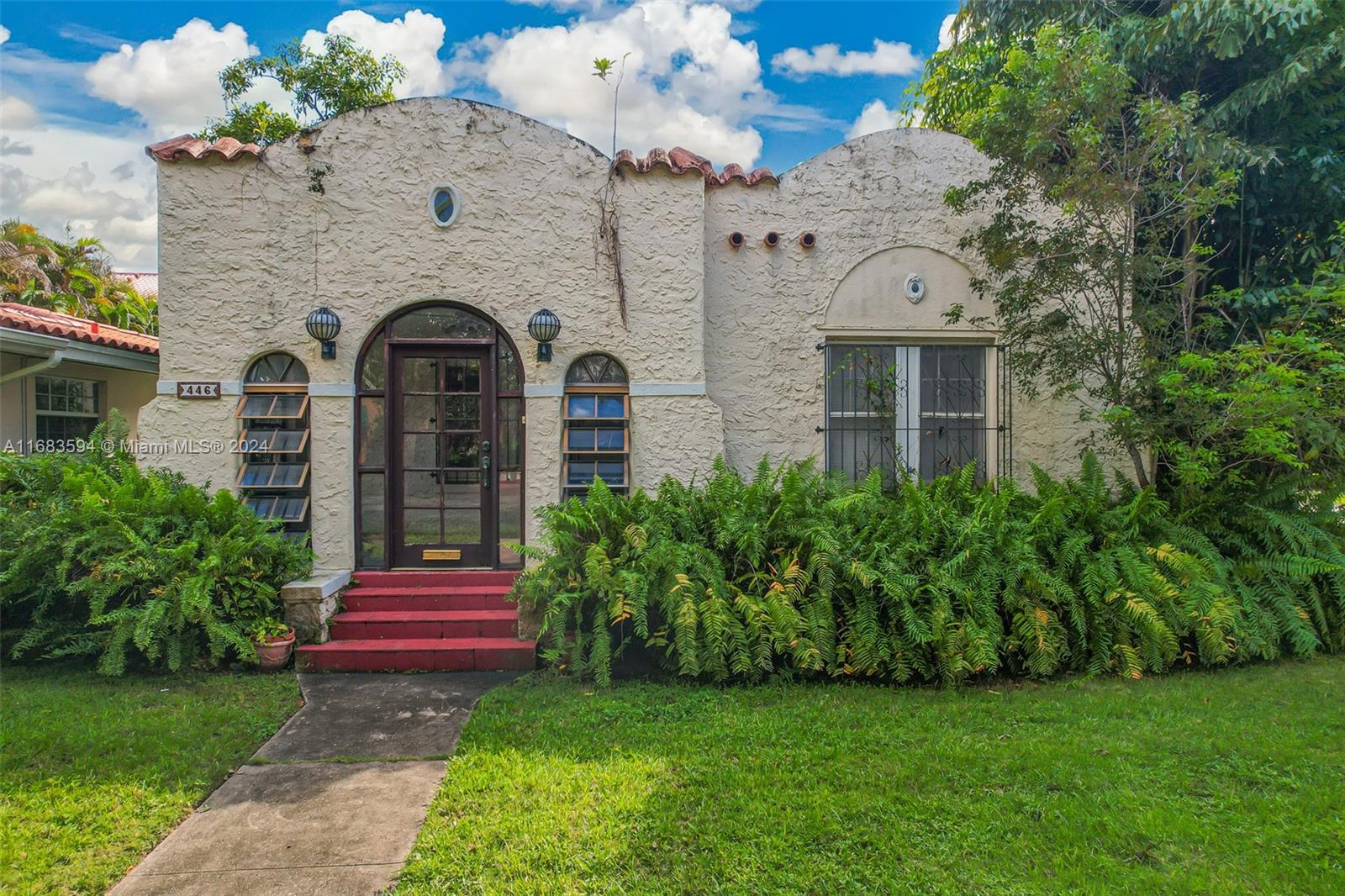 Charming old Spanish-style home in the heart of Coral Gables! This delightful corner property offers a vibrant urban lifestyle just steps away from top restaurants, shops and Granada Golf Course. Featuring 2 bedrooms and 1 full bath, you’ll enter a cozy living room with a welcoming fireplace, accessible from an adorable, enclosed porch. Wood floors flow throughout, enhancing the home’s character. The kitchen includes a pantry and a butler's area, previously used as an office nook. Additionally, enjoy the convenience of a detached carport. With long-time ownership, this home is ready for a new owner to bring their personal touch and TLC. Don’t miss this opportunity to make this gem your own!